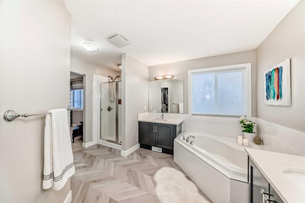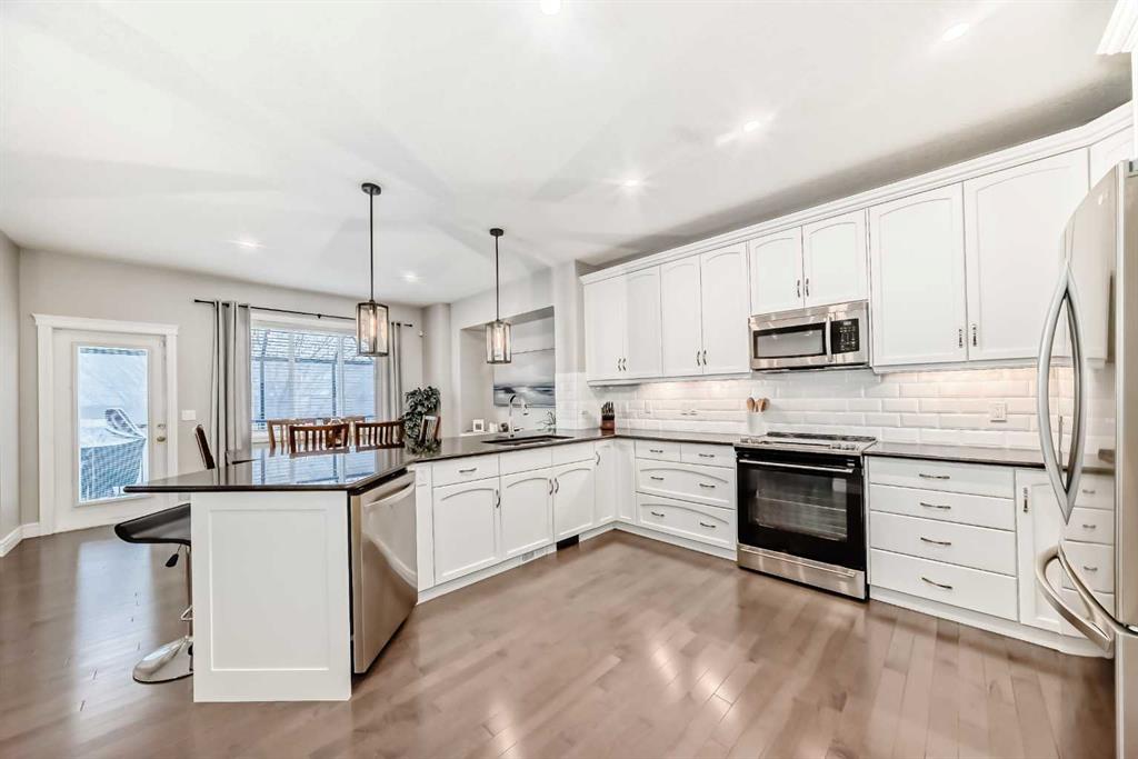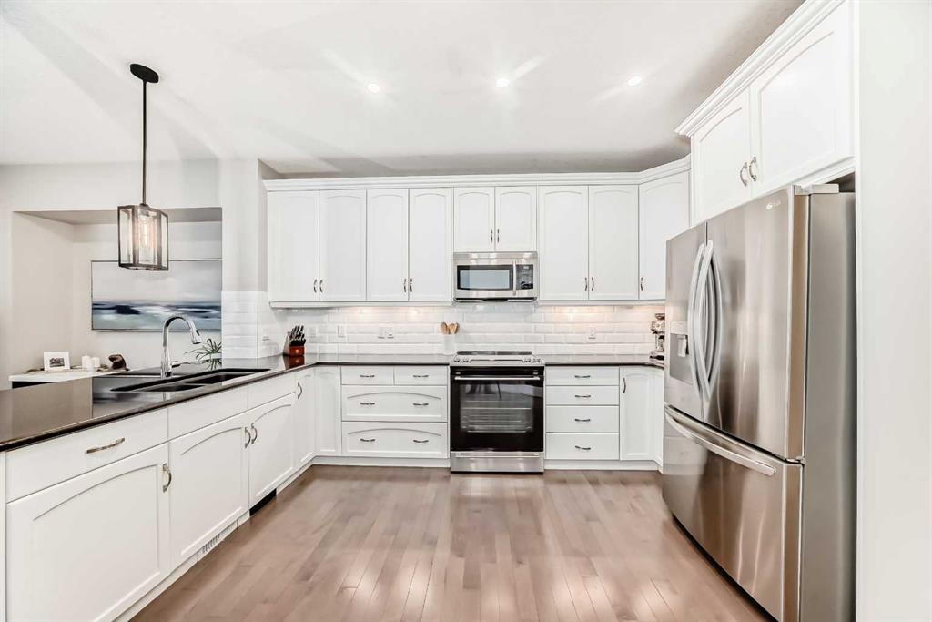 2558 Square feet with developed walkout on a corner lot with tons of parking! For a multigenerational family or illegal suite potential to be legal, it does not get better than this. ( illegal Suite , currently could be easily brought up to meet codes- subject to city approval. ) This home has been nicely upgraded in the past 5 years with paint through out , new carpet, new appliances, new pot lights , new flooring in upstairs bathrooms, 2 new Ecobee thermostats , new backslash tile and tub surround in bathrooms. Trex composite decking on front porch entrance, central vacuum system, wifi controlled irrigation system, front and back yards , custom feature wall in front office . The list goes on. This home boasts very large rooms on all 3 levels with high ceilings and large windows for natural daylight. The main floor is elegantly laid out with a spacious office at the entrance, an entertainer’s dream kitchen with newer stainless steel appliances , a very large pantry and a comfortable living room with fireplace. The same goes for the upstairs area, with a large primary with ample room for a king sized bed AND the furniture. The finished walkout basement is huge with high ceiling, large windows as seen on the main floor, full kitchen, bathroom, separate laundry and a large bedroom. The garage is enormous at 27×23 feet – 2 full sized trucks could easily fit here with room to work. The massive driveway as well as corner parking will surely accommodate a large family’s needs. Do not hesitate to book your showing on this exceptional property.
