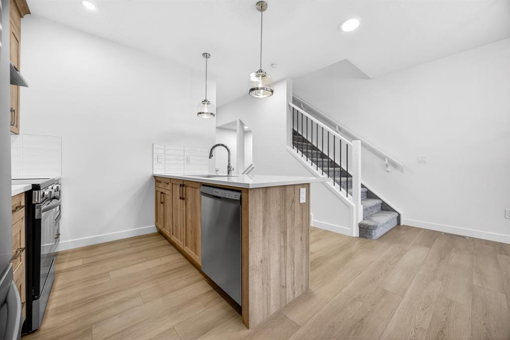 Welcome to the Rowan — a beautiful, fully finished end-unit offering over 2,000 sq ft of thoughtfully designed living space, with 4 bedrooms and 3.5 bathrooms, complete with a double attached garage, all with no condo fees. The main floor is bright, open, and inviting. The spacious living room flows seamlessly into the dining area and a stylish chef’s kitchen, where quartz countertops provide ample prep space and casual seating. Beautiful cabinetry and a sleek stainless steel appliance package elevate the space, while a convenient powder room, additional storage, and direct access to the double-attached garage complete this level.