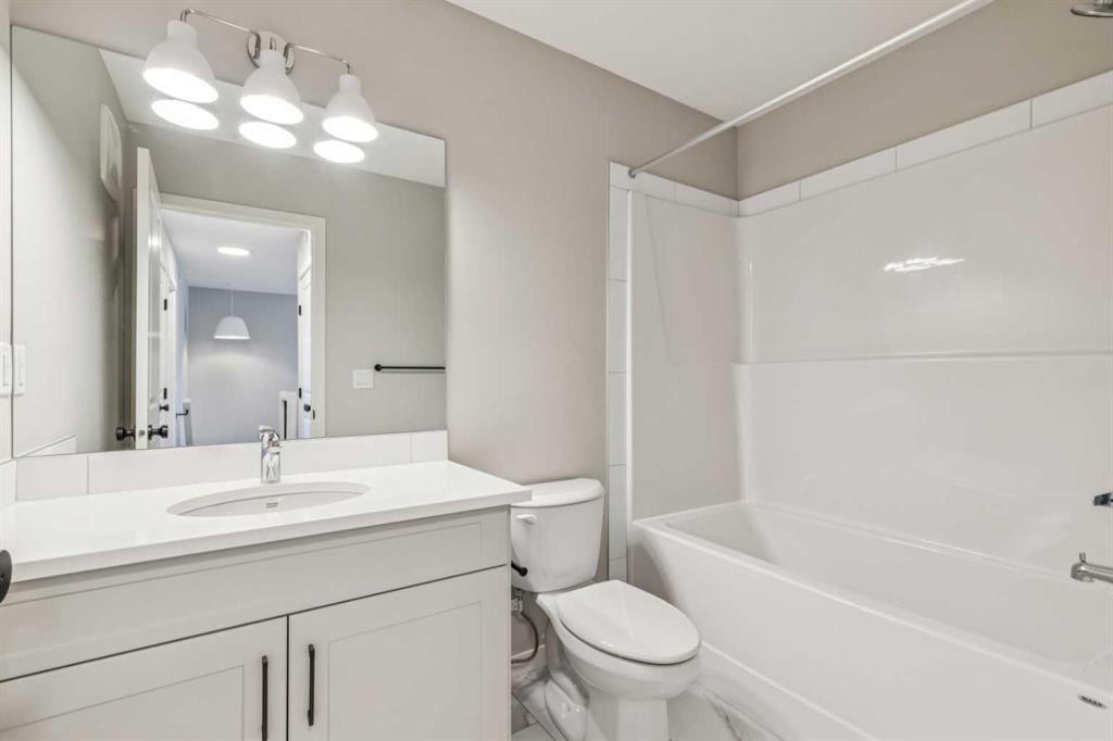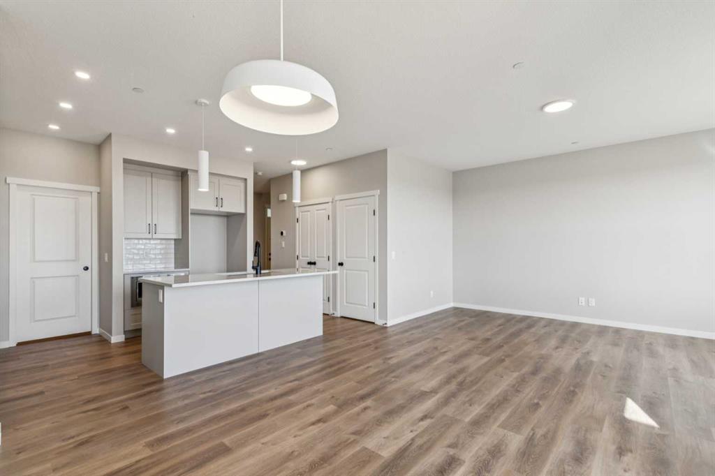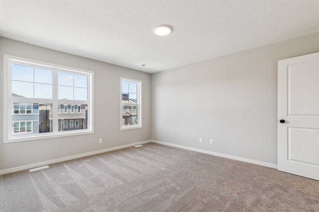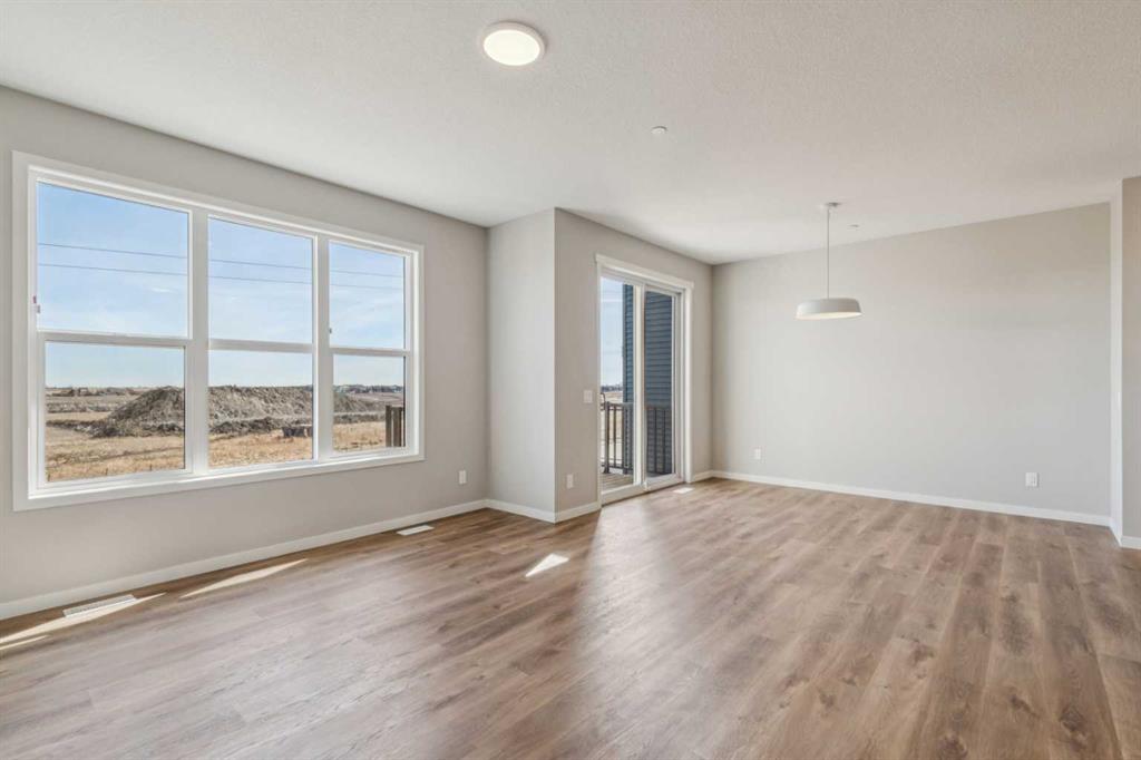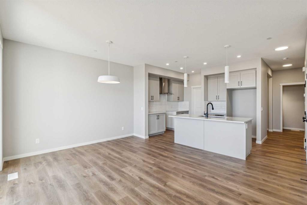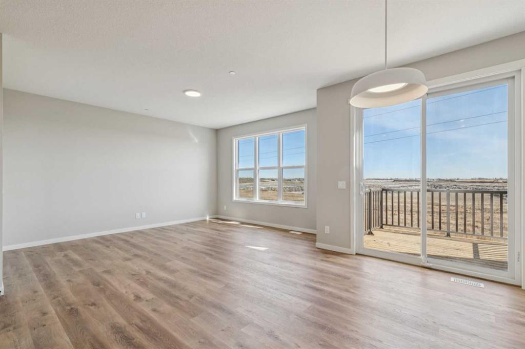 Welcome to the Carisa at 338 Hotchkiss Manor SE. Perfectly positioned on a desirable walkout lot, offering both functionality and future potential. This thoughtfully designed home delivers exceptional value with a layout tailored for modern living, all at an attainable price point. The main floor features a convenient pocket office—ideal for working from home—alongside an open-concept kitchen equipped with stainless steel appliances, a chimney hood fan, built-in microwave, quartz countertops, and an additional bank of drawers for extra storage. Luxury vinyl plank flooring flows throughout, complemented by stylish finishes like painted spindle railings and well-placed pot lights. Upstairs, enjoy the convenience of a dedicated laundry closet, a versatile entertainment room, and a spacious primary retreat complete with a dual-sink ensuite. The home also includes a 9’ foundation, secondary entrance, and a 3-piece basement rough-in—providing flexibility for future development. Step outside to a 10’ x 9’-6” walkout deck with a built-in gas line for your BBQ, perfect for entertaining or relaxing evenings. A stairwell window enhances natural light throughout the home. Combining smart design, quality finishes, and incredible potential, this is a home that truly checks all the boxes. Enjoy the added benefit of a natural wetland feature right at your doorstep, bringing serene views and a connection to nature just steps from home. Community Highlights includes, prime access to Deerfoot Trail, Stoney Trail, and Macleod Trail, Minutes from shopping, dining, and everyday amenities, Over 51 acres of parks, pathways, and wetlands for year-round recreation First-time buyers may be eligible for a GST rebate—speak to your Realtor or sales representative to learn more.