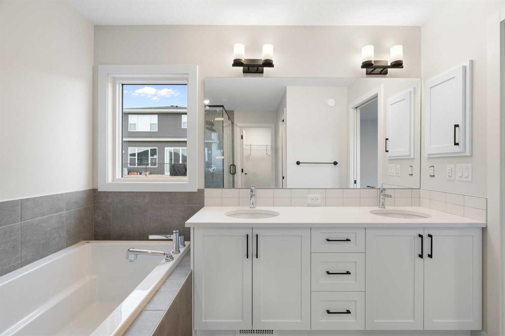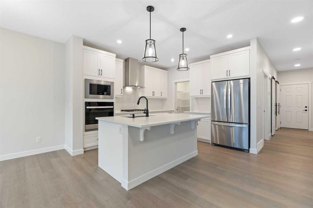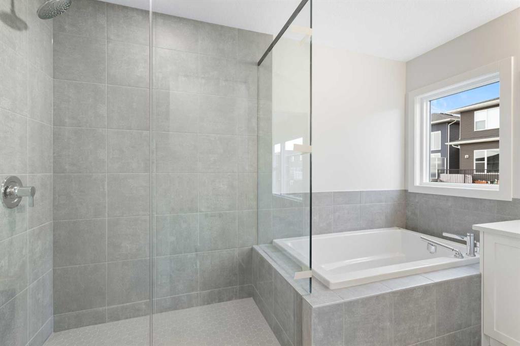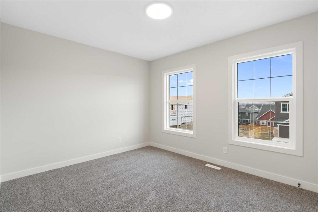 Welcome to your new home in the boutique community of Rivercrest in Cochrane! Built by Trico Homes, this stunning 3 bedroom home is bright, welcoming and has the perfect layout. Upon entering, you’ll find a spacious main floor flex room, ideal for a home office, study, or kids playroom. Continuing into the main area, you’re greeted by the large full wall of windows to enjoy amazing sun from your south facing backyard. Your open concept kitchen is complete with a built-in stainless steel appliance package including a gas range and additional drawers, hello storage! Enjoy cooking with ample counter space, a large pantry and spacious island; perfect for your kids to enjoy breakfast or entertain. An inviting electric fireplace adds warmth and coziness to your living room making it perfect for relaxing evenings. Heading upstairs you are greeted by a spacious & centrally located bonus room perfect for family movie nights or kids play space. Your primary suite is spacious & complete with a luxurious ensuite including double sinks, drawers for storage, upgraded tile shower and soaker tub. Conveniently situated just off your ensuite, is your spacious walk-in closet. Enjoy a full upstairs laundry room complete with additional storage and space to hang your clothes. The kids wing of the home is complete with two well appointed spare rooms with walk-in closets and a full spare bath with quartz countertops. In the basement you will find a separate side entrance, 9’ foundation, 3-piece bathroom rough-in and 2 basement windows perfect for your future development. Outside, enjoy the full day sun on your back deck and spacious 38’ wide future yard. Rivercrest is a quiet boutique community with stunning mountain views and a future school site. Enjoy getting to know your neighbours, on a quiet street and convenient access to everything Cochrane has to offer! Living here means convenient access to Calgary, minutes from Spray Lakes Recreation Centre & downtown Cochrane! You have everything Cochrane has to offer right at your doorstep. Don’t miss the opportunity to move into your new home before Christmas! *Interior photos are representative to a previous build, please get in touch for more details on the interior finishes of this home.*