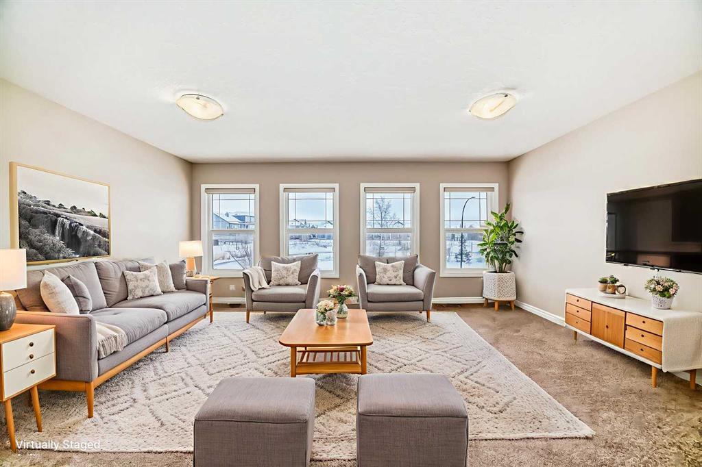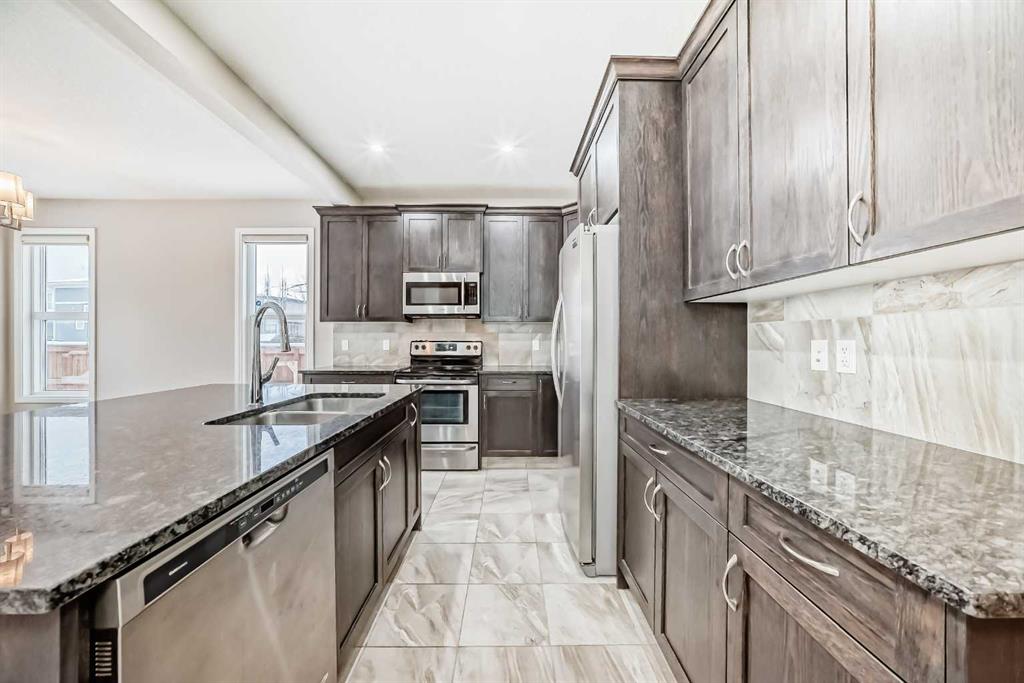 **OPEN HOUSE SAT DEC 6 FROM 12-2 PM** STOP THE CAR! Ideal 3 bed/2.5 bath two storey w/double attached garage, on a large NW facing corner lot, facing a beautiful park & playground, just steps from pathways in Fish Creek & the Bow River in Riverstone. The open concept main floor features a large welcoming foyer, 9′ ceilings, easy maintenance tile flooring throughout, and windows all along the back & side flooding the area with natural light. The lovely kitchen features a large island, ceiling height cabinetry with plenty of storage, granite countertops and a large pantry. The generous living & dining spaces are perfect are perfect for hosting large family celebrations and entertaining friends. The powder room & mudroom complete the main floor. Off the dining room is the huge corner lot backyard with a good sized deck and plenty of space for kids & fur babies alike to run and play. On the upper level, you’ll find a great bonus room overlooking the serene park & playground across the street, ideal for family movie nights. The relaxing primary suite feature large windows overlooking the backyard, a good sized walk in closet and a 5 pc ensuite featuring a separate shower & tub for unwinding in at the end of of the day. Two good sized additional bedrooms, 4 pc main bath & laundry area finish the level. Going down to the lower level you’ll find a separate entry and unfinished basement, just awaiting your plans for development. Riverstone is ideal for families, with many km’s of walking & biking paths to explore Fish Creek or enjoy fly fishing on the world famous Bow River, perfectly blending nature in the city. The Century Hall community centre features year round activities both inside & out for all ages, including an outdoor skating rink, tennis courts. Schools, shops, restaurants & services are right up the hill. With easy access to both Deerfoot Trail and Stoney Trail this location makes commuting a breeze. Book your showing today!