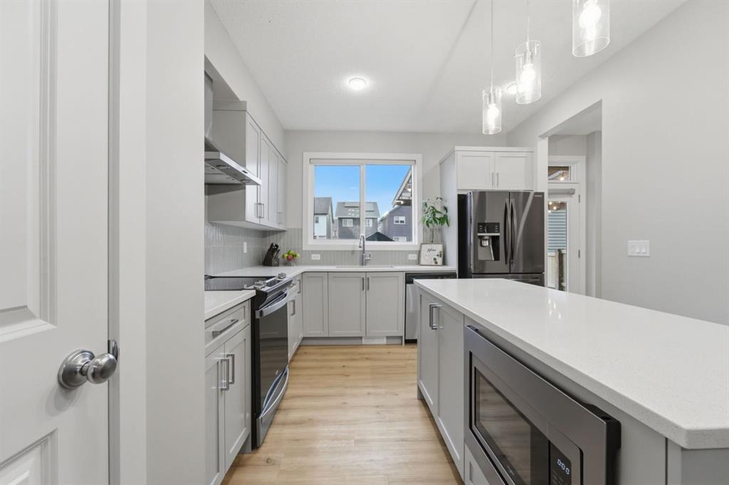 Welcome to Calgary’s first Garden-to-Table community and a home that truly reflects the lifestyle that comes with it.Located in Rangeview, this beautifully upgraded home offers over 1,550 sq ft of thoughtfully designed living space, ideal for families seeking comfort, functionality, and long-term value in a growing, lifestyle-driven neighbourhood. The main floor features a bright open-concept layout anchored by a fully upgraded kitchen complete with high-end appliances, chimney-style range hood fan, built-in microwave, and ample cabinetry and a pantry area perfect for both daily living and entertaining. A main floor den adds flexibility, ideal for a home office or study. Upstairs, you’ll find well-sized bedrooms along with a spacious bonus room, creating the perfect setting for family time, relaxation, or a kids’ play area. The fully finished basement with a separate side entrance offers incredible versatility, featuring 2 bedrooms, 1 full bathroom, kitchen, wet bar, and washer/dryer hookups, ideal for extended family living or future potential. Step outside to a thoughtfully designed outdoor space with a gazebo and concrete pad, perfect for hosting or unwinding. What truly sets this home apart is its location. Rangeview is Calgary’s first garden-to-table community, designed around connection, sustainability, and lifestyle offering community gardens, walkable pathways, parks, and a unique neighbourhood feel focused on bringing people together. Move-in ready, lifestyle-driven, and packed with value, this is a home you don’t want to miss.