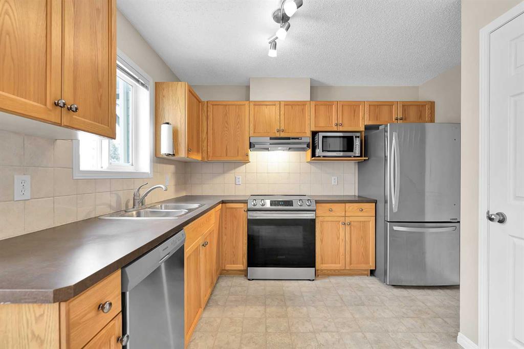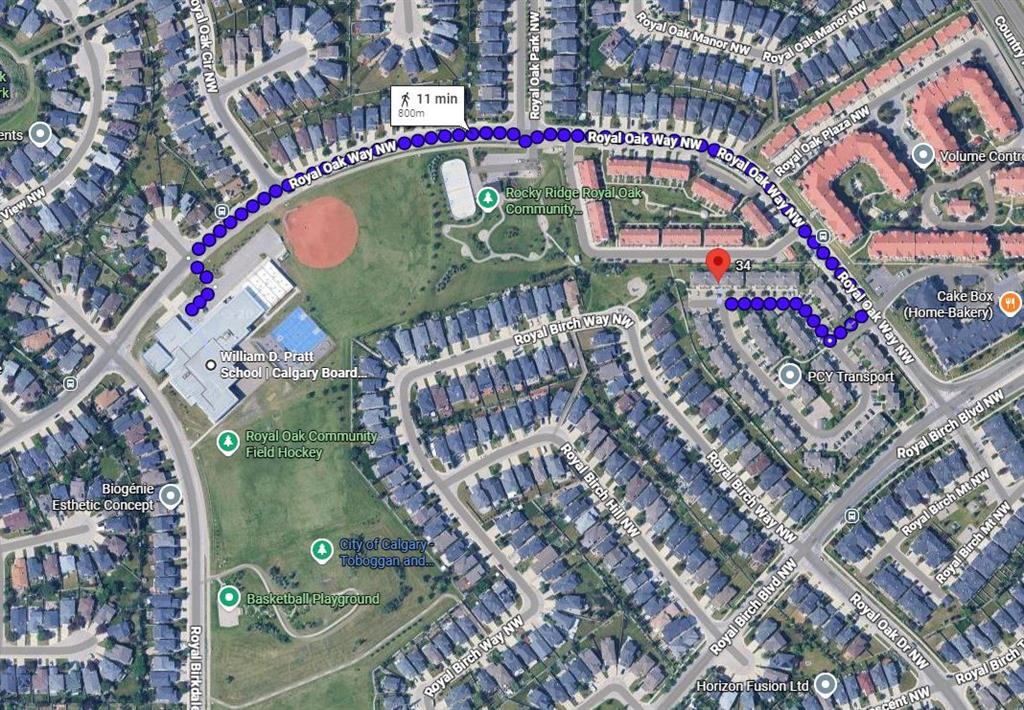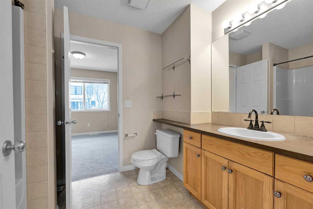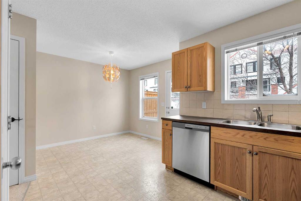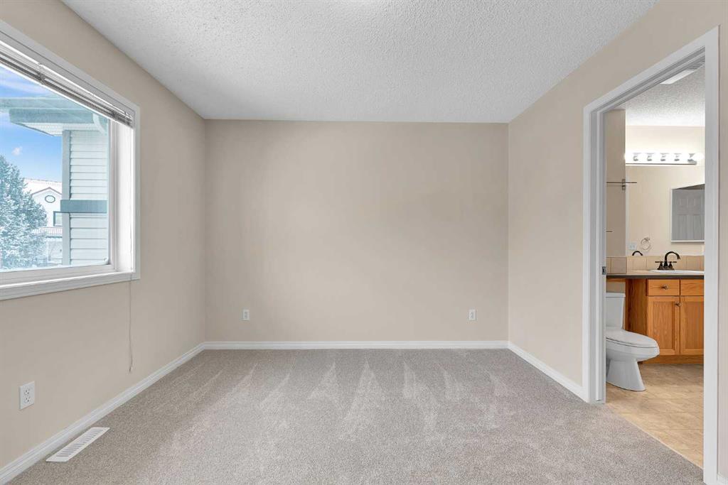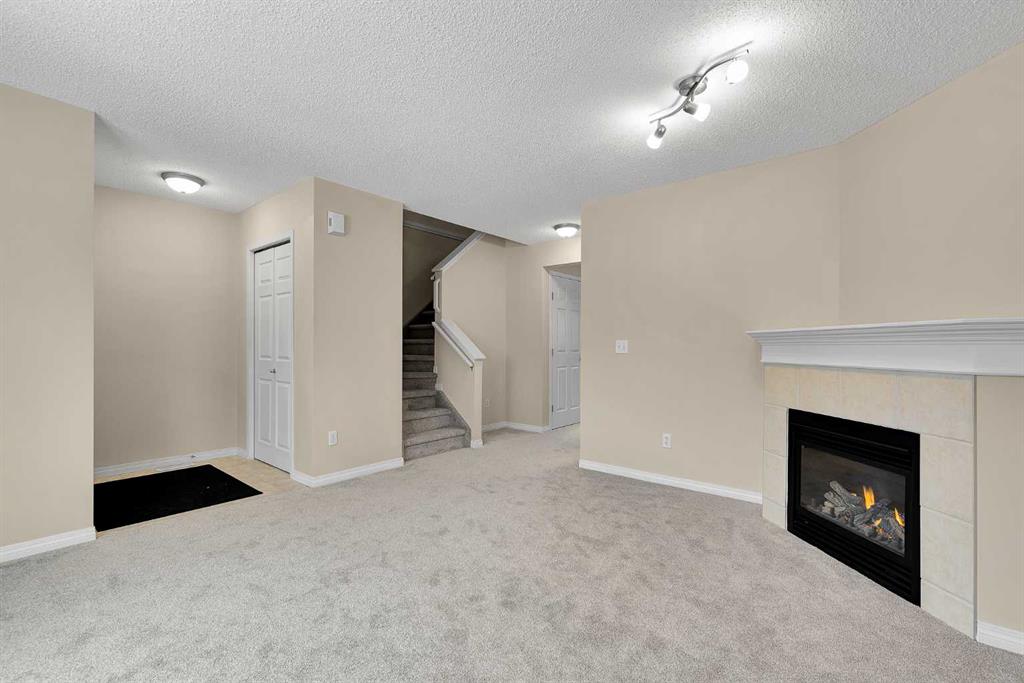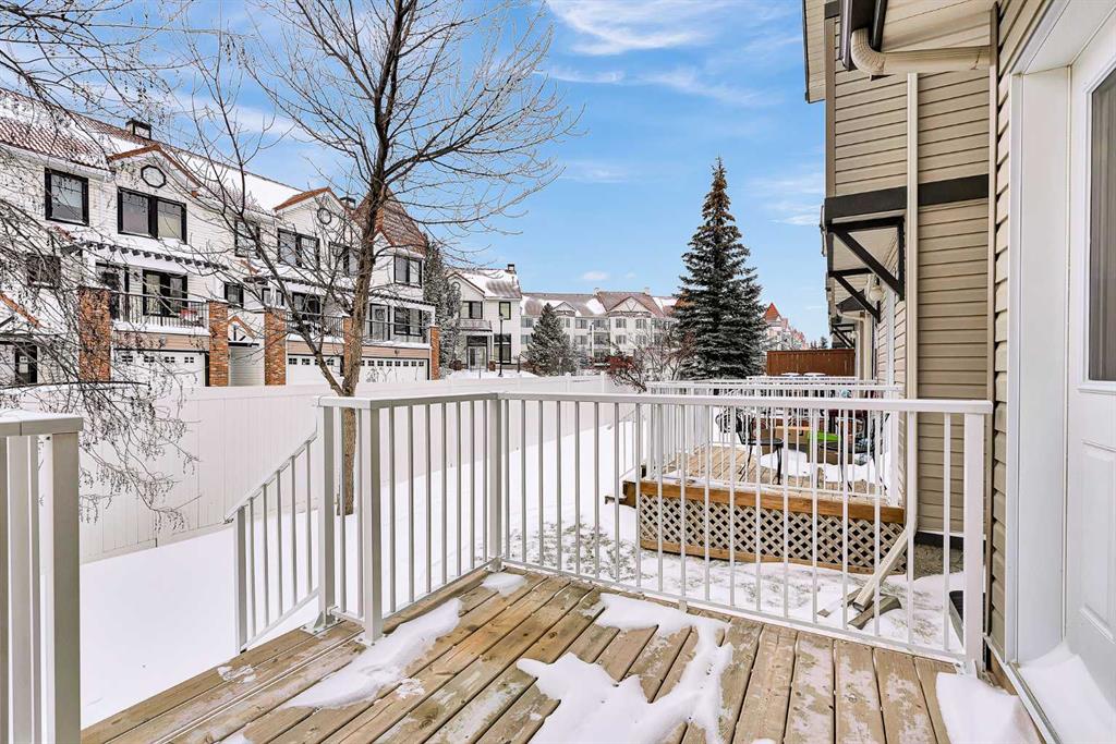 **Open House: 1-3 pm, Sat, Feb 28**. Tucked into a quiet end of the complex in the highly sought-after community of Royal Oak, this charming move-in ready two-storey townhome offers 2 bedrooms, 1.5 bathrooms, two parking stalls directly in front of the unit, and low condo fees — with quick possession available! Step inside to a bright and inviting main floor featuring brand-new carpet and a cozy living room complete with a fireplace and a beautiful bay window that fills the space with natural light. The functional kitchen is well equipped with stainless steel appliances, including a new dishwasher and range hood, ample cabinetry, and a dedicated dining nook. From here, step out onto your private, spacious deck — perfect for morning coffee or summer BBQs — surrounded by mature trees that provide added privacy. A convenient two-piece powder room completes the main level. Upstairs, you’ll find a generously sized primary bedroom and a comfortable second bedroom thoughtfully positioned on the opposite end of the unit, providing excellent privacy between the rooms. A shared four-piece bathroom and brand-new carpet throughout complete the upper level. The unfinished basement offers excellent potential for future development and includes the laundry area, adding convenience while still allowing plenty of room for storage or customization to suit your needs. Ideally located just 800 metres from elementary and junior high schools and only a five-minute drive to Robert Thirsk High School, this home is close to the new YMCA, grocery stores, cafes, restaurants, and everyday amenities. Crowfoot Library and the LRT station are just ten minutes away, with quick access to Stoney Trail and Country Hills Boulevard. CrossIron Mills is also a short drive away. This is the perfect opportunity for first-time buyers, investors, or downsizers. Book your private showing today!