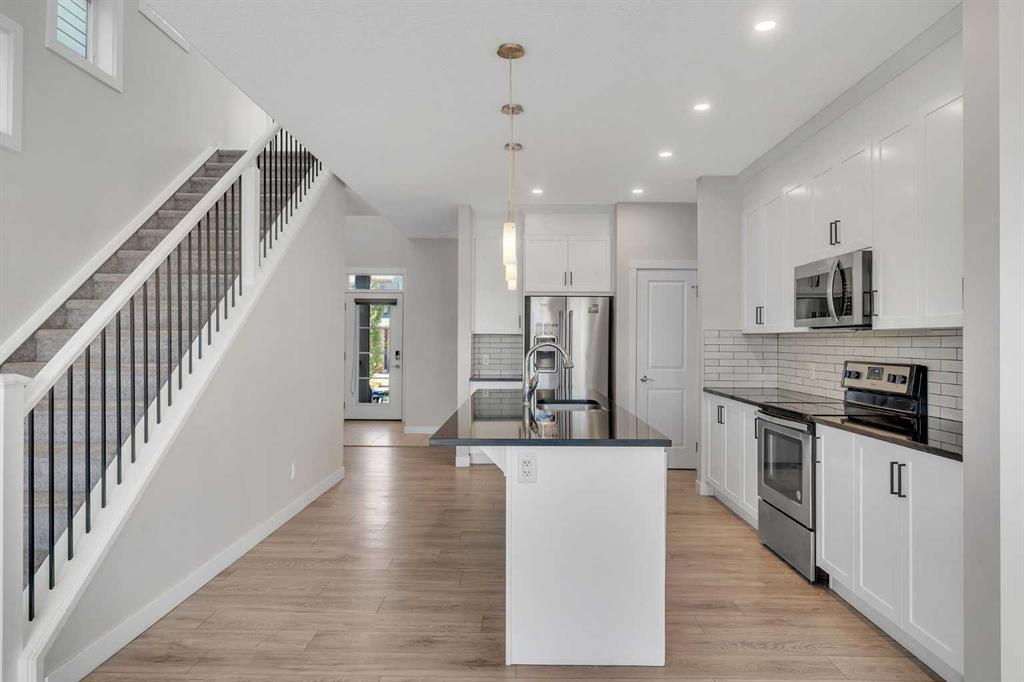 OVER 3100 SQFT LIVING SPACE | WALKOUT BASEMENT WITH KITCHEN & LAUNDRY ROUGH-INS | VAULTED CEILINGS | WEST-FACING LOT | CITY APPRAISAL VALUE $845K | CENTRAL A/C | MAIN FLOOR OFFICE | STEPS TO PARK & POND Welcome to this beautifully maintained 4-bedroom, 3.5-bathroom home tucked away on a quiet street in the heart of Sage Hill. Offering over 3100 sq. ft. of total living space, this property combines smart functionality with modern upgrades and elegant finishes—perfect for families seeking comfort and convenience. Main Floor Bright open-concept layout with 9-ft ceilings and upgraded laminate flooring. Spacious living room with a cozy fireplace and large windows bringing in natural light. Chef’s kitchen with a long granite island, sleek white cabinetry, stainless steel appliances, and upgraded backsplash. Main floor office near the entrance, ideal for remote work or study. Convenient 2-pc powder room. Upper Level 3 generous bedrooms plus a large bonus room with vaulted ceiling. Convenient upstairs laundry room. The primary suite offers a vaulted ceiling, spa-like 5-piece ensuite, and a large walk-in closet. Walkout Basement (Builder Finished) Oversized recreation room, perfect for family gatherings or movie nights. Additional bedroom and 4-pc bath, great for guests or multi-generational living.Kitchen sink and washer/dryer rough-ins. Additional Features Centralized A/C for year-round comfort. Modern lighting, LED pot lights, and knock-down ceilings. West-facing backyard, just steps from scenic parks and a tranquil pond. This move-in-ready home offers the perfect balance of space, style, and investment potential in one of NW Calgary’s most desirable communities. Disclosure: Some of the pictures in the listing has been virtually staged.