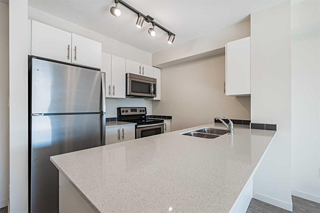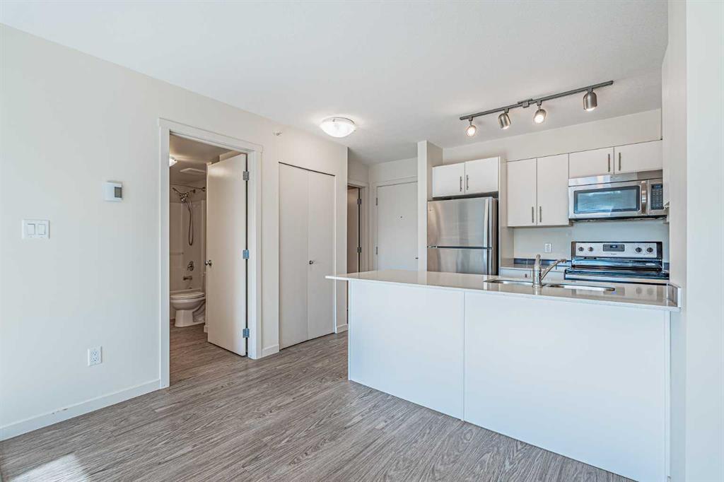 ?Modern & Functional Kitchen designed for the modern chef, features a spacious island for casual dining and extra prep space. It comes equipped with essential appliances (dishwasher, microwave, and fridge) and boasts recent upgrades like stunning quartz countertops. ?Enjoy a separate dining area just off the main living space, making hosting a delight. Unwind on your private lovely south-facing balcony offering stunning views—the perfect spot for your morning coffee or evening retreat. ?The apartment includes a comfortable bedroom and a good-sized closet for ample storage. A stylish four-piece bathroom completes the space. Benefit from a rare extra-large in-suite laundry room and the security of titled underground parking. This wonderful building complex enhances your lifestyle with a range of included amenities, such as a fitness centre, a recreation room, a convenient dog run, and secure bicycle storage. Experience the perfect balance of style, comfort, and convenience. This unit is more than just an apartment; it’s a warm and welcoming atmosphere you’ll love coming home to.