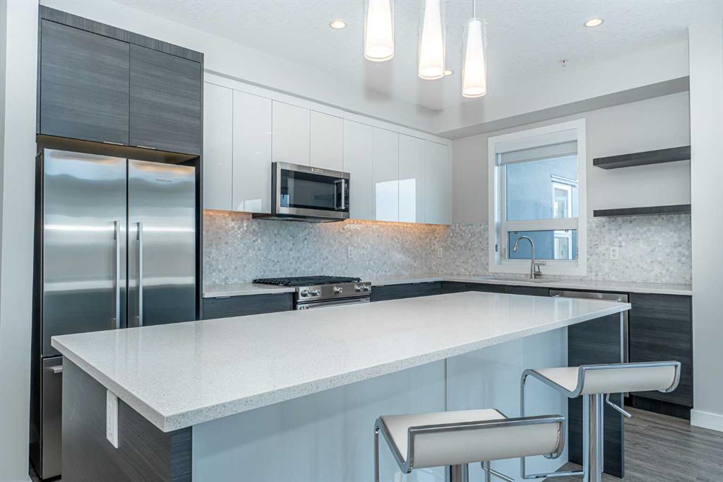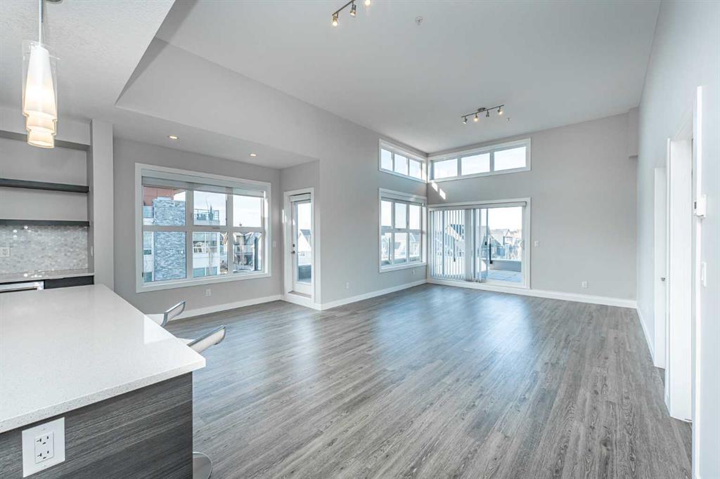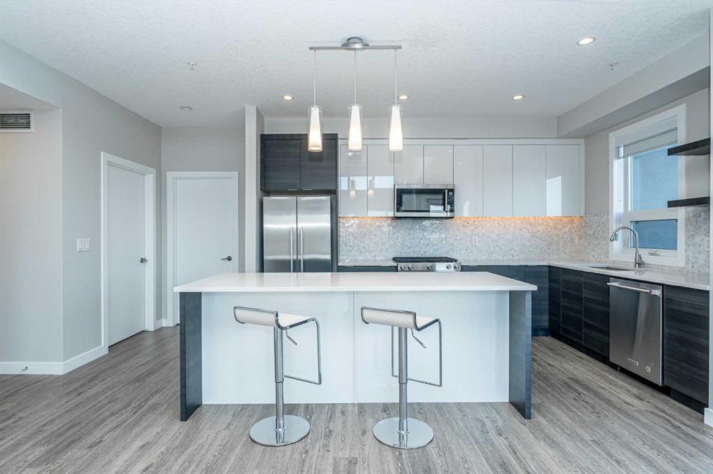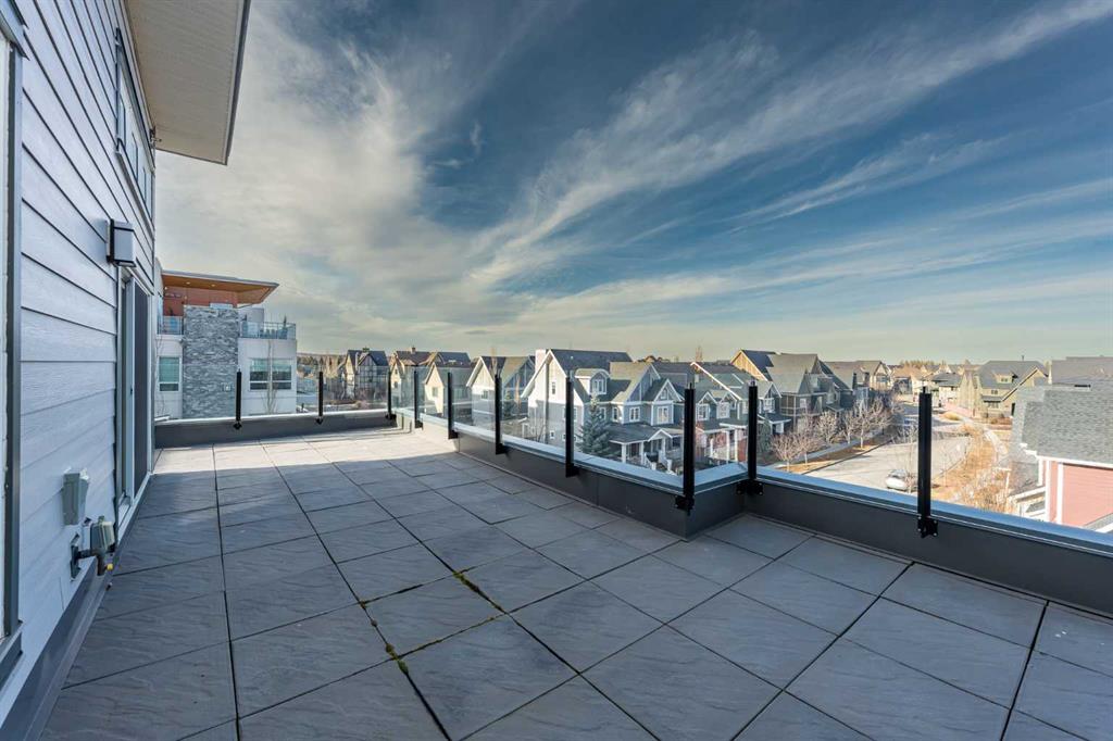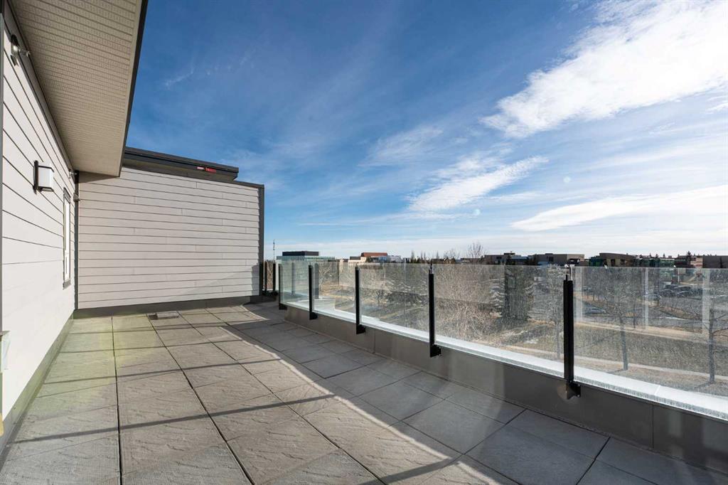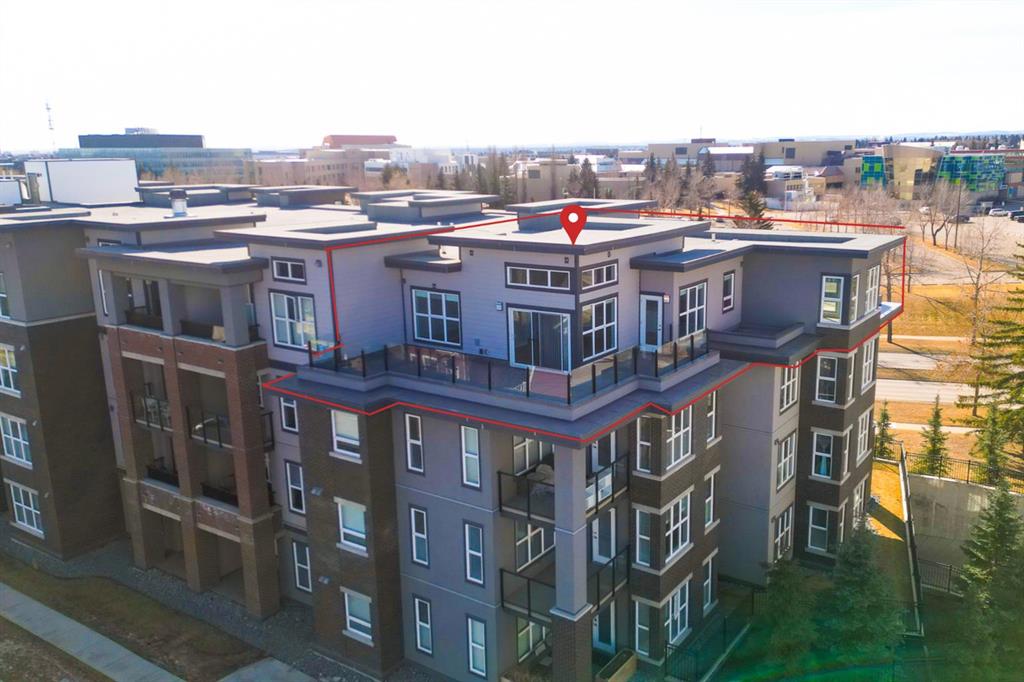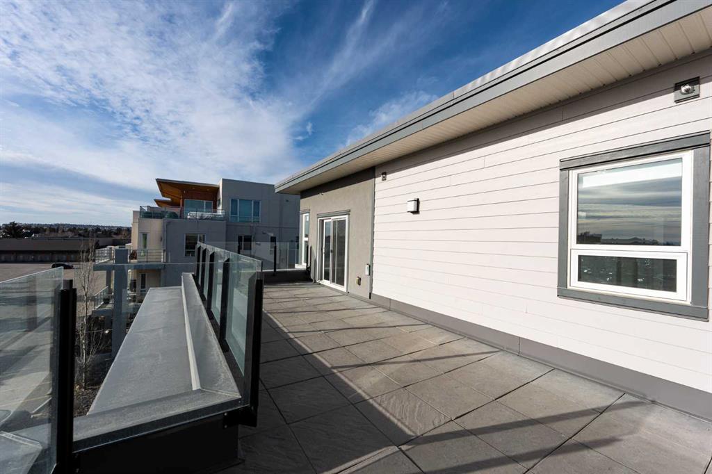 Discover this exceptional penthouse nestled in the heart of Currie Barracks, offering unparalleled elegance and comfort. Located on the top floor of a stunning four storey building, this residence features soaring ceilings and an expansive open concept living and dining area perfect for both relaxing and entertaining. Step outside onto the massive terrace, where breathtaking views and seamless indoor outdoor living await. With dual balconies, you will enjoy stunning vistas from every direction, including mountain views from the primary bedroom balcony. Every detail of this penthouse exudes sophistication, from the sleek quartz countertops in the modern kitchen and bathrooms to the thoughtfully designed layout that maximizes space and natural light. Enjoy the convenience of two titled parking stalls in the heated underground parkade, which also offers 26 visitor stalls and a car wash. The beautifully landscaped surroundings provide easy access to numerous nearby parks, creating a serene and inviting atmosphere. Experience the pinnacle of refined living in this one of a kind penthouse where luxury truly meets lifestyle.