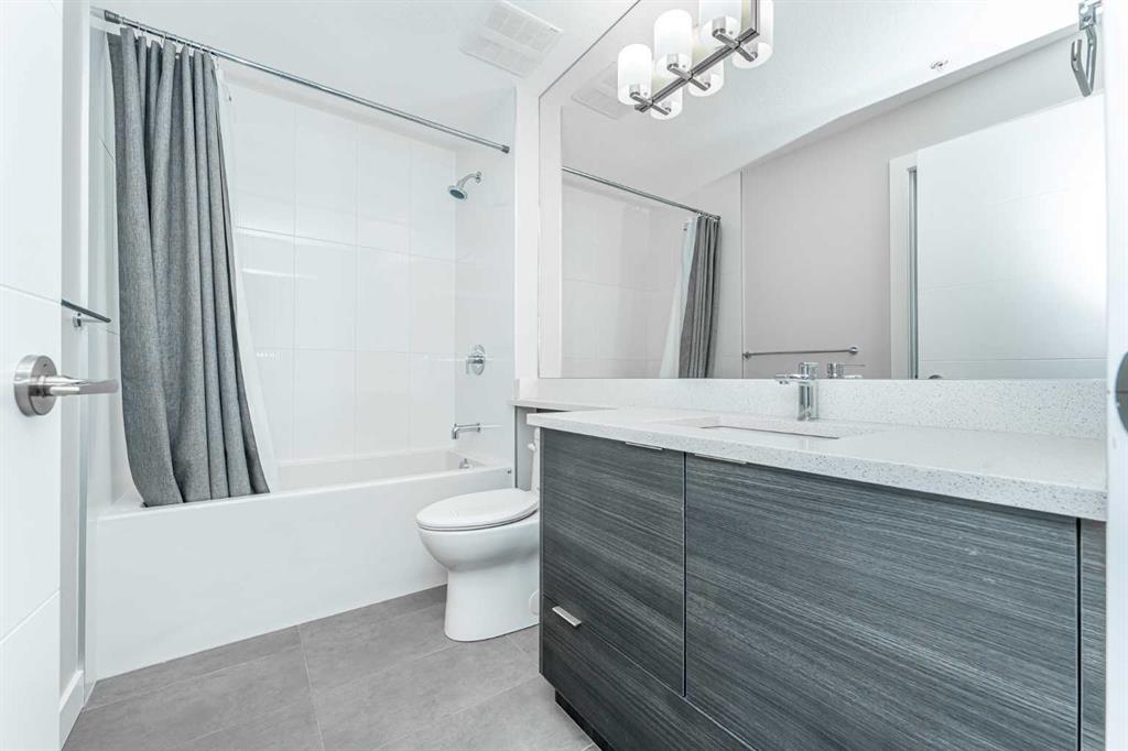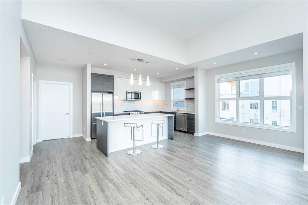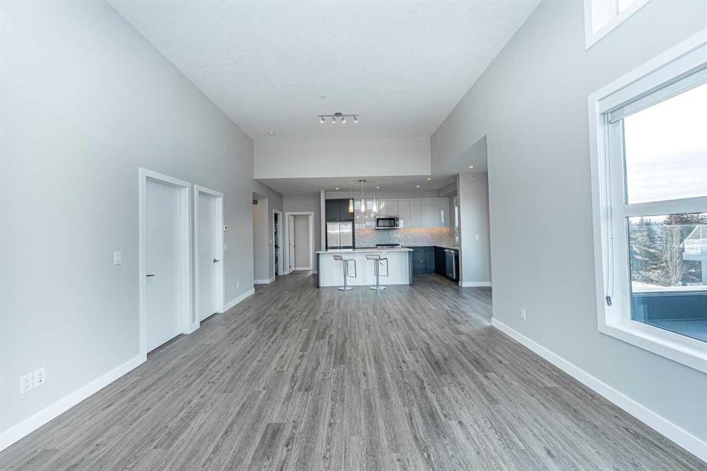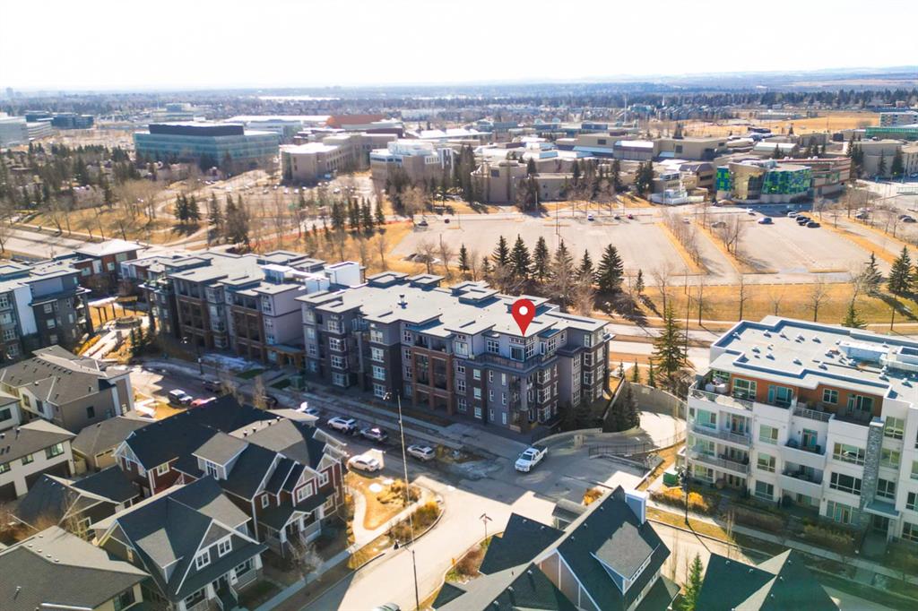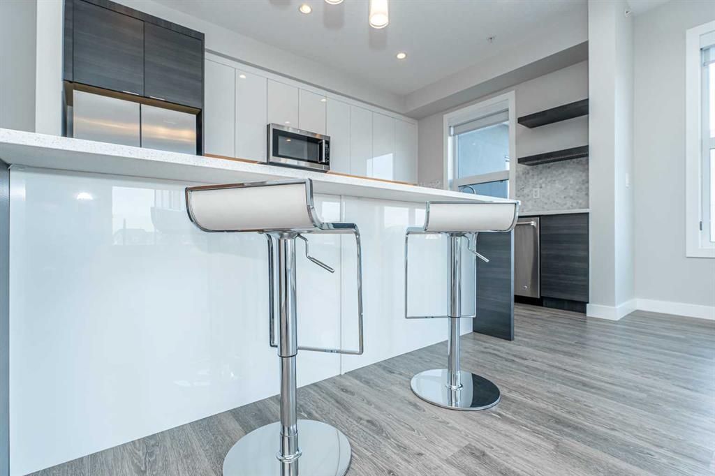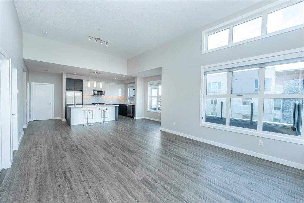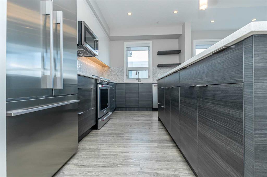 Discover this exceptional penthouse nestled in the heart of Currie Barracks, offering unparalleled elegance and comfort. Located on the top floor of a stunning four storey building, this residence features soaring ceilings and an expansive open concept living and dining area perfect for both relaxing and entertaining. Step outside onto the massive terrace, where breathtaking views and seamless indoor outdoor living await. With dual balconies, you will enjoy stunning vistas from every direction, including mountain views from the primary bedroom balcony. Every detail of this penthouse exudes sophistication, from the sleek quartz countertops in the modern kitchen and bathrooms to the thoughtfully designed layout that maximizes space and natural light. Enjoy the convenience of two titled parking stalls in the heated underground parkade, which also offers 26 visitor stalls and a car wash. The beautifully landscaped surroundings provide easy access to numerous nearby parks, creating a serene and inviting atmosphere. Experience the pinnacle of refined living in this one of a kind penthouse where luxury truly meets lifestyle.
