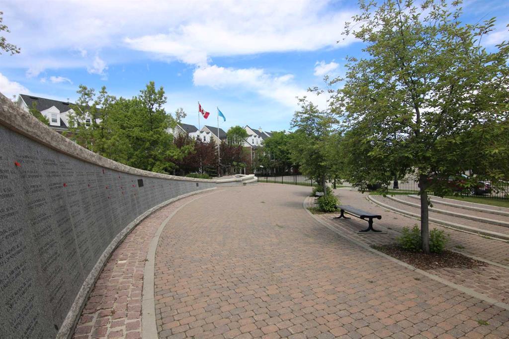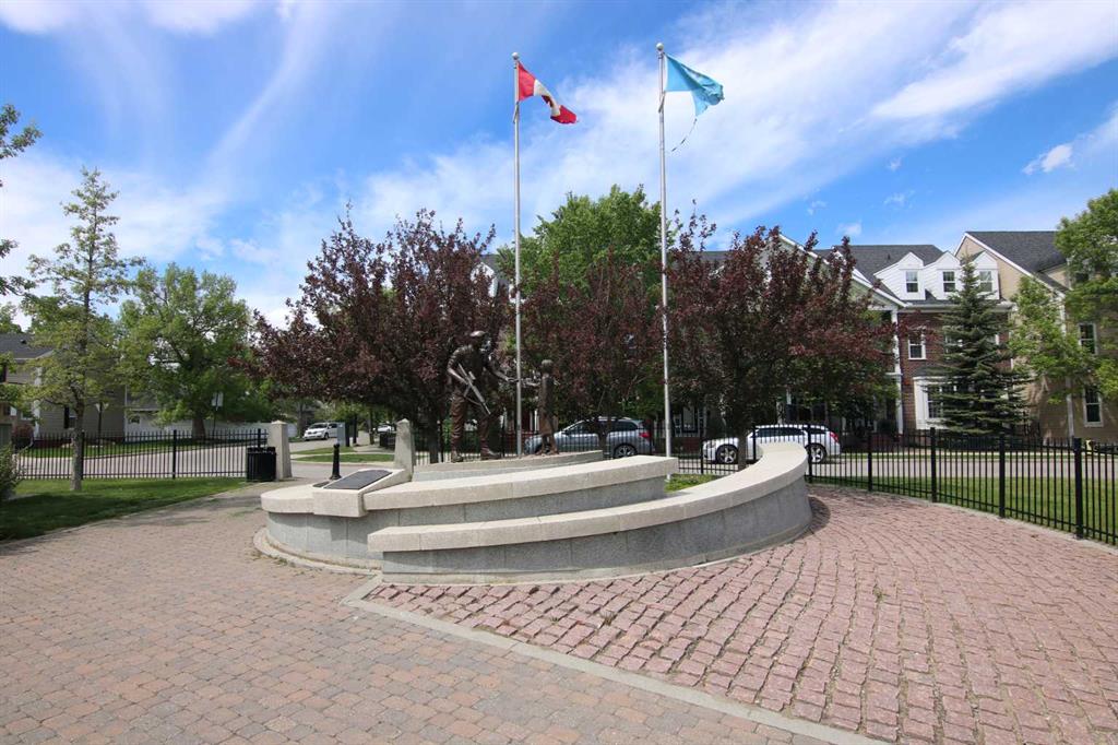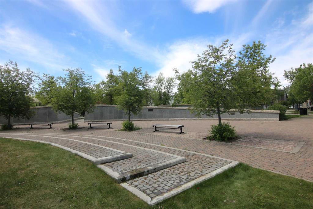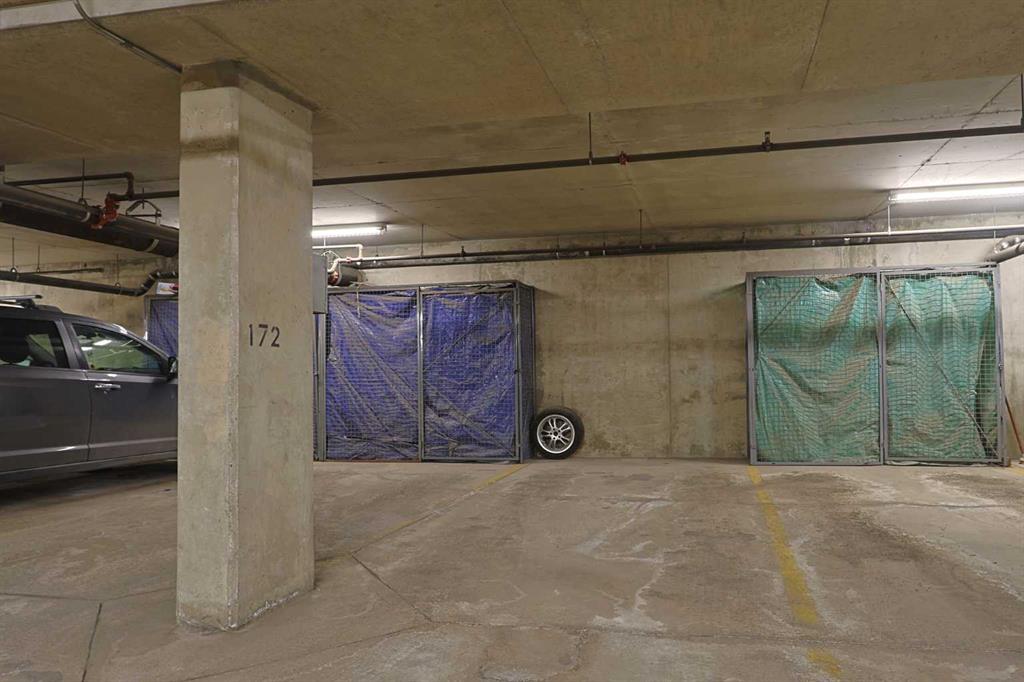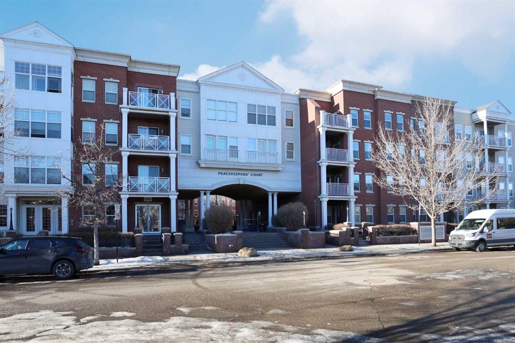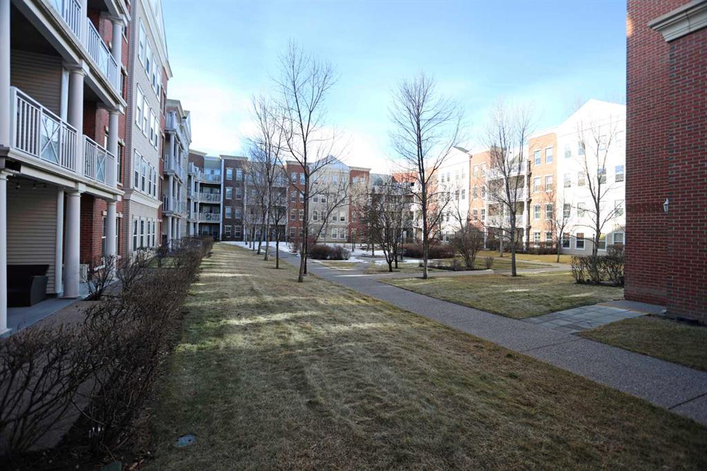 Here is the sought-after neighbourhood of Garrison Green is this fantastic 1 bedroom condo the popular GATEWAY GARRISON GREEN project, walking distance to beautiful Peacekeepers Park with its memorial to our veterans. Available for quick possession, this 3rd floor unit enjoys laminate floors & high ceilings, maple kitchen with granite counters, titled underground parking stall & covered South-facing balcony overlooking the central courtyard. You’ll love this sun-drenched home with its open concept floorplan, featuring the spacious living/dining room & stylish kitchen with island & pantry, black subway tile backsplash & stainless steel appliances which includes a Bosch dishwasher. Great-sized bedroom with 2 windows looking out onto the balcony. Full bathroom with shower/tub combo & laundry closet with space-saving Whirlpool washer/dryer. Overlooking the courtyard, the balcony – complete with natural gas line for your BBQ, is the perfect spot to relax, unwind & enjoy the fresh open air. Also included with this terrific home in this concrete building is a titled parking stall in the secure underground parkade & titled storage locker which is conveniently located just steps from your parking spot. Monthly condo fees include heat, water-sewer & electricity, plus access to the building amenities: main floor fitness centre & yoga studio, residents lounge, bike storage & library; there is also an onsite property manager, underground visitor parking & guest suites you can rent. Prime location just minutes to Mount Royal University, transit & trendy Marda Loop, North Glenmore Park, highly-ranked schools, museums & downtown.