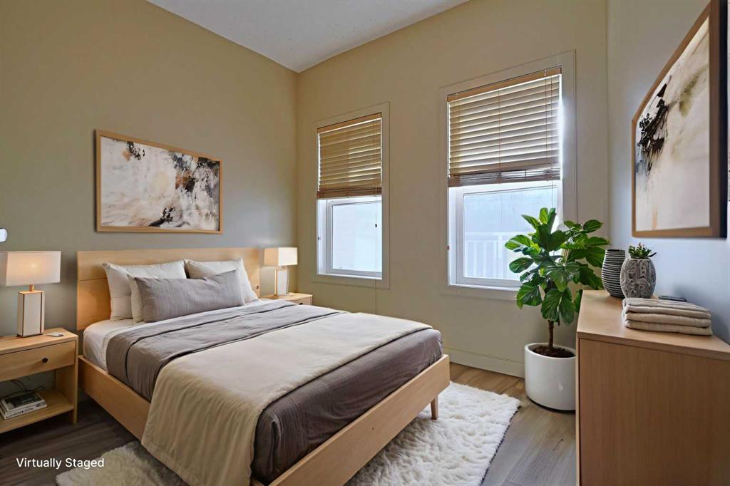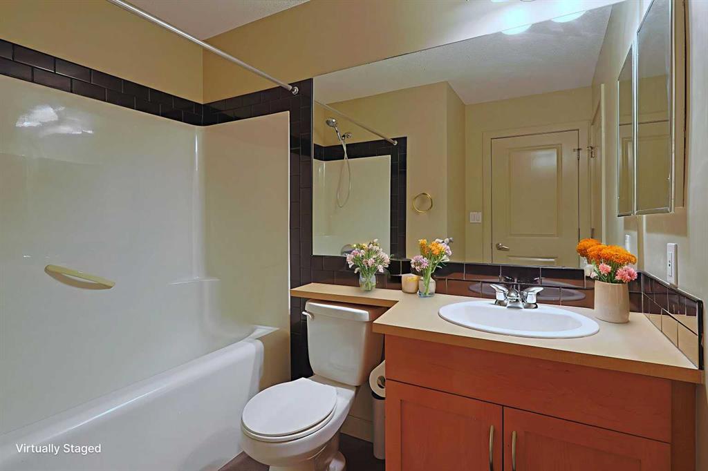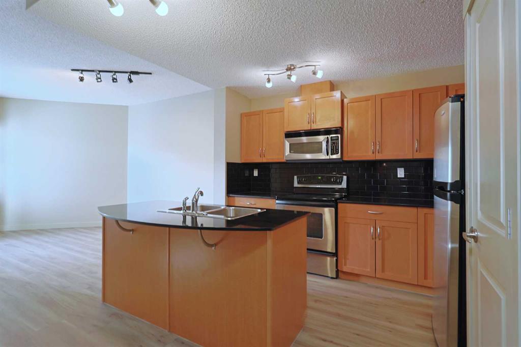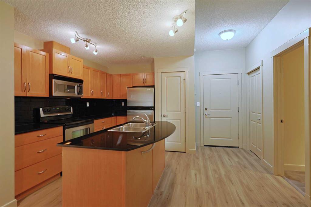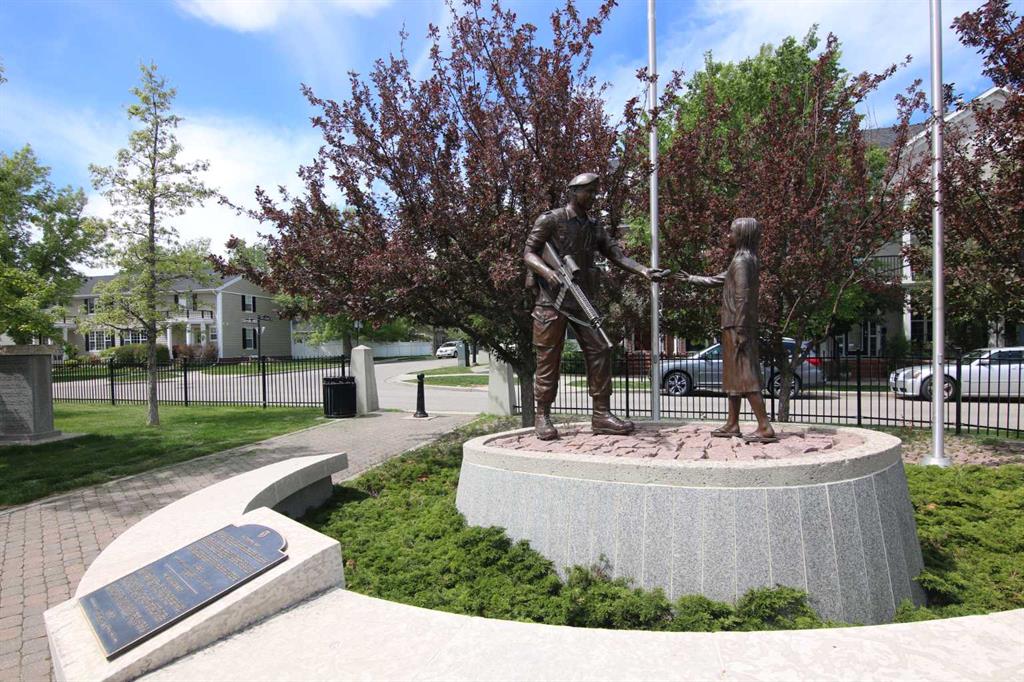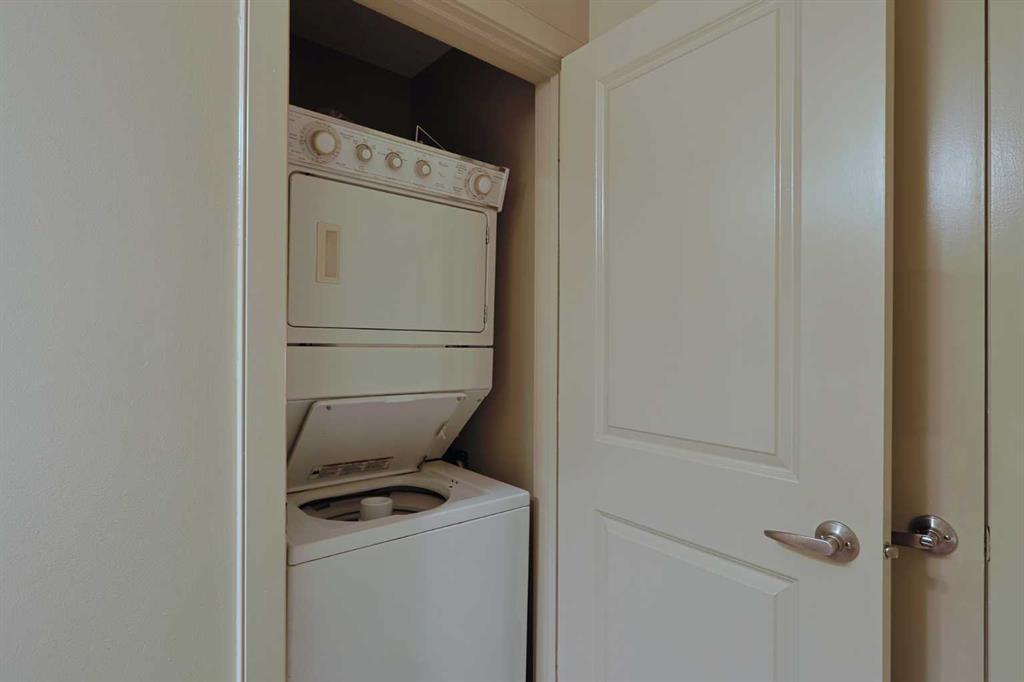 Here is the sought-after neighbourhood of Garrison Green is this fantastic 1 bedroom condo the popular GATEWAY GARRISON GREEN project, walking distance to beautiful Peacekeepers Park with its memorial to our veterans. Available for quick possession, this 3rd floor unit enjoys laminate floors & high ceilings, maple kitchen with granite counters, titled underground parking stall & covered South-facing balcony overlooking the central courtyard. You’ll love this sun-drenched home with its open concept floorplan, featuring the spacious living/dining room & stylish kitchen with island & pantry, black subway tile backsplash & stainless steel appliances which includes a Bosch dishwasher. Great-sized bedroom with 2 windows looking out onto the balcony. Full bathroom with shower/tub combo & laundry closet with space-saving Whirlpool washer/dryer. Overlooking the courtyard, the balcony – complete with natural gas line for your BBQ, is the perfect spot to relax, unwind & enjoy the fresh open air. Also included with this terrific home in this concrete building is a titled parking stall in the secure underground parkade & titled storage locker which is conveniently located just steps from your parking spot. Monthly condo fees include heat, water-sewer & electricity, plus access to the building amenities: main floor fitness centre & yoga studio, residents lounge, bike storage & library; there is also an onsite property manager, underground visitor parking & guest suites you can rent. Prime location just minutes to Mount Royal University, transit & trendy Marda Loop, North Glenmore Park, highly-ranked schools, museums & downtown.