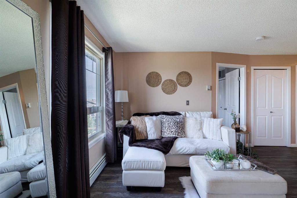 Welcome to this immaculate 2-bedroom (plus a den!), 2-bathroom condo in the heart of Panorama Hills! This unit combines style, comfort, convenience, and value. Featuring a bright and open layout, this unit boasts a functional kitchen, direct access to your private patio, a primary bedroom featuring a walk-through closet and a private 4-piece ensuite, a spacious second bedroom, another 4 piece bathroom and a den that offers extra room for formal dining, office, or a potential third bedroom setup. In-suite laundry provides a must-have for easy, everyday living. Your dedicated parking stall is situated in front of the building, providing effortless and convenient access. Condo fees include heat, water & electricity providing great value and fewer bills to worry about. All this in a well-maintained building close to parks, shopping, transit, and major routes. Stoney Trail, Deerfoot Trail and North Pointe Bus Terminal just minutes away. The Panorama Hills Community Centre consists of a two-floor indoor facility. The fully fenced private park space comes complete with a cascading waterfall, water spray park, children’s play structure, three basketball courts, multi-use sport court, paved walking path, three gazebos, tennis court and outdoor fitness equipment. Don’t miss out—this is your chance to own a fantastic home in a great community!