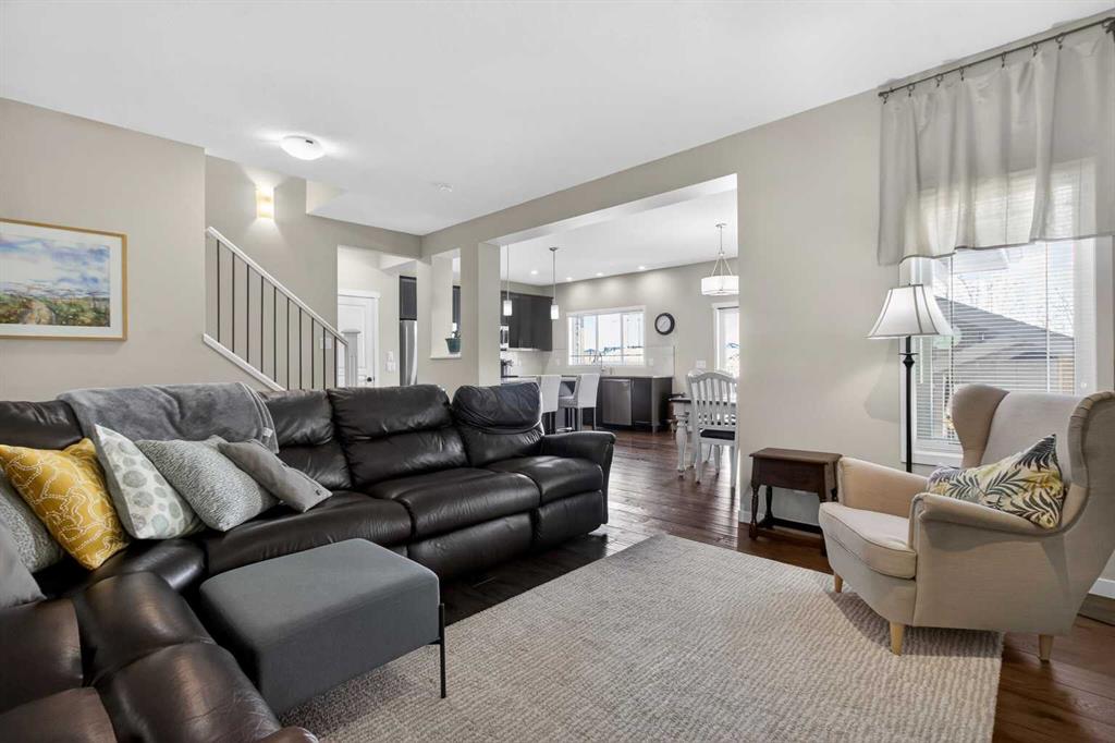 Open House Saturday Mar 14 from 1:00 PM to 3:00 PM | Beautiful family home BACKING ONTO GREEN SPACE with a WEST-FACING YARD in community of Reunion in Airdrie! Offering 2,181.56 sq ft above grade plus an additional 828.06 sq ft unfinished basement, allows you to develop further for your family’s needs. The bright and open main floor features 9’ ceilings, engineered hardwood flooring, and a gourmet kitchen with granite countertops, stainless steel appliances, and ample cabinetry, perfect for the everyday chef. Large windows frame the peaceful greenspace views and fill the home with natural light. Upstairs you’ll find a spacious bonus room, ideal for a kids’ play area or quiet study space, along with a huge primary retreat featuring extended ceilings, large walk-in closet, and a spa-inspired 5 pc ensuite with dual sinks, walk-in shower, and relaxing soaker tub. Two secondary bedrooms, main 4 pc bath, and upstairs laundry complete this level. The home backs onto a peaceful walking path, green space and playground. Ideally located close to Herons Crossing School, A.E. Bowers Elementary, and W.H. Croxford High School, with shopping and amenities nearby including Coopers Town Promenade, Sierra Springs Shopping District, Save-On-Foods, Sobeys, and Walmart Supercentre. Enjoy quick access to Veterans Boulevard, Yankee Valley Boulevard, and Highway 2, making commuting to Calgary simple and convenient. This fantastic home combines location, space, and lifestyle in one of Airdrie’s most desirable communities.