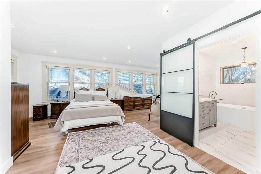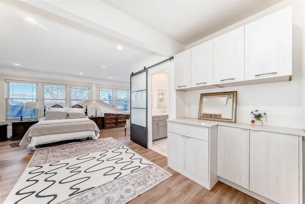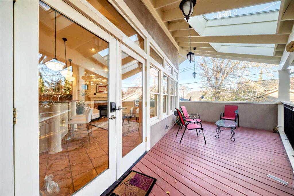 Facing a tranquil park in one of Calgary’s most treasured inner-city communities, this red-brick 5-bedroom, 4,289 sq.ft. (RMS+Finished Area) Scarboro estate embodies a rare harmony of heritage elegance and modern sophistication. Feng Shui enthusiasts and those who appreciate life’s blessings will sense the unique energy here — a home where 3 respected Medical Doctors grew up within one generation, radiating intellect, peace, and prosperity. The iconic red-brick façade and manicured gardens exude timeless charm. Inside, the Downsview Gourmet Farmhouse Kitchen is a true architectural masterpiece — surrounded by three-sided window walls, vaulted ceilings with rustic beams, and a sculptural curved island. Sub-Zero and Thermador appliances, dual sinks, and a skylit outdoor kitchen and patio make this the heart of the home. Between 2001 and 2022, thoughtful renovations harmoniously merged classic character with modern comfort. The formal dining room overlooks lush gardens, while the living room and paneled office, each with their own fireplaces, invite quiet moments of reflection. Upstairs, the serene primary suite features a spa-inspired ensuite, walk-in closet, and Juliet balcony overlooking downtown. A sunlit yoga room facing the park completes the tranquil experience. The lower level features a recreation room with a wet bar, a gym, a fifth bedroom, and a laundry room equipped with a cast-iron sink and a chute. A 2017 steam boiler system, two furnaces, and an oversized double garage reflect true craftsmanship. Set on a secluded, park-facing lot near top-ranked schools, downtown, and the LRT, this is more than a home — it’s a lifestyle of grace, light, enduring harmony, and true legacy!