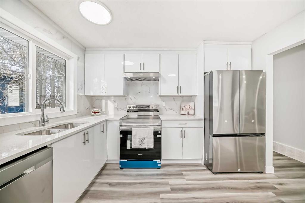 Welcome to this beautifully renovated and thoughtfully updated home, perfectly situated in the family-friendly community of Dover. Offering just shy of 1,100 sq. ft. on the main level and a total of 5 bedrooms and 2 full bathrooms, this property delivers exceptional comfort, functionality, and versatility for homeowners and investors alike. Step inside to a bright and inviting living room, where large windows fill the space with natural light and highlight the modern LVP flooring that flows seamlessly throughout the main level. The adjoining dining area provides an ideal space for family dinners or hosting guests, with easy access to the fully updated kitchen. Offering an attractive blend of style and efficiency, the kitchen features sleek, high-gloss cabinetry, quartz countertops, and stainless steel appliances, creating a fresh, contemporary look that will appeal to any modern homeowner or tenant. The main level is complete with three well-sized bedrooms, a beautifully renovated full bathroom, and the convenience of an in-suite stacked washer and dryer—making this space entirely self-sufficient. A separate side entry leads to a spacious, self-contained illegal suite, providing excellent flexibility for extended family living or potential rental income. This lower-level suite includes two additional bedrooms, a full bathroom, a generous family room ideal for relaxing or entertaining, and a well-appointed kitchen. With its own dedicated laundry, the suite offers complete independence and privacy. Located in a prime area of Dover, this home offers easy access to major routes including 36 Street, 26 Street, 17 Avenue, and Peigan Trail—making commuting simple and convenient. Residents will appreciate being just minutes from shopping centers, transit options, schools, playgrounds, and numerous community amenities. Whether you’re looking for a move-in-ready family home or a savvy investment property with excellent rental potential, this beautifully renovated home checks all the boxes. Don’t miss the opportunity to make this exceptional property yours!