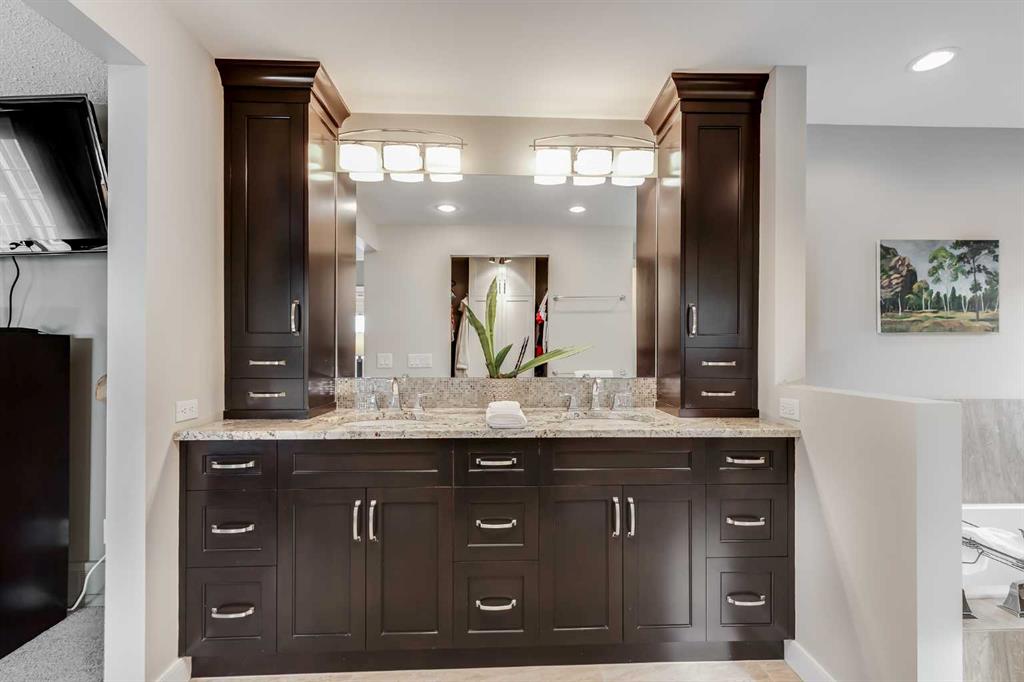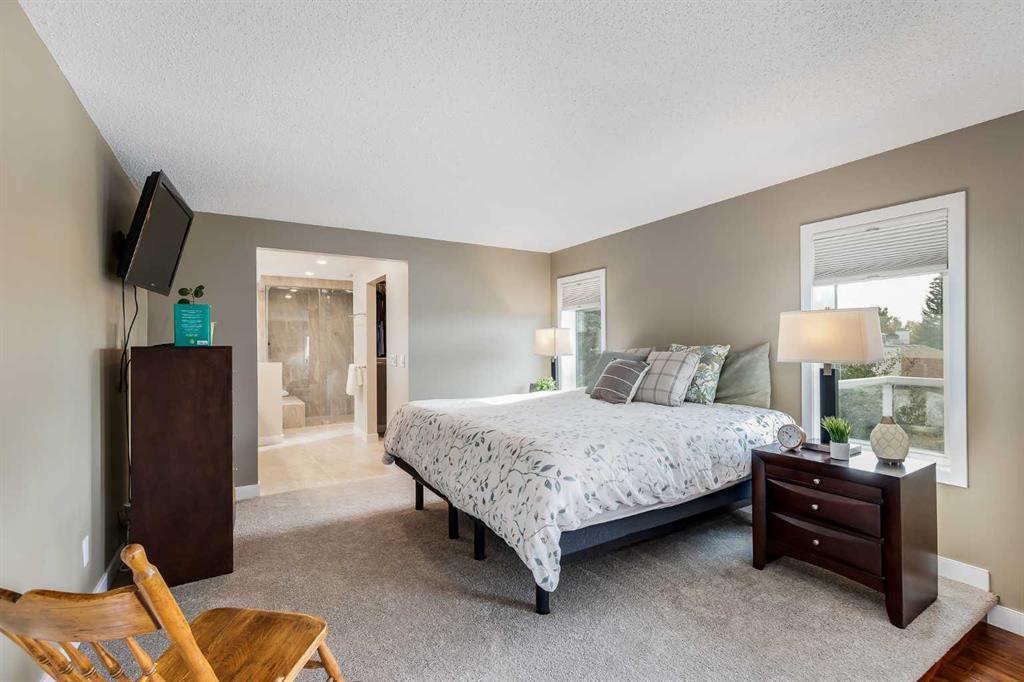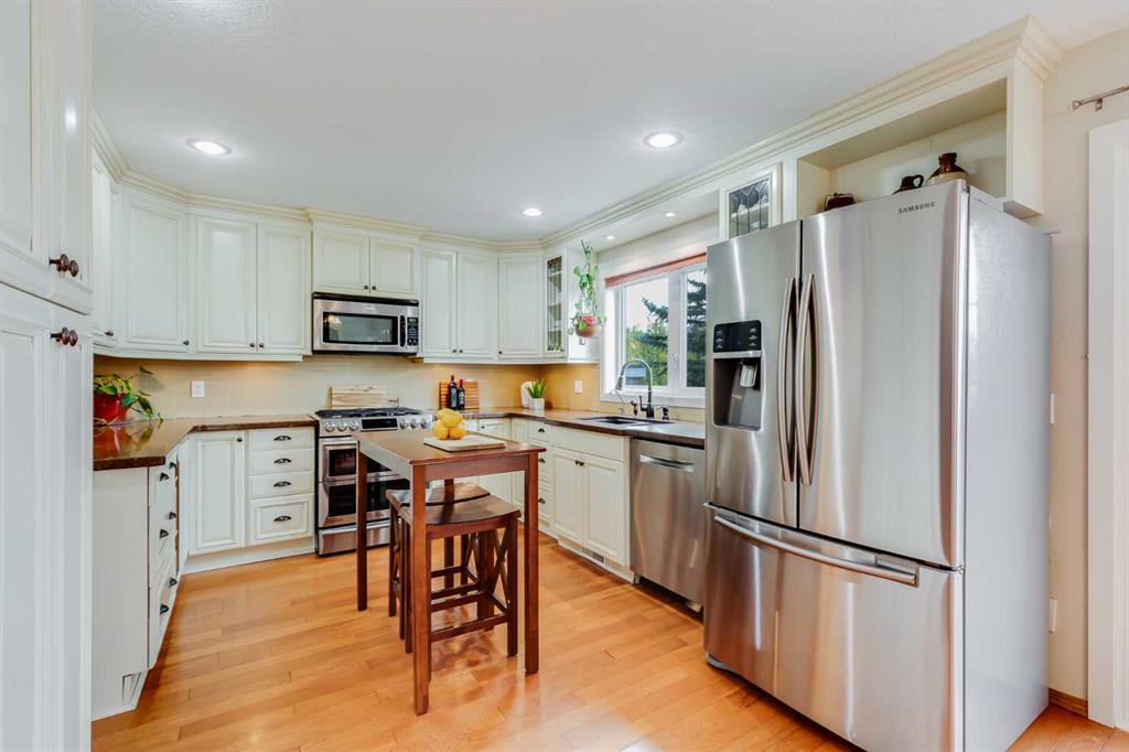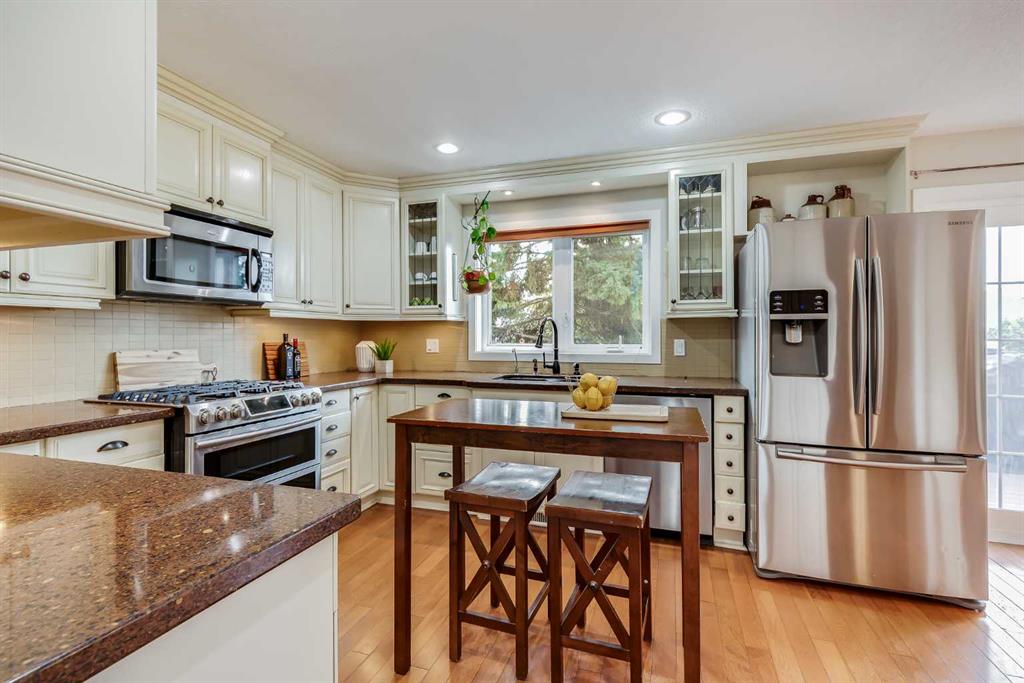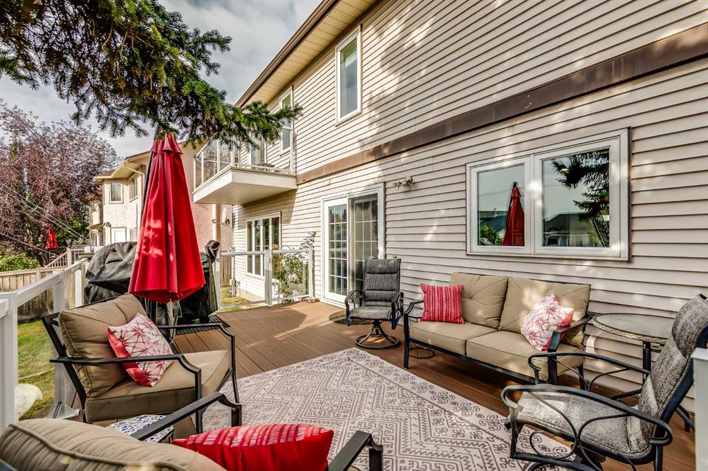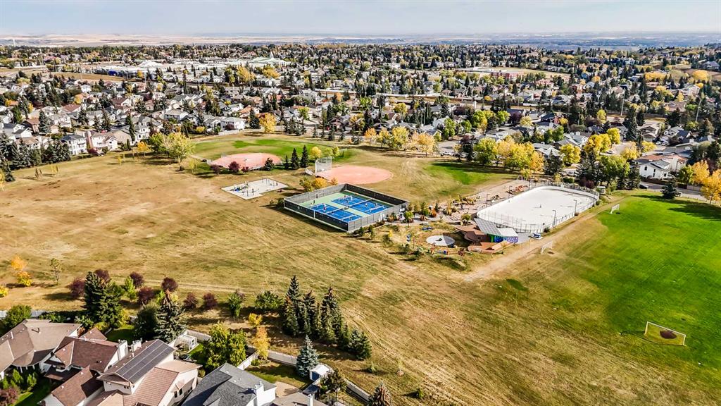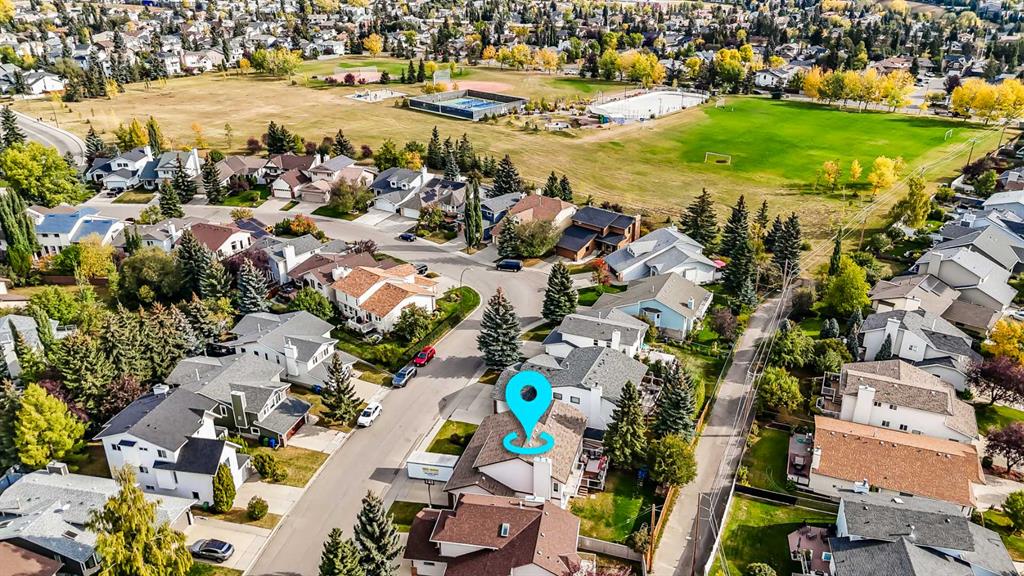 Nestled in the desirable community of Hawkwood, this elegant two-storey home offers over 3,600 square feet of developed living space designed for both family living and entertaining. With four bedrooms, three and a half bathrooms, an oversized double attached heated garage, and a fully finished basement, it combines thoughtful design with everyday comfort. A grand double-door entryway leads into the main floor, where rich hardwood flooring and a striking vaulted ceiling set the tone. The living room is filled with natural light and flows seamlessly into a formal dining area, perfect for hosting gatherings. The open-concept kitchen, dining, and family room form the heart of the home. The kitchen is a timeless space with cream cabinetry, granite countertops, stainless steel appliances including a gas range, abundant counter and cupboard space, and a coffee bar with a bar fridge. A casual dining nook with sliding doors extends out to the patio, while the family room is anchored by a cozy wood burning fireplace and custom built-ins. Completing the main level are a convenient powder room, a mudroom off the garage, and a laundry room with sink. Upstairs, double doors open to an expansive primary retreat. This private space offers a wood burning fireplace and sitting area, a balcony with glass panels, and a luxurious five-piece ensuite featuring dual sinks, a soaker tub, and a glass-enclosed steam shower for two with bench seating, rain showerhead, Bluetooth speakers, and Wi-Fi. In-floor heating and a custom walk-in closet with cabinetry, including a watch and jewelry drawer, add to the sense of refinement. Two additional bedrooms, a four-piece bathroom, and a versatile loft bonus area complete the upper floor. The basement offers 10-foot ceilings and impressive flexibility. A massive recreation room provides ample space for a home theatre, gym, or games area. An additional bedroom and three-piece bathroom make it ideal for guests, while generous storage areas keep everything organized. Step outside to a backyard designed for both relaxation and play. A large composite deck with a gas line for BBQs overlooks a spacious lawn, while two storage sheds, a fenced-in dog run, a newly built back fence, and a paved utility pathway behind the property, providing direct access to Hawkwood field and extra space from the rear neighbours, add convenience. This home is equipped with air conditioning to keep summer nights comfortable and has seen thoughtful updates over the years, including replacement of the roof and windows. Living in Hawkwood means enjoying community amenities just steps away, including a playground, outdoor rink, tennis & pickleball courts, soccer fields & baseball diamonds. Families will appreciate proximity to Hawkwood and St. Maria Goretti Schools. Everyday essentials are within minutes including Crowfoot Crossing, the Melcor YMCA, and the public library. Quick access to John Laurie Blvd, Sarcee Trail, and downtown in just 15 minutes, with transit options nearby.