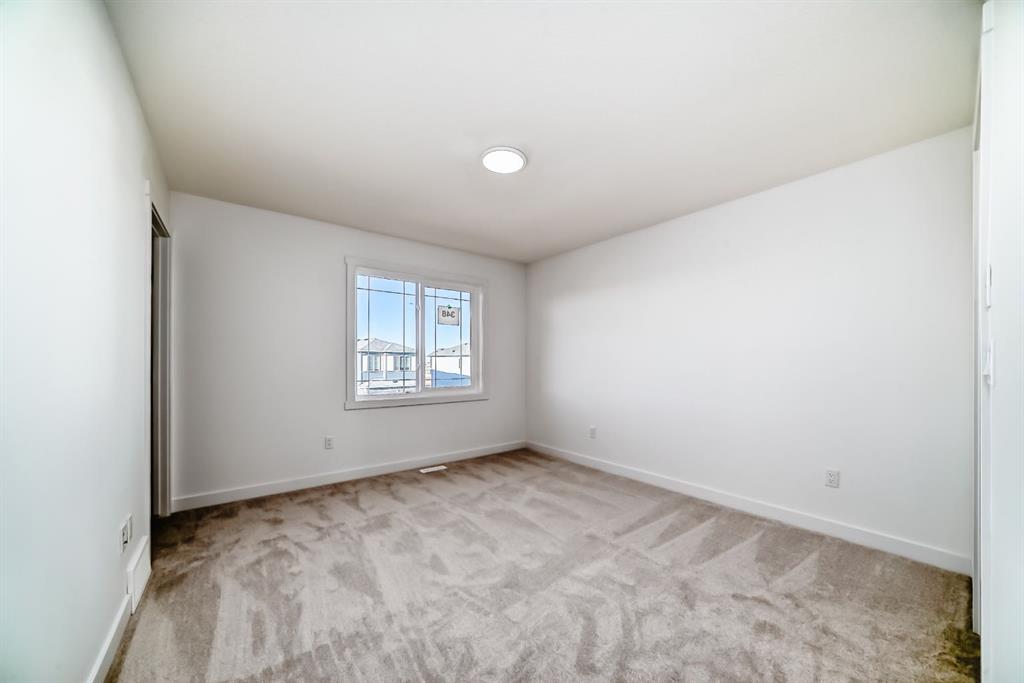 Step into this NEWLY built upgraded semi-detached home, where modern luxury and everyday functionality come together beautifully in the heart of Calgary’s vibrant new Northeast Community. Offering 4 BEDROOM and 3 FULL bathrooms, this home includes a MAIN floor bedroom with a full ensuite, ideal for elderly family members, guests, or multigenerational living. All bathrooms are finished with granite countertops and under mount sinks, reflecting quality craftsmanship throughout. This thoughtfully designed home features an open-concept main floor highlighted by a sleek contemporary kitchen with a gas line to the range, ceiling-height cabinetry offering abundant storage, and a convenient pantry. The cozy living room creating the perfect space for relaxing or entertaining. Upstairs, retreat to the spacious primary bedroom featuring a luxurious 5-piece ensuite, designed for comfort and relaxation. Two additional well-sized bedrooms and a dedicated computer/desk nook provide flexibility for family living or work-from-home needs. The full basement with 9-foot ceilings and a separate side entrance is ready for your creative vision—whether additional living space, a recreation area, or a future legal suite (subject to city approvals). Located in Calgary’s desirable new Northeast community, this home offers quick access to Stoney Trail, major roadways, schools, shopping, and all essential amenities. This vacant home is available for quick possession, allowing you to move in without delay. With meticulous attention to detail and modern finishes throughout, this property truly represents the pinnacle of contemporary living.