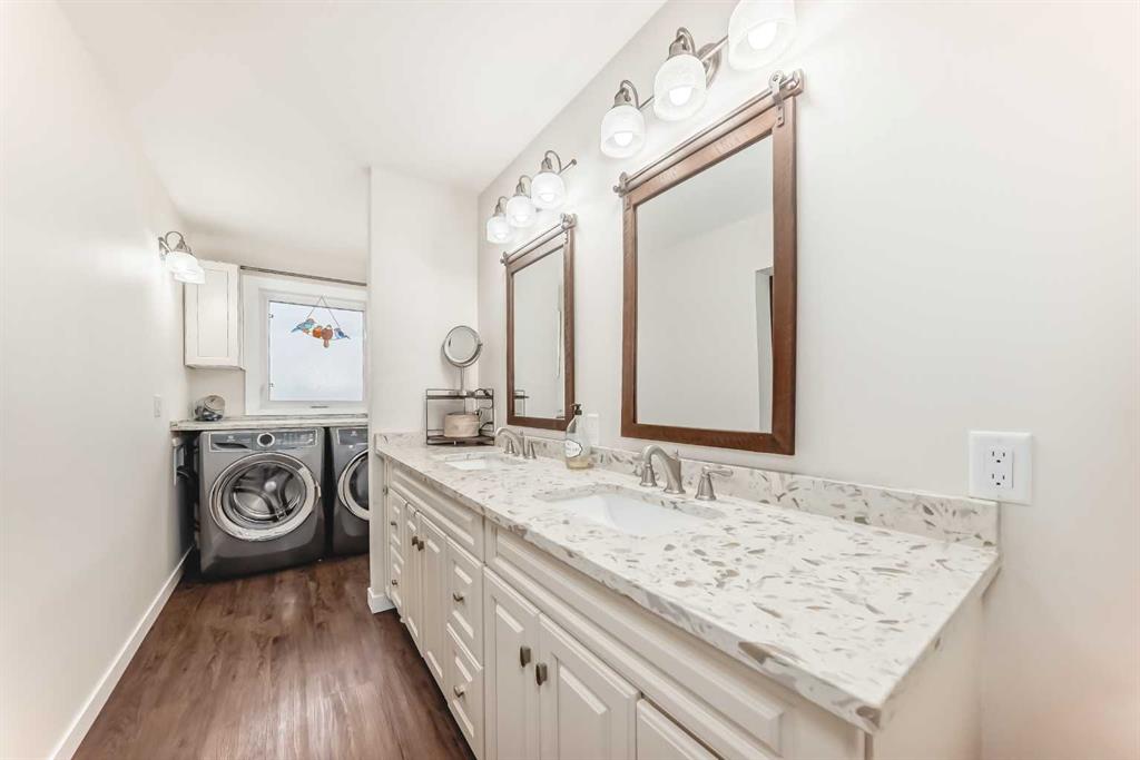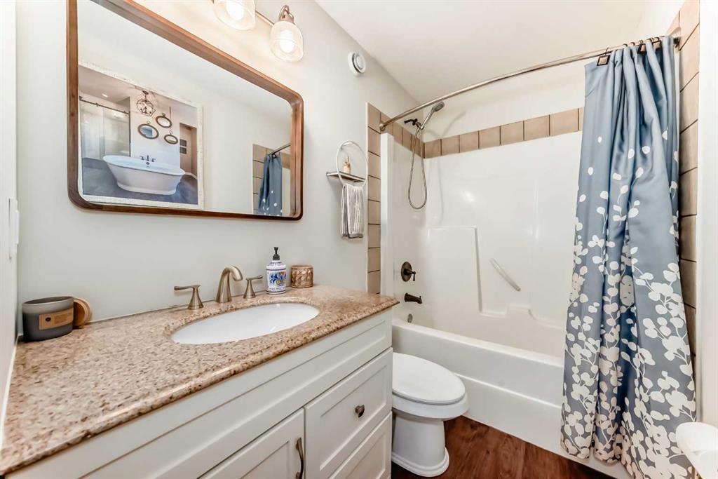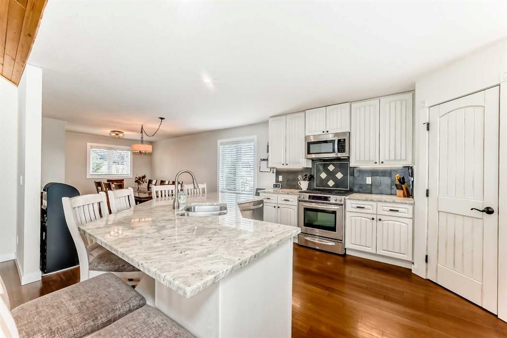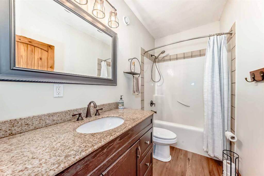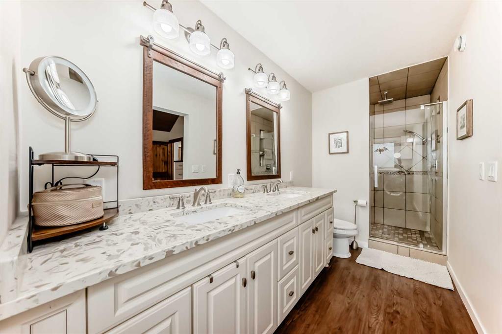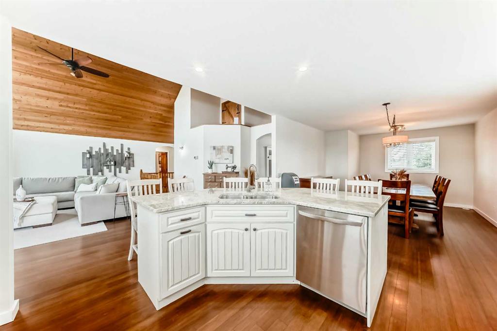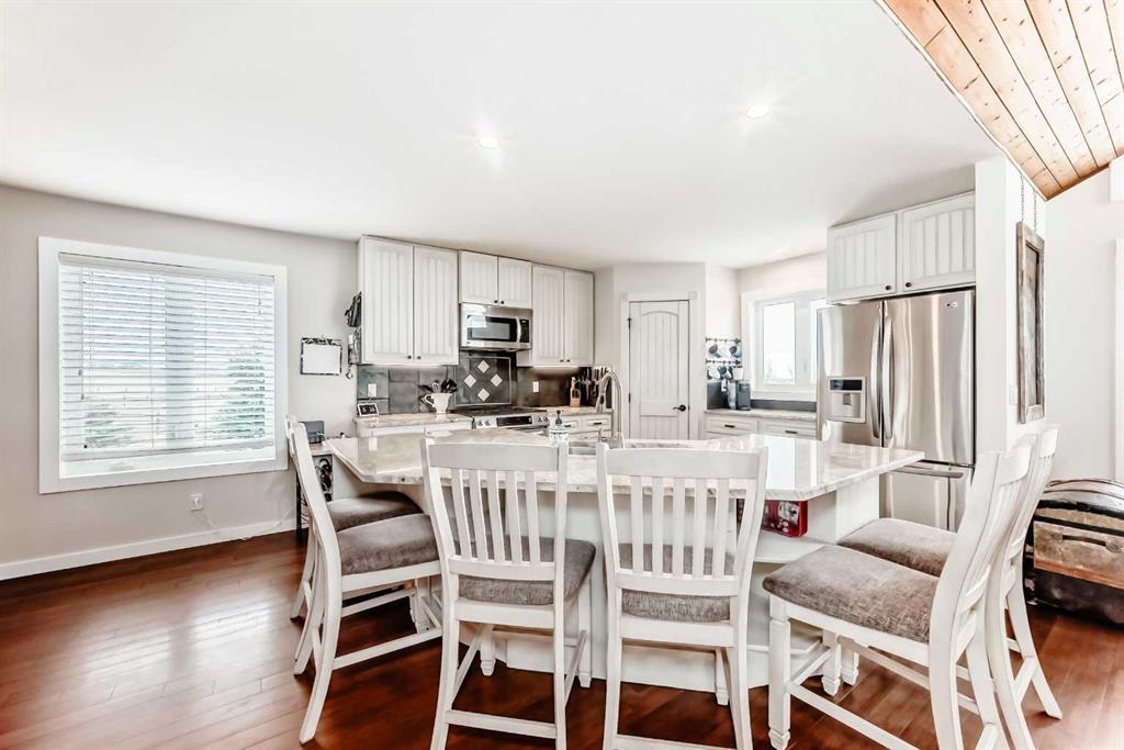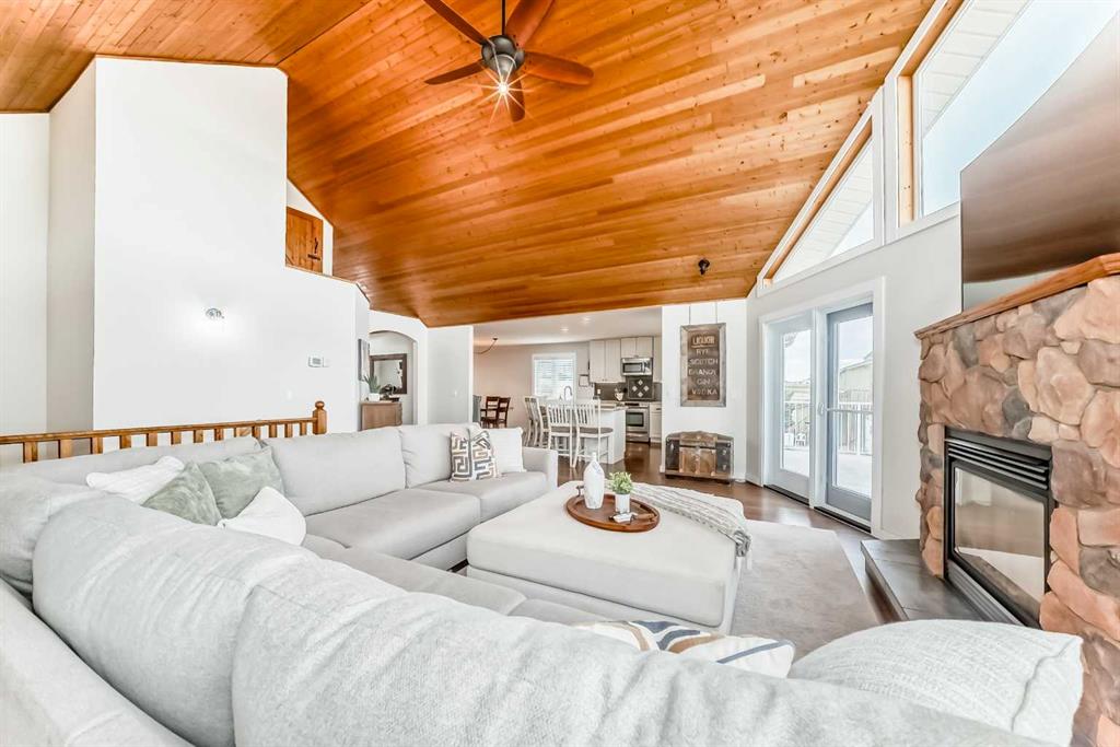 Incredibly well maintained acreage property with fast access to Okotoks and Calgary. Set on 4.3 acres, this home is move in ready. This walkout bungalow is open concept with vaulted ceilings. Main floor features white kitchen with stainless steel appliances, corner pantry and large island. Plenty of room for friends and extended family in the large dining room. The living room offers large windows and has room for even the largest sectional. Primary bedroom also has vaulted ceiling, walkin closet and newly renovated ensuite with dual sinks, and tiled shower. Laundry is tucked away off the ensuite. Two more bedrooms and main bathroom complete the main floor. Basement has additional bedroom, full bathroom and family room. Plenty of space of hobbies in the lofted barn, Currently used as a workshop, it could easily be converted into a 3 stall barn. Upstairs loft has heat and electricity and was used as a teen hangout but would work well as a creative space. Lots of trees have been planted over the years and the spring stream that flows through the back of the property adds more interest to the landscape. Triple garage will fit your F150! RV parking to the south of the house has sani-dump hook up to the septice system. Impressive mechanical system with infloor heating that heats the entire home. Split AC in primary bedroom for those warmer summer nights.