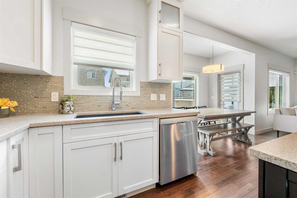 The home you’ve been waiting for in the community everyone wants to be in. Welcome to Aspenshire Estates, where this rare 4-bedrooms-up home is perfectly positioned on a sun-soaked, south-backing lot in one of Calgary’s most desirable westside communities. Walking distance to top-tier schools, Aspen Landing, dining, shopping, and everyday amenities, this is truly a home designed for modern family living. From the moment you enter, you’ll appreciate the thoughtful upgrades and timeless details, including rounded corners throughout, an open-riser staircase, custom built-ins, 9-foot basement ceilings, large basement windows, and an oversized garage. The kitchen is the heart of the home, showcasing stunning full-height white cabinetry, a large pantry, a beautiful central island, and seamless flow into the open-concept dining and living areas, anchored by a striking focal fireplace. A remodeled main-floor office with custom built-in desk space for three makes working or studying from home effortless, while a practical mudroom with added lockers keeps everything organized. The open-riser staircase leads to the upper level, where you’ll find three charming secondary bedrooms, a spacious bonus room with added, wall-anchored cabinetry, and a true primary retreat complete with a walk-in closet and a luxurious five-piece ensuite. The fully developed basement offers incredible versatility with a large 5th bedroom featuring a generous closet, a full bathroom, and a spacious open recreation area. Highlights include a built-in feature wall for TV and entertainment, a custom gym setup with 8mm rubber flooring, custom mirror, and anchored cedar wall beams, plus added wood shelving in the mechanical room for storage. Tucked under the stairs is a dream playhouse—a favorite for kids. Step outside to what may be every child’s dream backyard. A massive 38’ x 20’ poured concrete sport court seamlessly connects to existing stamped concrete and features customized lines for basketball and pickleball. Artificial turf has been added behind the court for low-maintenance play space. The backyard is further enhanced by a custom covered entertainment area, professionally constructed by Suncoast Enclosures using aluminum (anti-rust) framing and specialized panels. This space includes a built-in feature wall ready for a mounted TV with concealed power and a retractable shade for the south-facing exposure. Additional highlights include Gemstone exterior lighting on both levels of the front elevation, a fully finished garage with paint, shelving, sport lockers, and durable wall-panel storage systems (all included), central air conditioning, newer dishwasher, microwave, and hot water tank, and additional lockers added to the mudroom. This is truly where you want to raise your family—surrounded by some of the city’s top schools, close to Westside Recreation Centre, with easy access to Stoney Trail and only 20 minutes to downtown. A rare opportunity to own a thoughtfully upgraded family home.