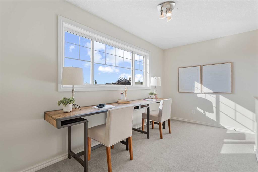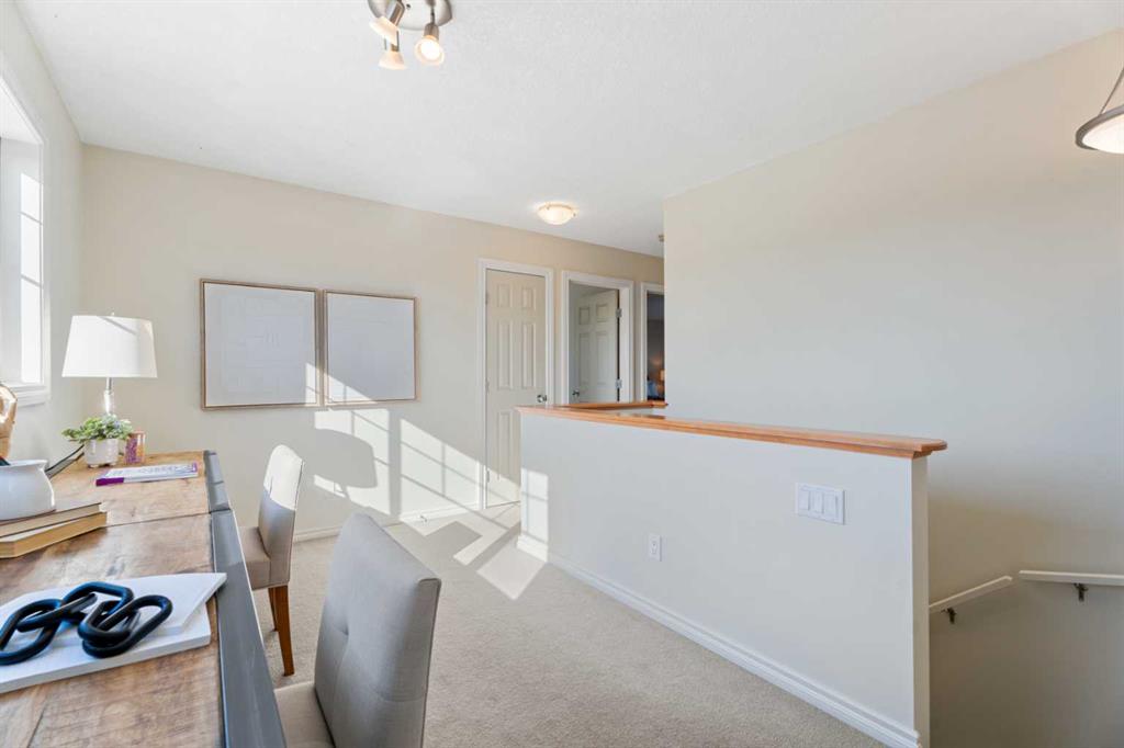 Inside, the home offers an abundance of space and comfort. The main floor features a dedicated office, a laundry room/powder room, and a bright, open kitchen perfect for entertaining. Large windows capture stunning views of north Okotoks and the nearby park and creek bridge. Upstairs are three generous bedrooms, including a primary suite with a 4-piece ensuite, plus another full bathroom. At the top of the stairs, you’ll find a versatile bonus space — perfect for kids to do homework, enjoy quiet reading time, or set up a cozy study nook.