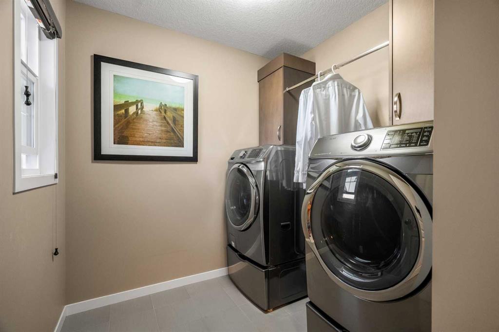 Upstairs, the PRIMARY SUITE offers a true retreat with a SPA-LIKE ENSUITE featuring DUAL SINKS, a WALK-IN CLOSET WITH BUILT-IN SHELVING, a MI-BERRY SPA HOT TUB, and a SEPARATE SHOWER and HEATED TILES. Two additional SPACIOUS BEDROOMS, a FULL BATHROOM, and a VERSATILE BONUS ROOM provide ample space for family and guests. The UPPER-LEVEL LAUNDRY includes CUSTOM CABINETRY and a BUILT-IN DRYING RACK for everyday convenience.