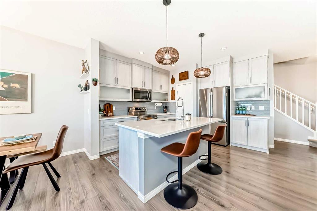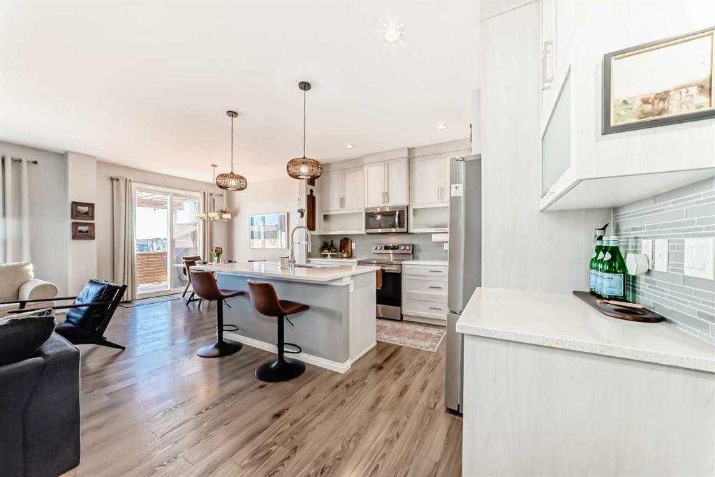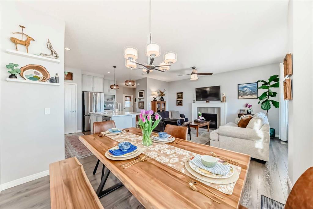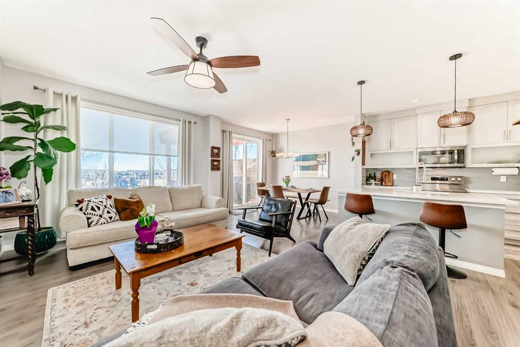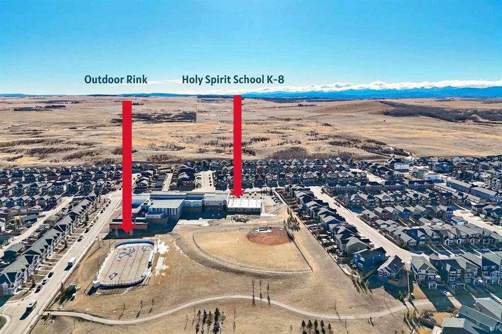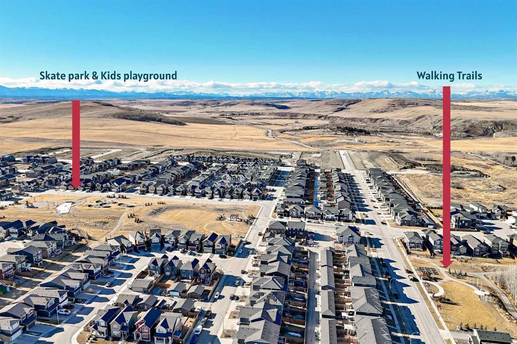 Welcome to this beautifully maintained and extensively upgraded Calbridge-built two-storey in the heart of Fireside — offering direct access to both the public and Catholic K–8 schools right behind the home. For families, this location is exceptional. WATCH OR WALK your children to school in SECONDS and enjoy the convenience of playgrounds, a ball diamond, outdoor rink, skate park, future dog park and scenic forest trails all just steps away. It’s a lifestyle designed around growing families and everyday ease. Inside, the main floor features 9’ ceilings, a stunning 8’ rear window and 8’ patio door that flood the space with natural light, and upgraded kitchen cabinetry extended to the ceiling. The kitchen is beautifully appointed with brand new refrigerator and stove (2025), newer dishwasher, and modern finishes throughout. Hunter Douglas blinds are installed in all windows, and new CENTRAL A/C (2025) ensures year-round comfort. Upstairs, you’ll find three generous bedrooms and a large, cozy bonus room highlighted by a stunning feature wall — the perfect family gathering space. The primary retreat offers a spacious walk-in closet and an impressive 5-piece ensuite designed for comfort and relaxation. Convenient upper-floor laundry with a newer washing machine adds everyday practicality. The professionally finished basement, completed by Calbridge, includes large sunshine windows that create a bright and welcoming lower level, complete with an additional bedroom, full bathroom and spacious recreation area — ideal for guests or teens. Step outside to a thoughtfully designed backyard with two decks, a privacy pergola (2023), and strategically planted trees for added privacy while still enjoying the open space behind. The widened driveway and dedicated bin pad (2025), along with new low-maintenance front landscaping (2025), enhance both function and curb appeal. Located just 5 minutes to shopping, restaurants, daily essentials & Highway 22 for Calgary or mountain access, and only 10 minutes to downtown Cochrane, this home blends quality construction, thoughtful upgrades and unbeatable family convenience. Meticulously cared for and truly move-in ready.