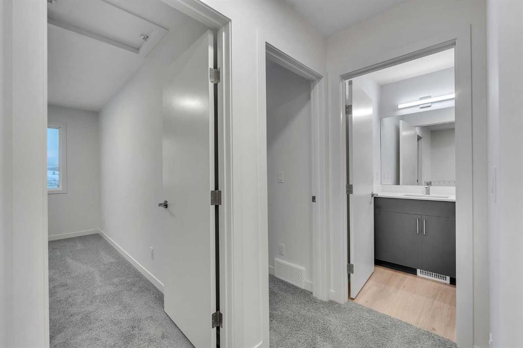 Welcome to the Metro Duplex 18 by award-winning Cantiro Homes, available for immediate possession! This beautifully designed home is located in the scenic hilltop community of West Hawk, Cochrane, and is situated on a desirable lot with a walking path behind the home. Step inside to an inviting slate interior colour palette, luxury vinyl plank floors and airy 9′ ceilings. The bright kitchen offers modern cabinetry, quartz countertops, and sleek stainless steel appliances, and is open to the living room and dining room, perfect for entertaining. A convenient mudroom off the oversized attached single garage offers handy built-ins, and the powder room is nicely tucked away, completing the main floor. The upgraded iron spindle railing leads up the upstairs, and the thoughtfully designed layout maximizes every square foot, offering a comfortable primary bedroom with its own ensuite, an oversized shower, and a walk-in closet. Two additional bedrooms and a convenient upstairs laundry complete this level. The basement has its own SEPARATE ENTRANCE, a basement suite rough-in (a secondary suite would be subject to city/municipality approval and permitting), and is a blank canvas ready for your design ideals. This beautiful townhome comes complete with a finished deck and a spacious yard and is designed to suit a range of homeowners, from first-time buyers or investors to those looking to right-size. A well-balanced home in a growing hilltop community — ready when you are. *RMS on measurements provided by the builder. Taxes have not been assessed.