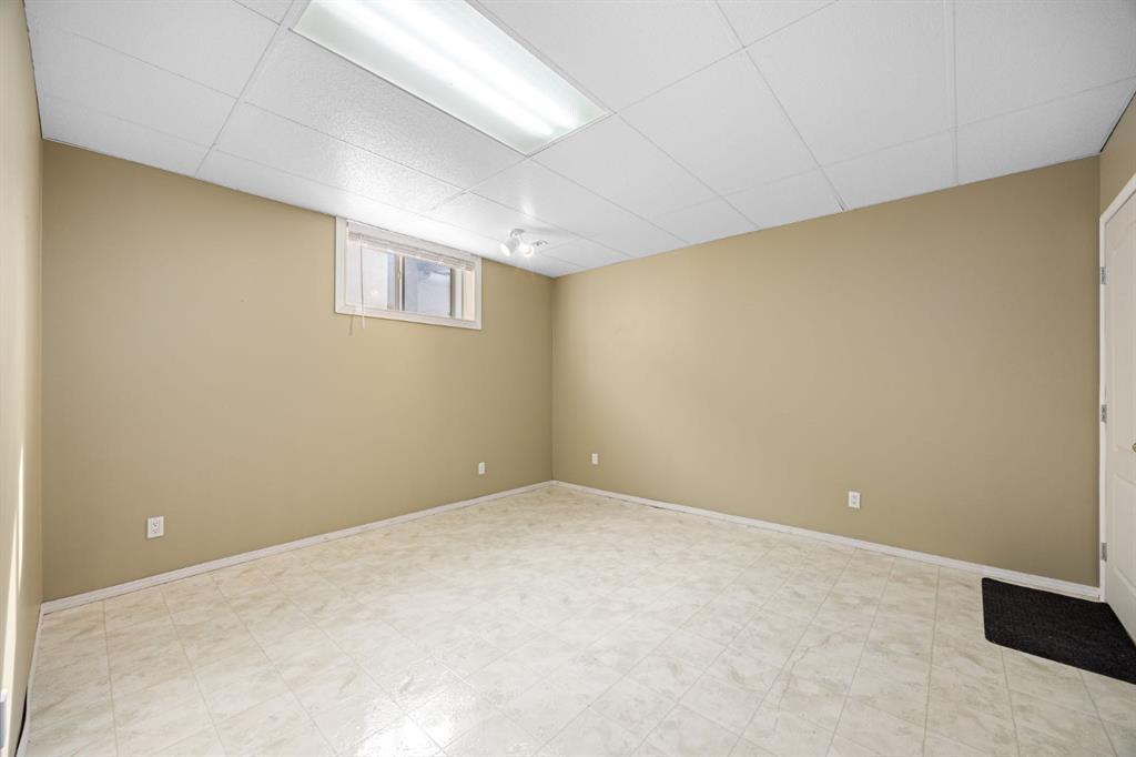 The bright and welcoming lower level extends your living space significantly, featuring tall ceilings and large windows that erase any basement feel. A massive family room provides the ultimate area for relaxation or entertaining, equipped with custom built-ins and a second cozy gas fireplace. This level hosts two additional well-proportioned bedrooms and a full three-piece bathroom, making it ideal for guests or hobbies. From the family room, step directly out to a private, paved covered patio and a treed outdoor area, mirrored by a second private patio on the upper level, ensuring you can enjoy connection with the outdoors regardless of the floor you are on. To top off the exterior appeal, a covered front porch faces west, providing the perfect vantage point to enjoy the evening sun.