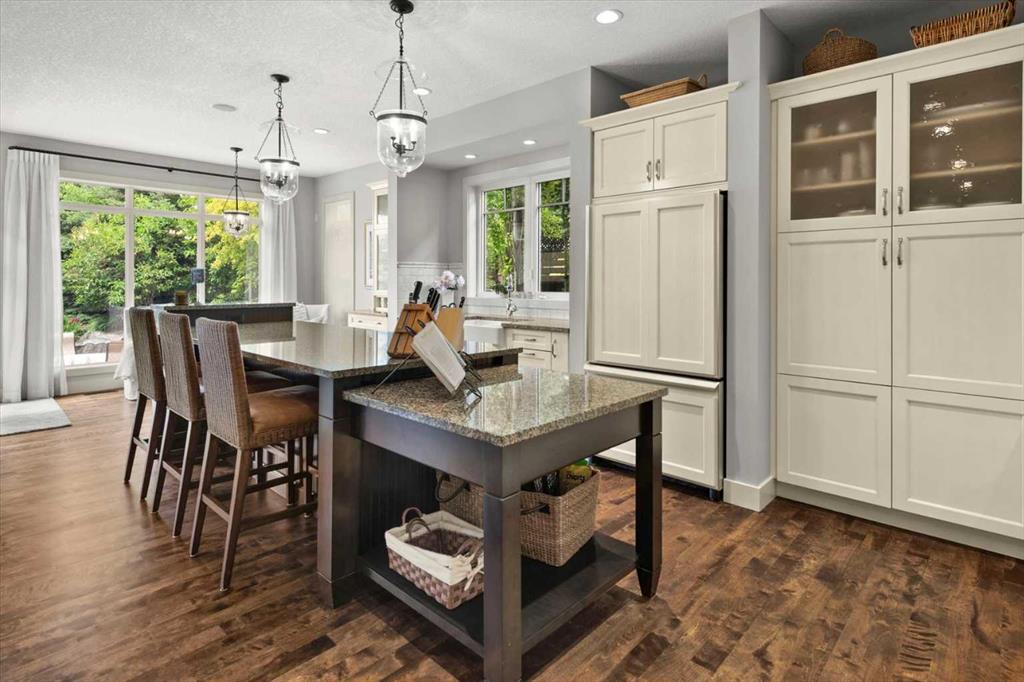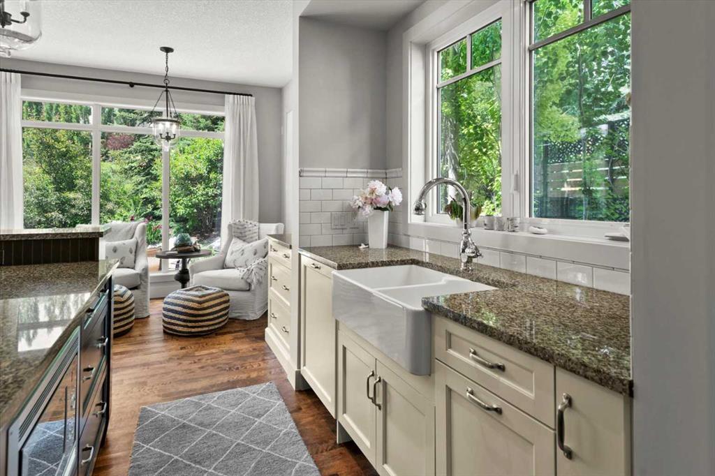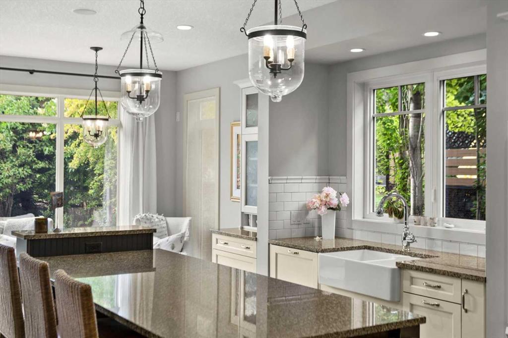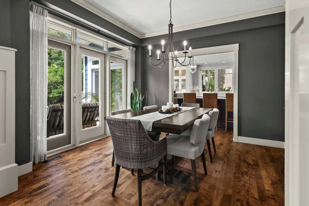 Between the family room and the kitchen, the dining room has direct access to the deck and overlooks the yard – so beautiful the owners use it for everyday dining. Clever pocket doors allow the kitchen to be closed off when entertaining, a thoughtful detail that speaks to how carefully this home was designed.