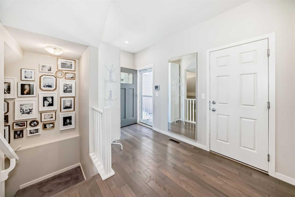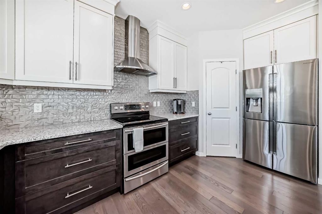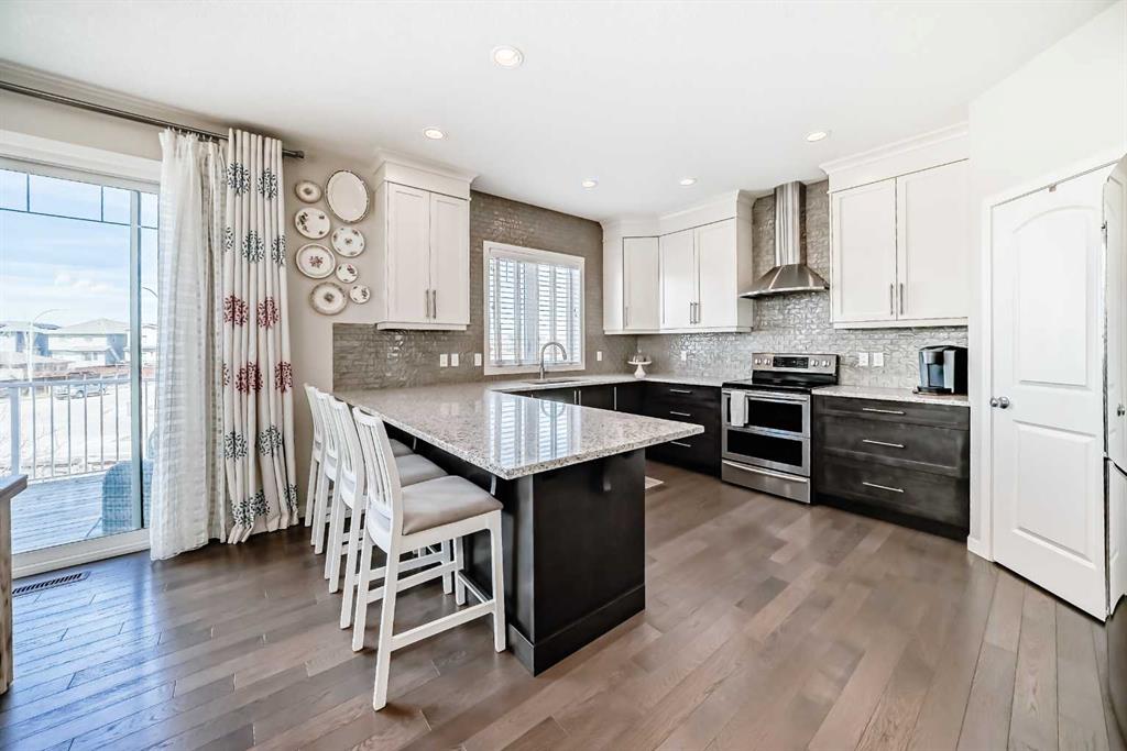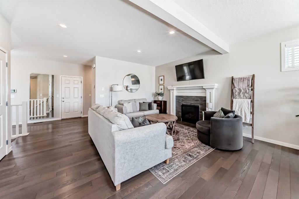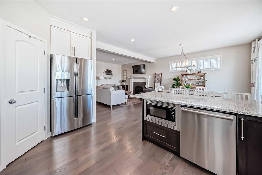 DISCOVER this beautiful 4 Bedroom Home tucked in a quiet cul-de-sac offering over 2600 sq. ft. of exceptional living space in the desirable Walden Community. Entry on the main level offering a bright & functional open concept layout made especially for everyday living. Step inside on hardwood flooring to a spacious living room filled with natural light, an inviting atmosphere of warmth from gas fireplace and 9ft ceilings. Stylish 2pc bath decorated in black & white wallpaper and two spacious coat closets on main level. The dream gourmet kitchen showcasing granite countertops, large island with seating ideal for family life & entertaining; abundance of raised white cabinets upper to ceiling and TWO pantries with ample storage; stainless steel appliances; chimney-style hood fan; and tiled backsplash. Separate Circuit 30AMP/240V on main floor. Also displayed is a generous & bright dining area with patio door to outside 2-tier decks; upper deck enjoying barbecues [gas line to BBQ] & warm evenings with abundant green space seen allowing for unobstructed view & privacy. Steps leading down to the lower wooden deck to fully fenced & landscaped backyard showcasing a fire pit stoned area for those cozy outdoor nights with family & friends. Upper level displays generous central bonus room for family living watching TV, video games, etc. Two additional bedrooms; 4pc bathroom & convenient laundry room with rough-in plumbing for potential sink. Master retreat with walk-in-closet; luxurious spa 5pc bathroom with soaker tub, shower & dual quartz sinks. Professionally finished walk-out basement offers a 4th bedroom, Barn doors leading into a 5th bedroom or office/den; 4pc bathroom; recreational game room & direct access to the backyard. Also has a Heat Recovery (HRV) ventilation system improving air quality & reducing heating costs and managing moisture. Double attached garage provides secure parking and additional storage space. Upgrades include the installation of new hot water tank in 2021, Air Conditioning in 2023, New Garage Door Springs in 2026 and New Smoke Detectors in 2026. Prime location close to schools, parks, golf course, shopping centers, transit, walking paths, Walden Pond and South Health Campus. Fantastic neighborhood that offers space, comfort & amazing entertaining features inside and out. “A MUST SEE!! THIS IS THE ONE ‘YOU WILL CALL HOME!!”