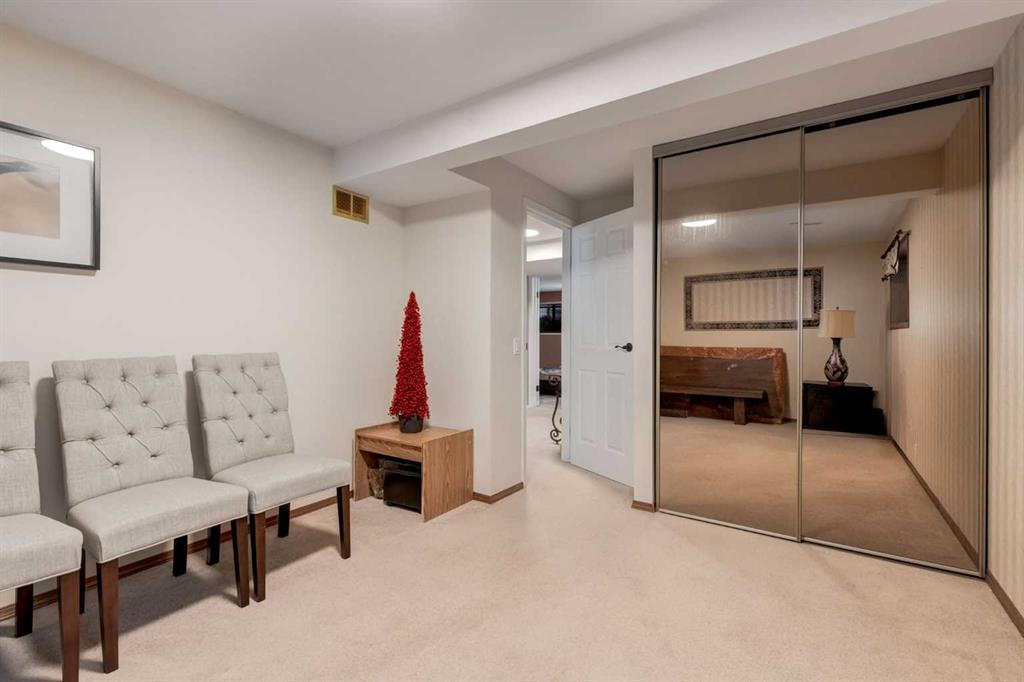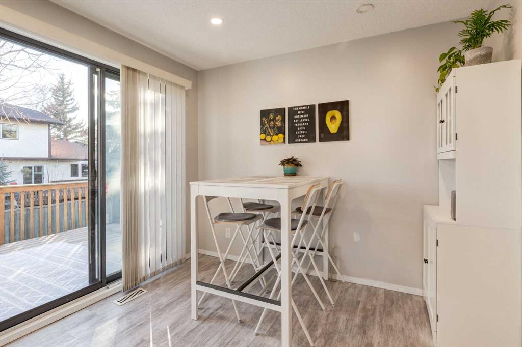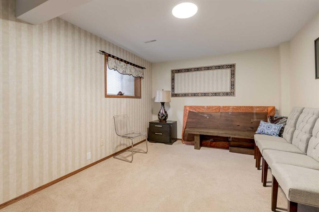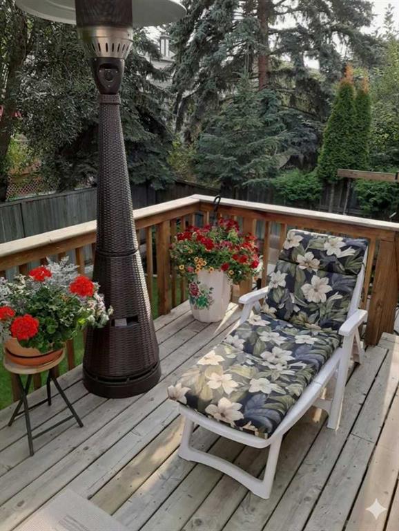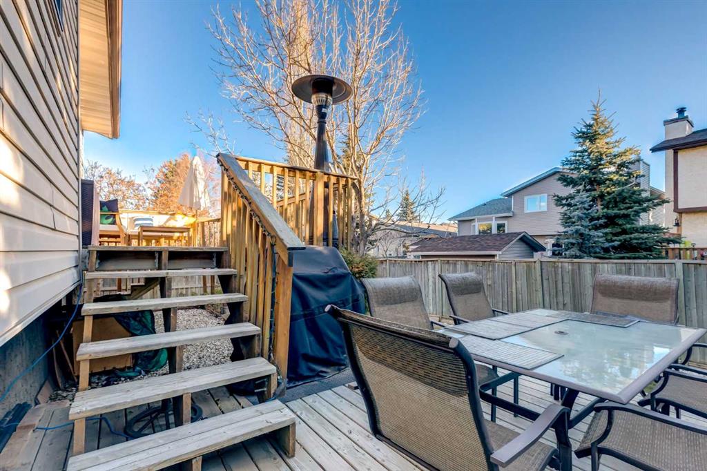 A large portion of this home was renovated in 2023, and it’s a genuinely functional family home in a location that’s hard to beat. You’re minutes to Fish Creek Park, Safeway, Costco, and there’s a daycare just down the street. Add rare RV parking, an EV charger, and an oversized garage, and you’ve got everyday practicality covered. The real highlight is the backyard. With two oversized outdoor spaces, a large upper deck and a separate patio, you get multiple zones for entertaining, kids playing, or quiet evenings outside. There’s also tons of green space, mature trees, and a fully fenced, south facing yard that stays bright and usable all day. Inside, vaulted living room ceilings and big windows bring in great natural light, with a stone surround fireplace anchoring the space. The kitchen features quartz countertops, stainless steel appliances, ample cabinetry, and an eating nook that opens to the deck for easy indoor outdoor flow. Upstairs you’ll find three bedrooms, all a great size for kids and guests. The basement is developed and adds even more flexibility with a fourth bedroom and a large entertainment room, complete with a 110 inch screen and 4K projector (available by separate agreement). The basement also has a roughed in bathroom, offering an opportunity to add a finished bath.