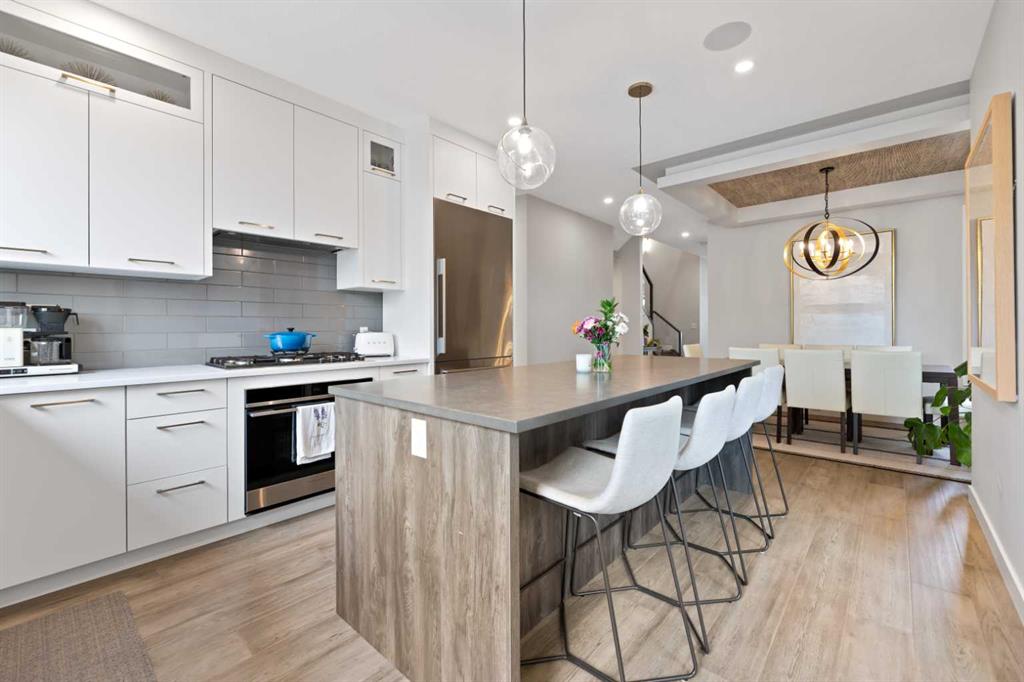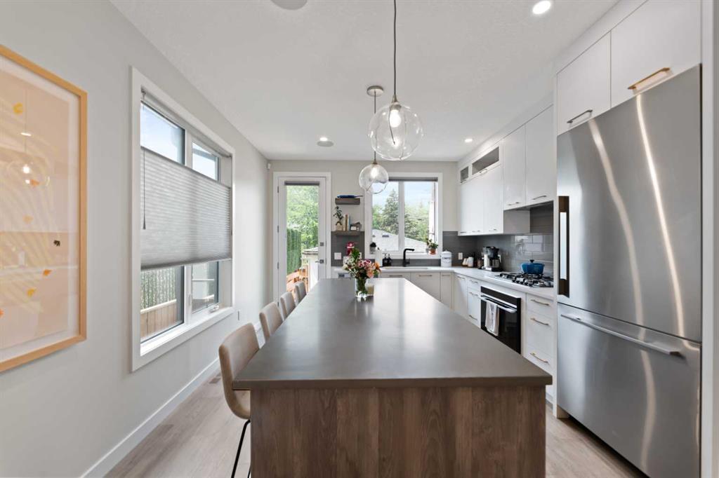 Welcome to this Luxurious home in the sought after community of Glenbrook. With over 2900 of developed square feet, this beautiful home features a cozy living room with a gas fireplace and lots of Natural light. Next you’ll find an office that is perfect for working from home plus a drop ceiling in the dining area next to the chic kitchen with oversized island and high-end Fisher & Paykel appliances. The upper floor features 7-inch manufactured oak hardwood, a large master bedroom including a 5 piece ensuite with his and her sinks, 2 additional bedrooms both with walk-in closets and a bright sitting bonus room and laundry room with sink. Downstairs features a family room, wet bar, gym and a nice size bedroom and full 3 piece bath! This west-facing backyard has a private deck and double-parking garage. This home is loaded with upgrades including Air Conditioning, high ceilings and 8 ft doors. Walking distance to parks, schools, shopping & only minutes to downtown. Call to book your private showing today!