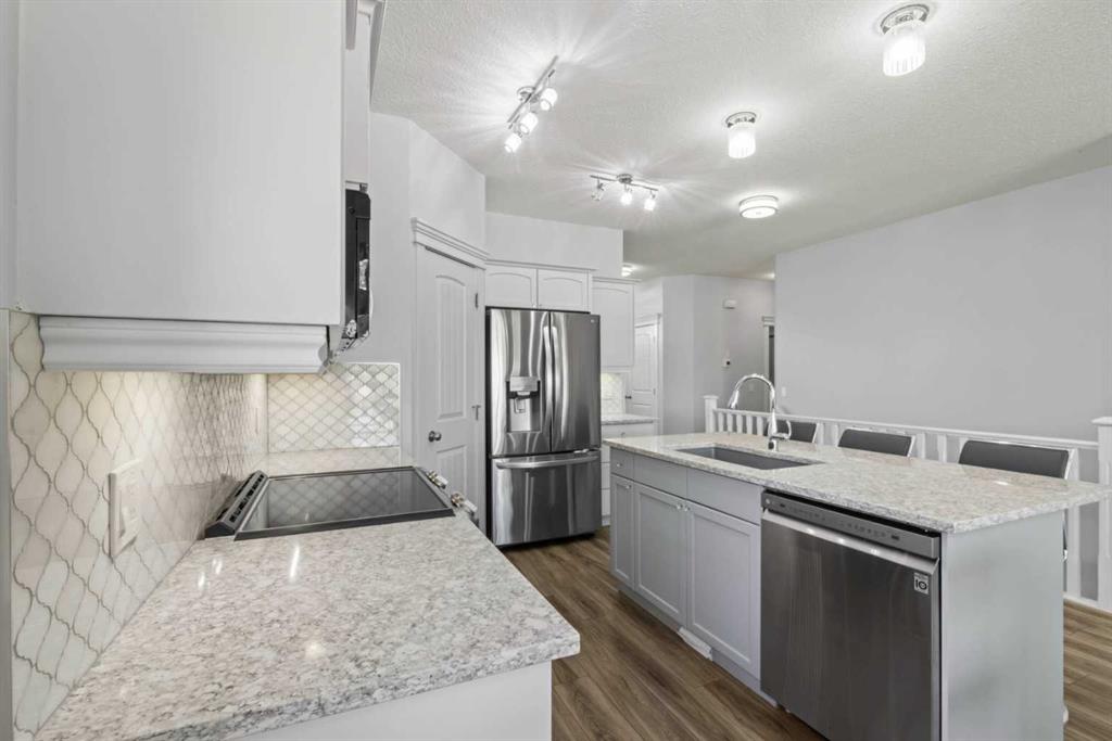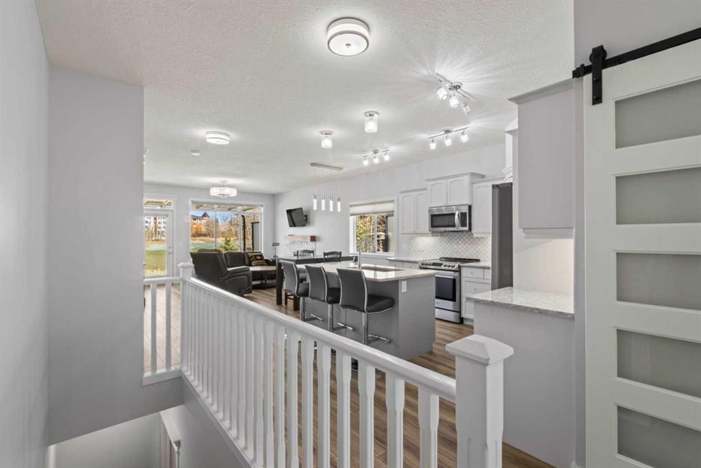 This is truly a rare find! Fully developed executive villa in exceptional location, backing west with breathtaking views of Crystal Ridge Golf Course. Enjoy morning coffee from you balcony surrounded by nature and trees, with deer and birds as you guests. Crystal Ridge Lake Community offers lake privileges including beach area, beautiful lake for boating, swimming, skating, and a beach house, ideal for special events and socializing. This home has had updates and upgrades throughout including: kitchen, bathrooms, flooring, woodwork, appliances, fixtures and much more. Walk in to an open floor plan that exuding class and quality with 2,540 sq. ft. of living space. Bright white kitchen features expansive island/breakfast bar, an abundance of cupboard and counter space, quartz counters, and 2 oversize pantries. Adjoining open dining area and great room features attractive gas fireplace and garden door to large back deck with awning, updated composite flooring, and glass privacy walls. Primary bedroom offers a stunning 5 piece ensuite with soaker tub and separate shower. The main floor den is ideal for home office, or flex room. The main floor 2-piece powder room and laundry mud room has inside access to the double attached heated garage. The lower walkout level is fully developed featuring two large bedrooms, an elegant 5-piece bathroom with massive double steam shower and soaker tub, as well as very spacious family/games room with tile flooring and patio doors to the back yard. Additional features include in-floor heat in basement, central A/C, updated window treatments, garage heater, and water softener. This is a quiet quiet neighborhood with lawn care, snow removal and sprinkler maintenance provided for easy stress-free living. Crystal Ridge Golf course is a public 9-hole course offering league golf, mini golf, clubhouse, lounge, and a superb fine dining restaurant. Don’t miss out on this terrific opportunity to enjoy stress-free living in this exclusive lake/golf course community.