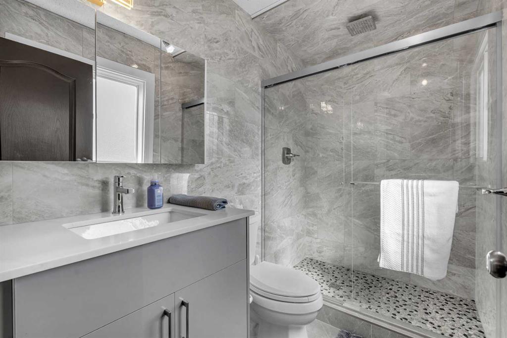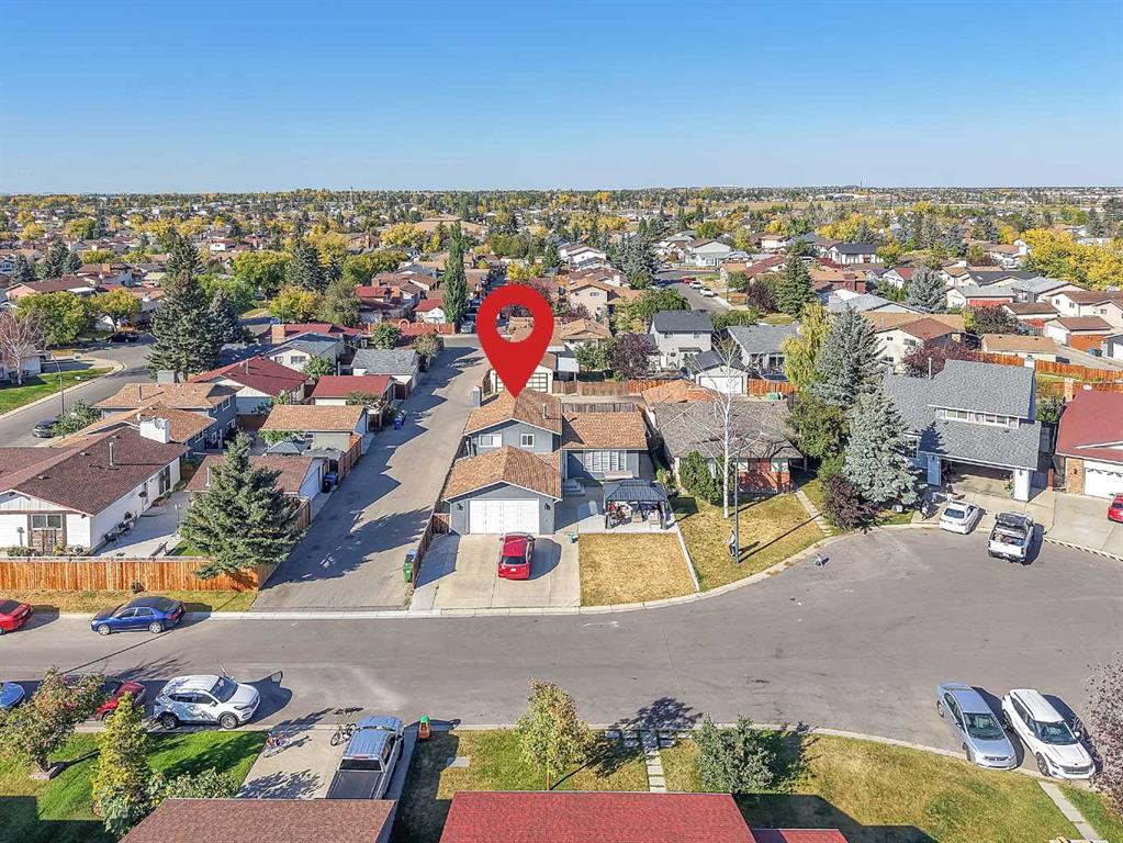 FULLY RENOVATED | LARGE 4 LEVEL SPLIT | QUIET CUL-DE-SAC | MASSIVE 6544 SQFT LOT | ATTACHED GARAGE WITH MUD ROOM | ALL NEW MECHANICALS INCLUDING FURNACE, TANKLESS HOT WATER, WATER SOFTENER AND AIR CONDITIONING | WALKOUT 3rd LEVEL | This home impresses from the start with a double attached garage, extended driveway and a welcoming front patio that captures the south sunshine. Too many upgrades to list including windows and a patio door with built-in blinds. Step inside to a neutral palette where a spacious living room is framed by oversized south windows and recessed lighting for bright, comfortable living day and night. Sightlines flow seamlessly into the dining area with elegant lighting and a built-in storage and serving bar that enhances both everyday function and entertaining. The beautifully updated kitchen inspires culinary adventures with crisp white cabinetry, full-height tile backsplash, stainless steel appliances including a gas stove and plenty of room for a table for casual meals and morning coffees. On the lower level, a massive family room invites gatherings around the fireplace with a walkout that connects indoor comfort with backyard living. A convenient powder room and access to the attached garage complete this level. Upstairs, retreat to a relaxing primary suite where a stylish ensuite boasts an oversized rain shower. Two additional bedrooms are spacious and bright, complemented by an updated 4 pc bathroom finished with full-height tile. The fully developed basement extends the home’s versatility with a large rec room easily divided by furniture into zones for work, play or fitness. A stunning bathroom here showcases dual sinks, a large rain shower, bench seating and designer tile detailing. Plenty of room to add an extra bedroom or two. Outside, enjoy a covered patio perfect for barbeques or shaded relaxation plus an expansive lawn with endless room for kids and pets to play. A storage shed keeps seasonal items organized. All set in a family friendly cul-de-sac close to Guy Weadick School, Annie Foote School and Lester B. Pearson High School. Walk to the community centre, sports courts, skating rink, exercise park and pathways or take a short 5 minute drive to the popular Village Square Leisure Centre with wave pool, gym, arena and library. Blending modern upgrades with an outstanding location, this home offers space, comfort and everyday convenience for the whole family!