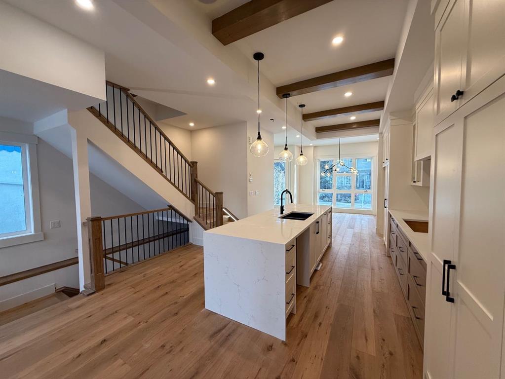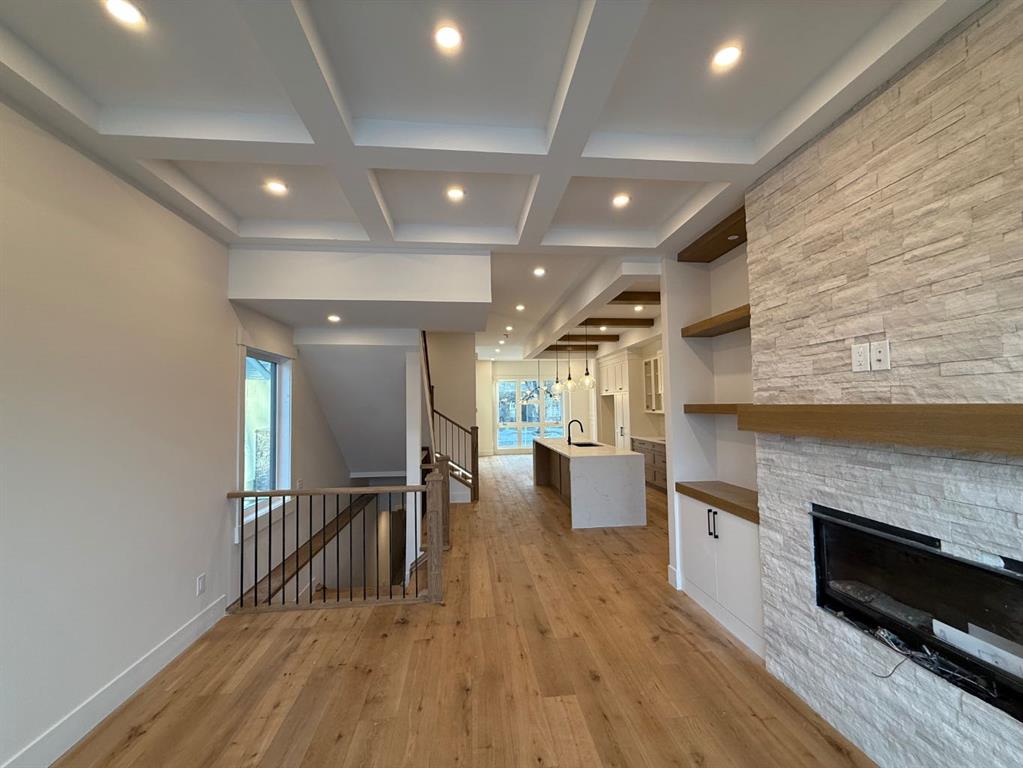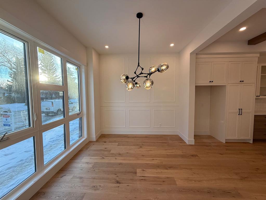 **JOIN US AT OUR OPEN HOUSE SAT. & SUN, 12-2 PM.** Timeless design, modern comfort, and everyday function come together on a quiet tree-lined street in this stunning new home in GLENBROOK. With expansive windows, warm natural materials, & elevated finishes throughout, it’s crafted for family living in one of Calgary’s most established neighbourhoods. Step in from the covered entry to a bright foyer with sight lines across the open main floor, where light oak hardwood carries seamlessly through the principal rooms. The front dining room is anchored by a custom feature wall, setting the tone for the thoughtful millwork found throughout. An elevated powder room greets you upon entering & provides privacy & convenience through a hidden door.