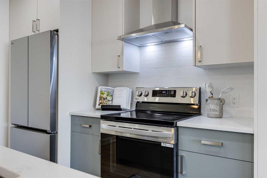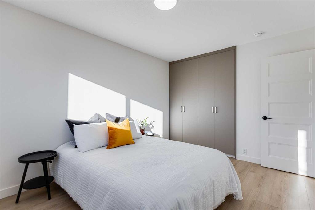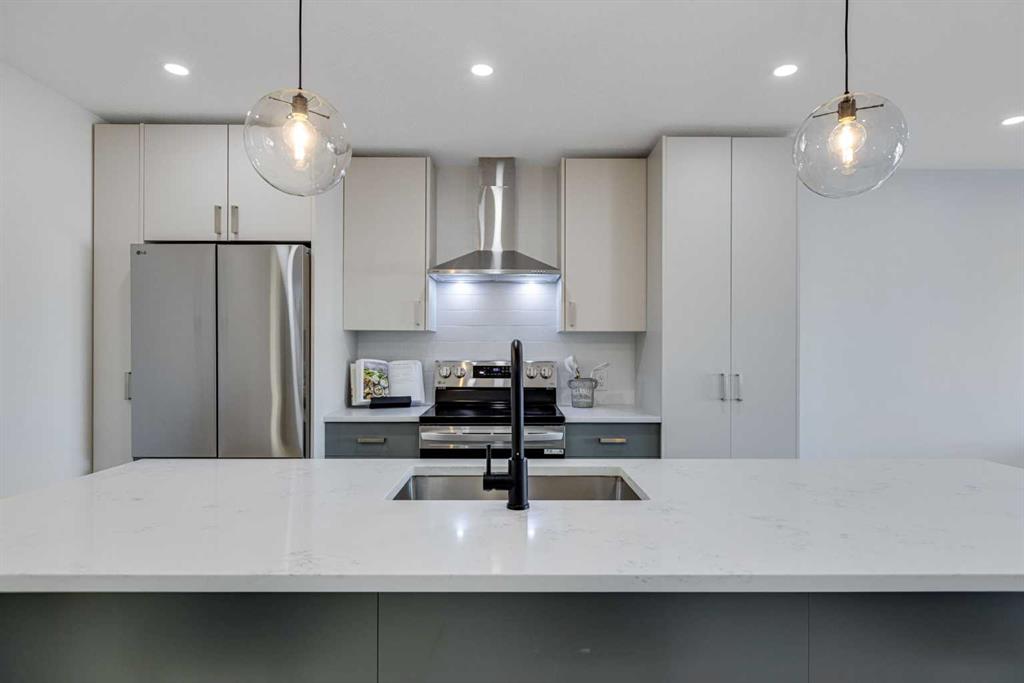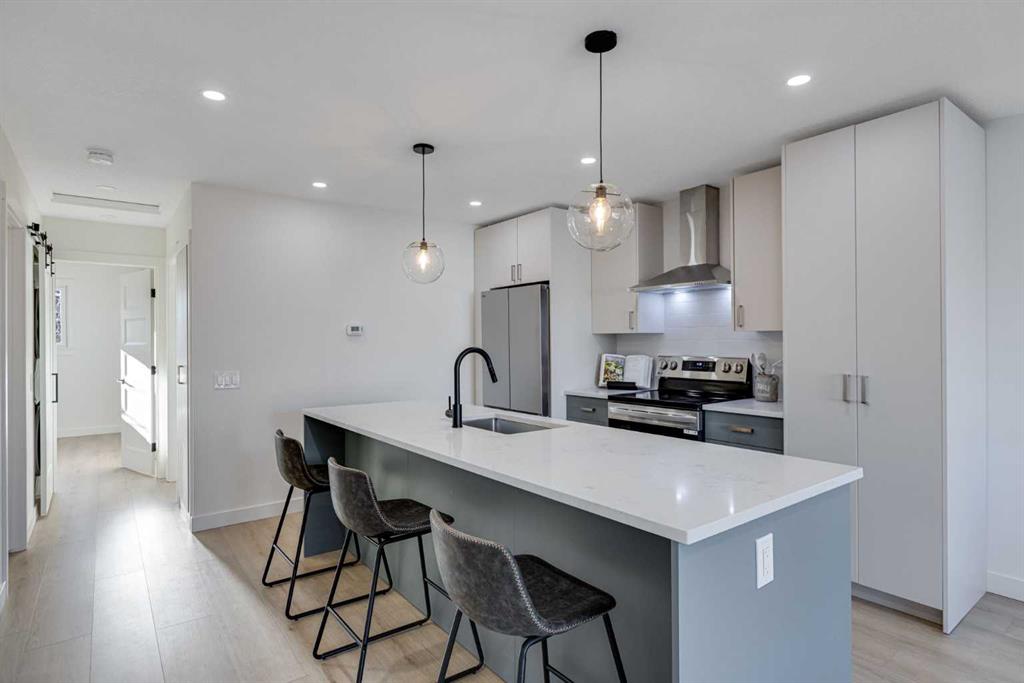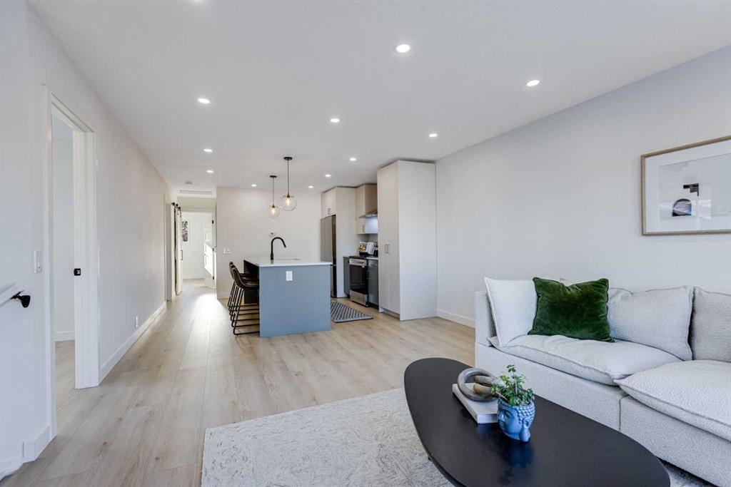 The main level is bright and welcoming, designed with an open-concept living, dining and eating area enhanced by high quality interior finishes throughout. Featuring luxury vinyl plank flooring, updated lighting, functional kitchen with modern cabinetry, brand new appliances and a generous kitchen island with the ability to have 4 or 5 bar stools allows this space to balance style with everyday practicality. Two generous-sized bedrooms, upstairs laundry and an additional bedroom/office/den, complete the upper level, offering comfort and flexibility for family living or work-from-home needs.