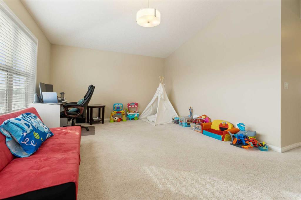 Upstairs, you’ll find a spacious primary retreat with a walk-in closet and a private ensuite featuring a luxurious corner soaker tub. Two additional generously sized bedrooms and a stunning bonus room with high vaulted ceilings create an impressive and airy upper-level living space. The convenience of upstairs laundry adds everyday practicality for the entire family.