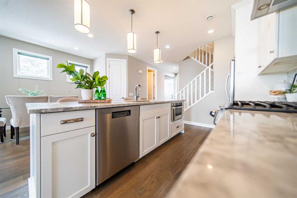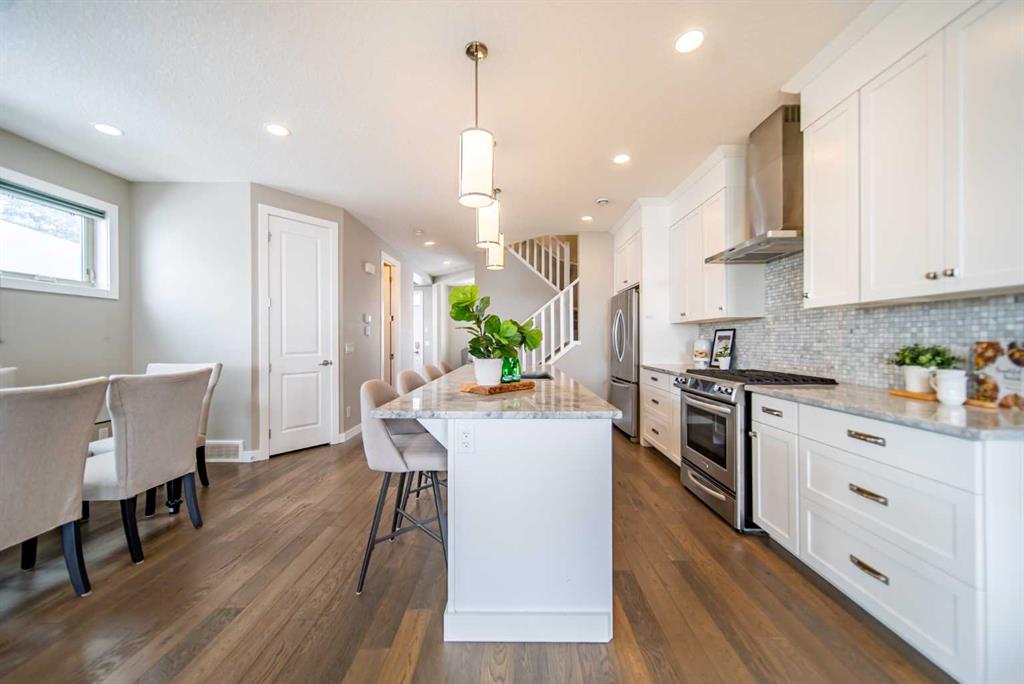 Welcome to this beautifully designed Cardel home in the heart of Glenbrook, one of Calgary’s most charming and established communities. With its mature tree-lined streets, easy access to parks, schools, shopping, and quick downtown routes, Glenbrook offers a vibrant, convenient lifestyle where neighbours genuinely connect, appealing to families and professionals alike. This is not an everyday infill, this property reflects thoughtful design, quality construction, & a floor plan that truly works for real life. From curb appeal to interior finishes, you can feel the difference. As you step inside, you’re welcomed by a generous foyer with a spacious front closet that sets a warm, organized tone for the rest of the home. Just off the entrance, a bright front room overlooks the lovely tree-lined street, making it an ideal home office, reading room, or creative studio. The heart of the home is the sun-drenched open concept kitchen, dining, & living area. Large windows flood the space with natural light, creating an inviting atmosphere for both everyday living & entertaining. The kitchen offers abundant cabinetry & generous prep space, giving home cooks room to spread out while still feeling connected to guests or family in the adjoining dining & living areas. Upstairs, the thoughtfully planned upper level is designed for comfort & practicality. A well sized laundry room keeps the chore zone conveniently close to the bedrooms. Two secondary bedrooms offer great space for kids, guests, or a second office, while the stunning primary retreat anchors the floor. The primary suite features dual closets & a luxurious five piece ensuite with double vanities, a relaxing soaker tub, & a separate glass shower, creating a private, spa like escape to start & end your day. The fully developed basement, you’ll find a comfortable guest bedroom & full bathroom, ideal for guests. A large recreation area offers endless possibilities. With the basement already roughed in for a wet bar, you have the option to further elevate the space. Outside, the backyard is designed for maximum enjoyment with minimal upkeep. You’ll appreciate sun throughout the day, a cozy sitting area perfect for morning coffee or evening drinks, and low-maintenance turf grass. Practical upgrades complete the picture. Central air conditioning keeps the home comfortable through Calgary’s warmer months, while the tankless water heater helps provide efficient, on-demand hot water. A front irrigation system helps maintain the exterior with ease, & the large double garage offers secure parking for two vehicles along with ample room for bikes, tools, & seasonal gear. From sunrise in the east yard to cozy evenings in the living room, every inch of this Cardel built Glenbrook home has been designed to make daily life feel just a little more exceptional.