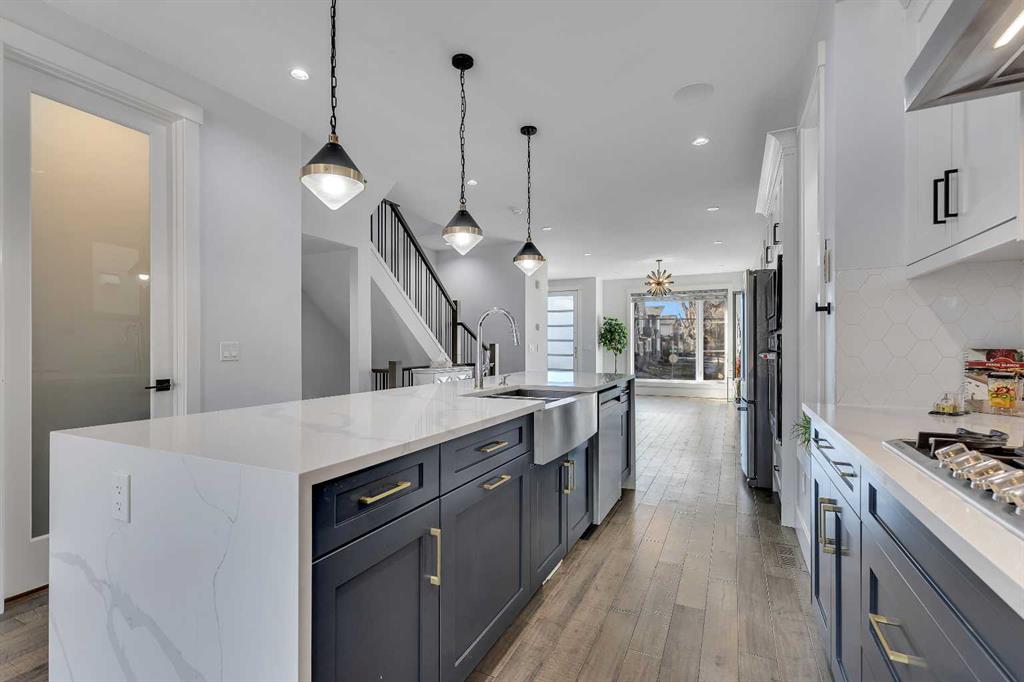 Welcome to this beautifully designed single-family home in the desirable community of Highland Park in northwest Calgary. Ideally situated close to parks, schools, shopping, and transit, this home offers the perfect blend of comfort and convenience. Its central location allows quick access to downtown Calgary, the airport, and nearby institutions such as the University of Calgary and the Southern Alberta Institute of Technology, making it an excellent choice for families and professionals alike. From the moment you arrive, the thoughtful design and quality craftsmanship throughout the home create a warm and welcoming atmosphere. Step inside and you’ll immediately notice the bright, open layout highlighted by 9-foot ceilings on all three levels and elegant wide plank engineered hardwood flooring. The main floor is designed with both everyday living and entertaining in mind. At the center of the space is a stunning gourmet kitchen featuring an impressive 10+ foot island, high-end finishes, and custom cabinetry that provides both style and functionality. The spacious living area flows seamlessly from the kitchen and is anchored by a beautiful gas fireplace, creating a comfortable setting for relaxing evenings or hosting guests. Large windows allow natural light to pour in, enhancing the home’s inviting and modern feel. The second floor offers a well-planned layout that provides both privacy and comfort. The primary bedroom serves as a peaceful retreat with a generous walk-in closet and a spectacular ensuite bathroom complete with heated floors, offering a spa-like experience right at home. Two additional spacious bedrooms provide flexible space for children, guests, or a home office. A modern four-piece bathroom and a conveniently located upper-level laundry room add to the practicality of this level, making daily routines easier and more efficient. The fully finished basement expands the home’s living space and offers endless possibilities for entertainment and relaxation. A large recreation room provides the perfect setting for movie nights, gatherings, or family activities, while the custom walk-up bar adds a stylish feature ideal for entertaining. The lower level also includes a spacious bedroom with a large closet and a beautifully designed bathroom that feels like a private getaway. Outside, you’ll find a spacious maintenance-free backyard perfect for enjoying Calgary’s warmer months, along with a double detached garage that adds both convenience and storage. With high-end tiles, custom cabinetry, and carefully selected finishes throughout, this exceptional home combines luxury, comfort, and location in one remarkable property. Don’t miss the opportunity to own this stunning home in Highland Park.