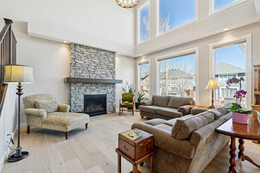 This stunning “Savona” floor plan welcomes you with a spacious dropped foyer with built-ins, leading into a bright and open main floor designed for both everyday living and elevated entertaining. The gourmet kitchen is the heart of the home, featuring designer cabinetry, granite countertops, a large central island, upgraded appliances, and a walk-through pantry—seamlessly connecting to an elegant dining area and a breathtaking great room with soaring two-storey ceilings, expansive windows, and a statement stone fireplace. A main floor den adds flexibility for work or quiet retreat.