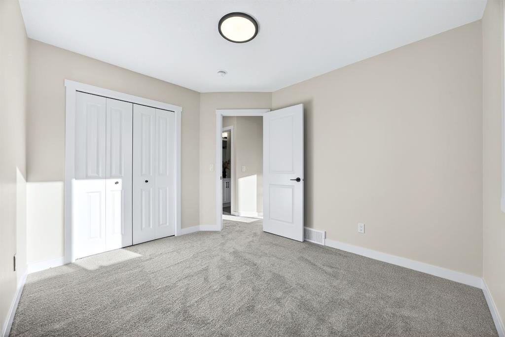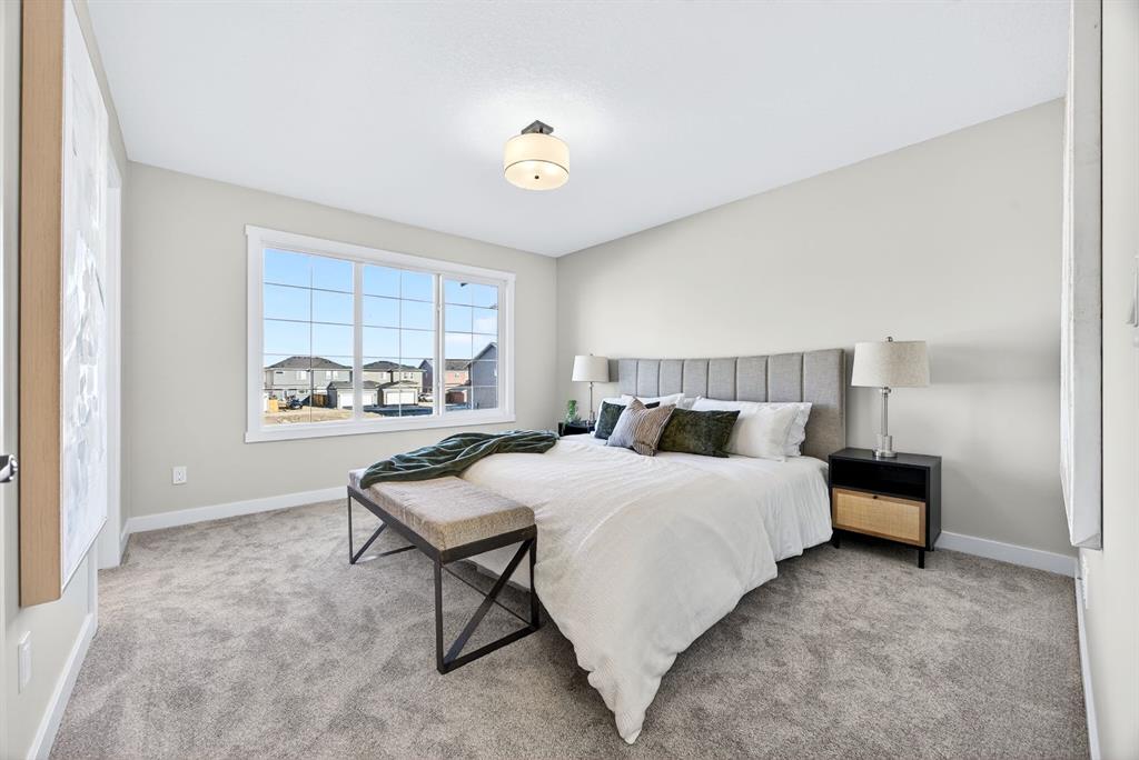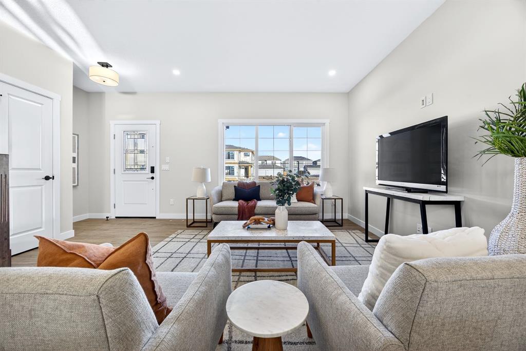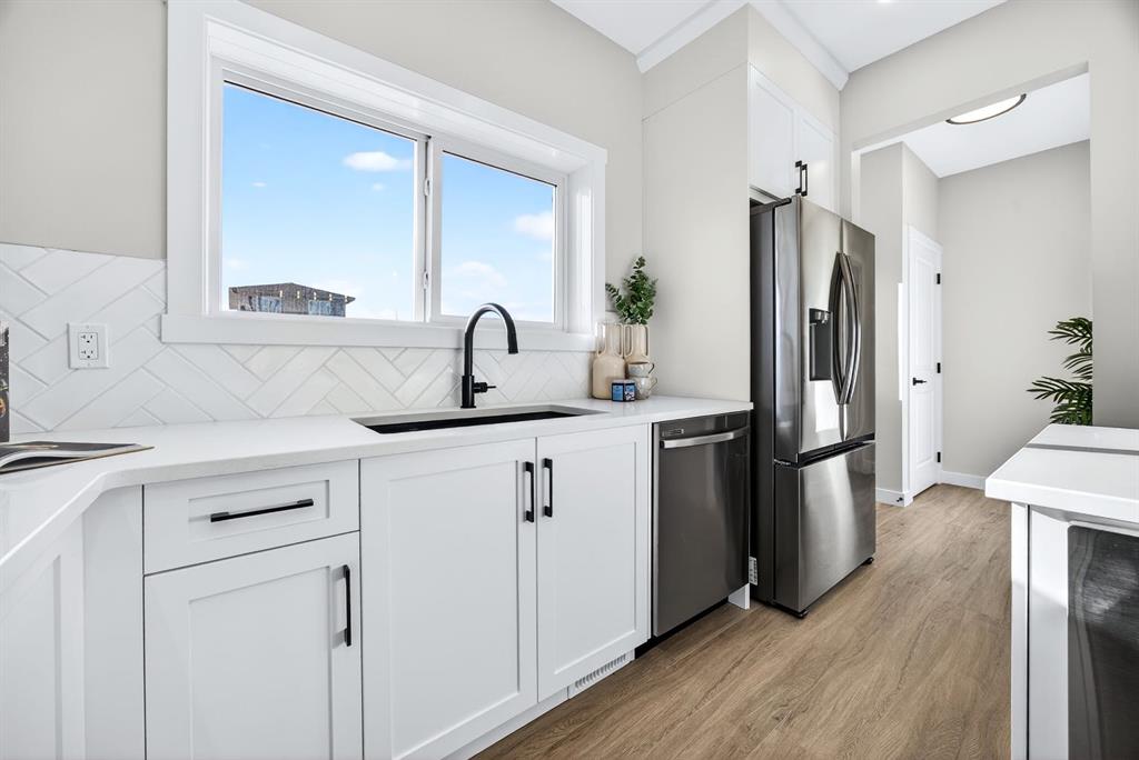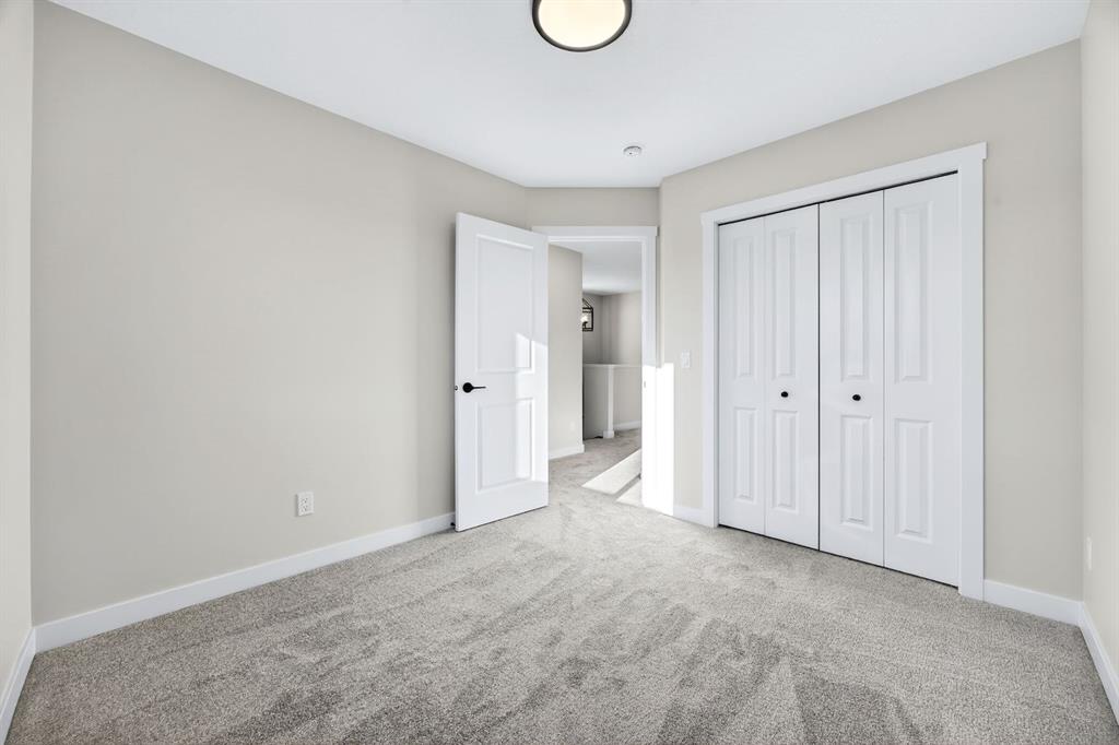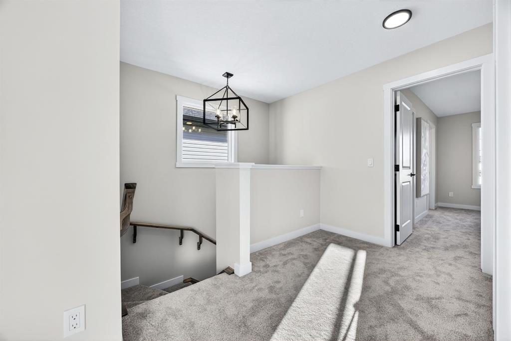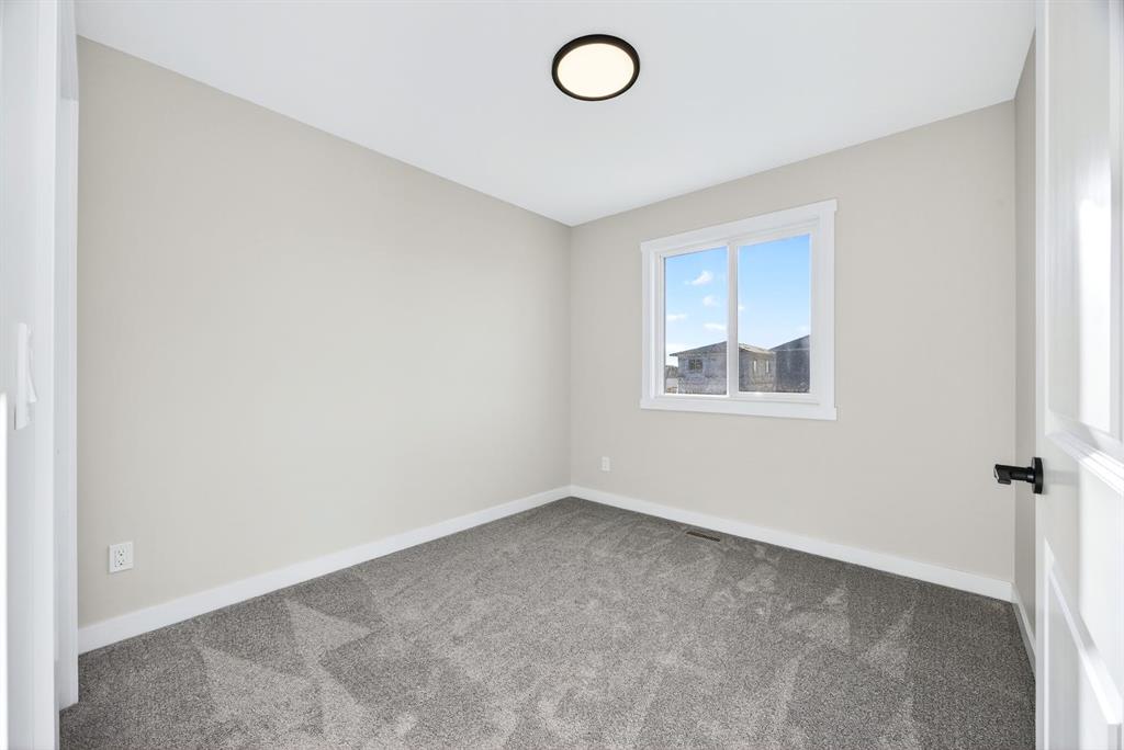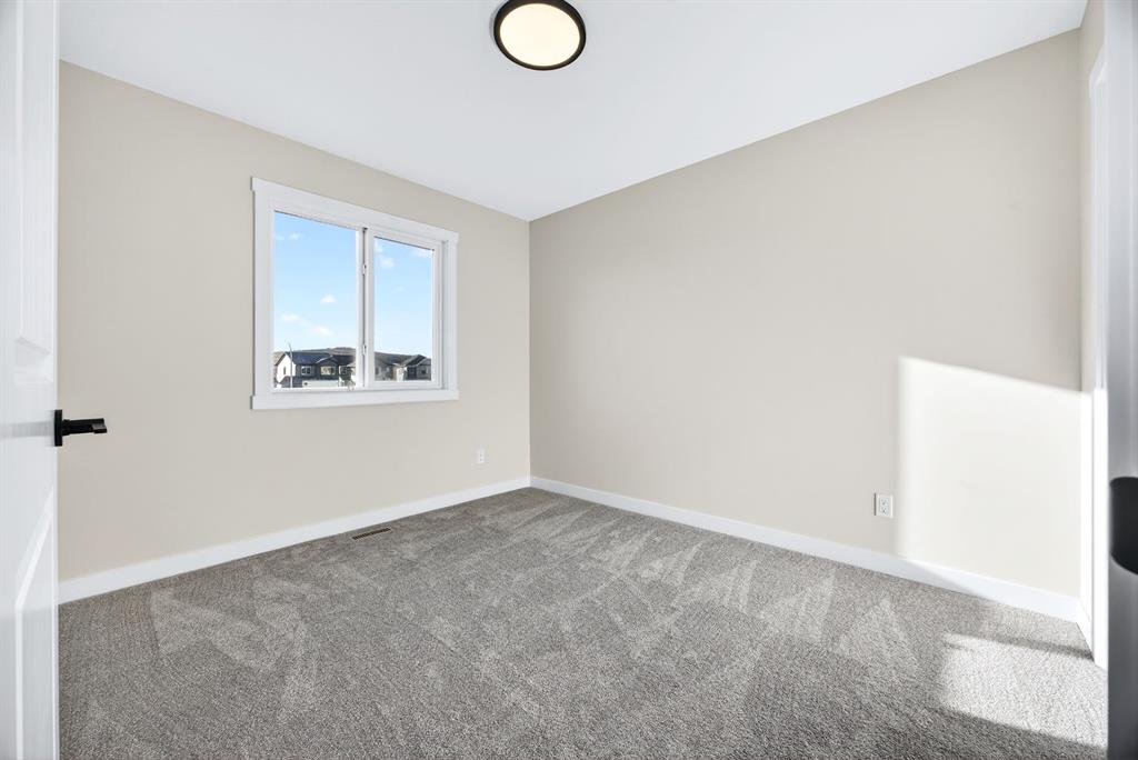 Welcome to this stunning, brand-new Genesis Builders duplex. The “Oscar” offers modern design, functional living, and exceptional future potential with basement suite rough-ins “legal suite subject to approval and permitting by the city/municipality”, all complemented by a warm, inviting colour palette that creates a welcoming atmosphere throughout the home. Featuring 3 bedrooms and 2.5 bathrooms, this home is thoughtfully crafted and offers over 1400 sq ft. The main floor showcases a bright, sun-filled floorplan with 9′ ceilings and a seamless open-concept layout, connecting the spacious living room, central dining area, and stylish kitchen. The kitchen is beautifully appointed with quartz countertops, two-toned cabinetry, a large central island, and a sleek stainless steel appliance package, complete with a gas line to the range. A convenient powder room completes the main level. Upstairs, the primary suite is a private retreat featuring a generous walk-in closet and a spa-inspired ensuite with his-and-hers sinks and an oversized shower. Two additional well-sized bedrooms, a full bathroom, and convenient upper-floor laundry complete the second level. The unfinished basement offers incredible flexibility with 9′ ceilings, a separate SIDE ENTRANCE, and BASEMENT SUITE ROUGH INs, making it ideal for additional living space or future income potential. Outside, the backyard is a blank canvas, ready for your personal touch and offering the opportunity to build your dream garage. Located in the vibrant and family-friendly community of Fireside, this home offers the perfect balance of small-town charm and modern convenience. Fireside is known for its extensive pathway system, parks, playgrounds, and green spaces, ideal for walking, biking, and outdoor enjoyment. Residents love the easy access to schools, shops, restaurants, and everyday amenities, all just minutes away. With quick access to Highway 22 and Highway 1, commuting to Calgary or heading west to the mountains is effortless. *Taxes have not been assessed. Photos are representative of the same model. This property’s colour palette is included in the pictures. RMS has been applied to the builder’s construction drawings.