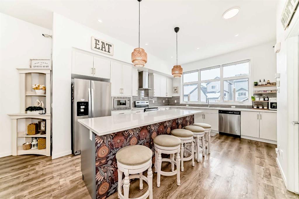 Welcome to 355 Masters Row SE, with a total living space of 2368.8 ft, a beautifully designed home in the sought-after lake community of Mahogany. This stylish and functional property offers an open-concept layout with modern finishes, as you step inside to a spacious foyer you are greeted with by a bright 10 foot ceiling living, dining flooded with natural lights coming from two large windows a spacious kitchen featuring stainless steel appliances, quarts counter tops and a large island great for family gatherings, a full height crisp white cabinetry and a good size pantry. A stylish powder room and a functional mudroom finishes the main floor. Upstairs you’ll find generously sized primary bedroom with good size walk in closet and a full bath with double vanity. Two generous bedrooms and a shared full bath are conveniently next to each other. The basement offers a unique feature as you come down the stairs you will find a mini living room dining and sink with counter tops. It also comes with its own refrigerator and washer dryer. It also offers a great size fourth bedroom and a full bathroom. Enjoy outdoor living with a fully fenced and low maintenance back yard. There are also two gravel parking spaces outside the backyard. Easy access to parks, pathways, schools, shopping, and exclusive lake amenities. Plus, a convenient bus stop is just steps away. making daily commuting a breeze. A perfect blend of comfort, convenience, and community living.