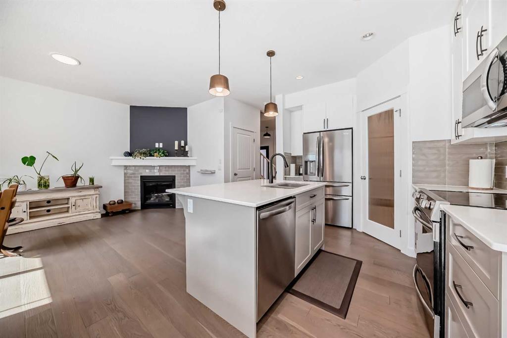 This Beautiful home is located on a child friendly street. This home features a bright open layout and you are greeted into home by Vinyl plank flooring throuhgout main floor. As you enter home you will notice the beautiful kitchen with quartz counters, white cabinets, island kitchen, pantry and Stainless Steel appliances. There is a spacious kitchen nook for your dining area with big picture windows overlooking backyard. The kitchen opens to the family room and the feature gas fireplace. There is a door that leads to the private south deck and backyard for you to enjoy your summer evenings. There is 3 large bedrooms upstairs and the master bedroom comes with a walkin closet and ensuite. There is also a Bonus room and laundry room upstairs. This home is close to Costco, area shopping malls, schools, transit and Stoney Trail. What a great place to call home. 357 Nolanhurst Cr NW