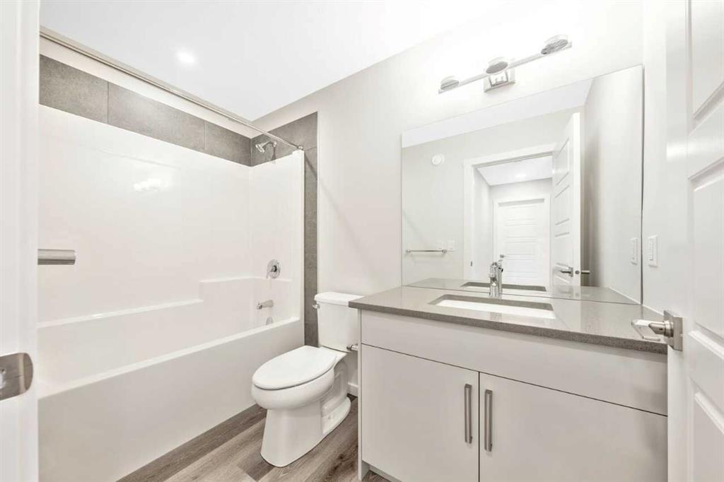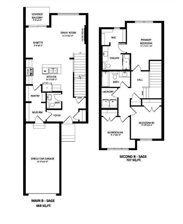 The Eden is designed for contemporary living. Entering this home, you are welcomed by a half bath, closet and convenient walk-through mudroom and pantry leading to the central kitchen. The main floor opens up to reveal a spacious great room and dining area, leading to the covered balcony – a perfect retreat to enjoy year round. The second level boasts a primary bedroom with ample space, including an ensuite offering dual sinks and adjacent walk-in closet. Upstairs also offers two secondary rooms, a bathroom, and laundry area. To round out this home, the attached single-car garage provides secure parking and additional storage space. Photos are representative.