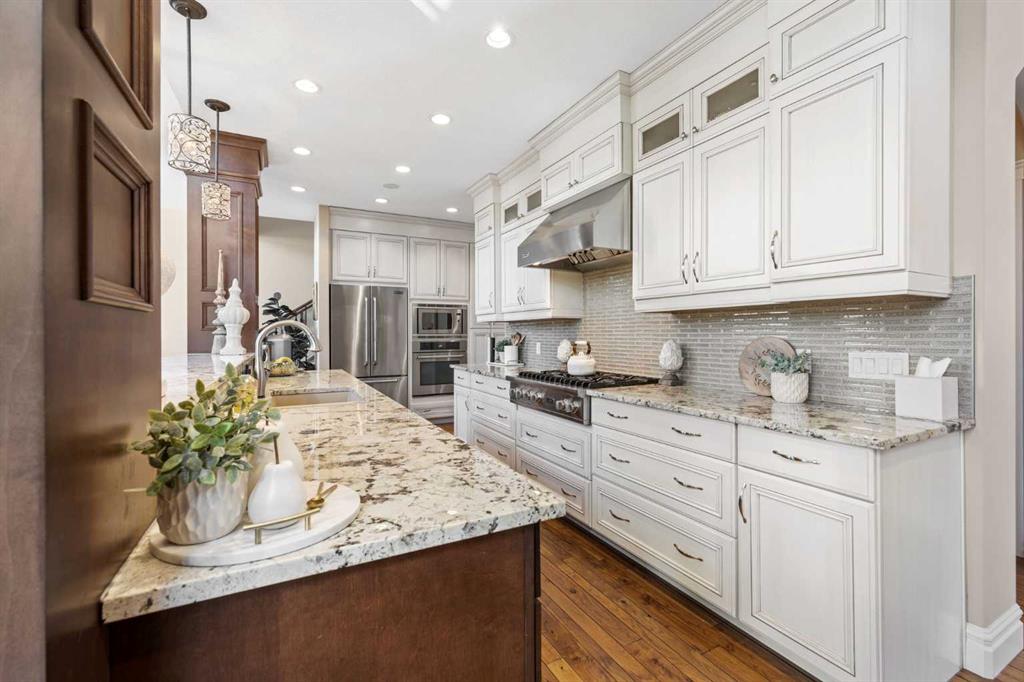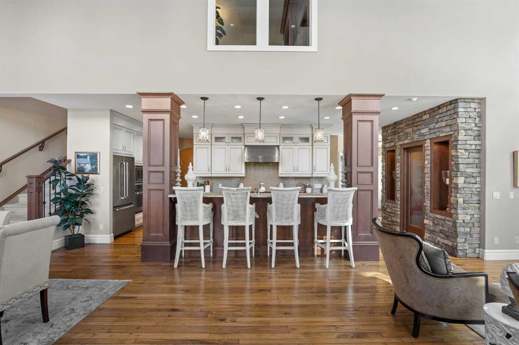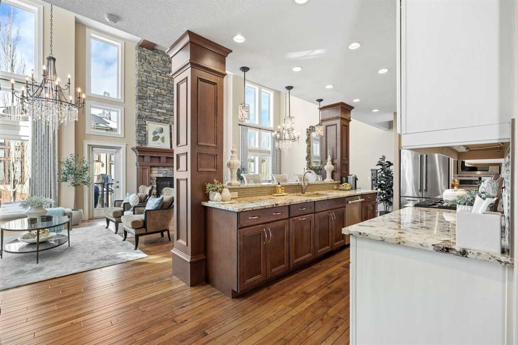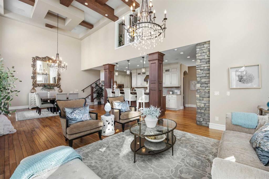 SATURDAY MARCH 14, 12-2PM. Elegance meets family living at 36 Ascot Rise SW in Aspen Woods. Spanning over 2900 sq ft above grade, this custom designed home is truly unparalleled. The main floor unfolds into a stunning vaulted living and dining area, where natural light pours in, creating a space that feels warm, welcoming, and truly special. The beamed and coffered ceiling detail is awe-inspiring, creating an uplifting and enchanted ambiance. Custom window coverings enhance the space and add elegance. At the heart of the home, the chef-inspired kitchen impresses with a six-burner Viking gas cooktop, Jenn-Air built-in appliances, and a walk-in pantry. Completing the main level is a beautifully appointed home office, a stylish powder room, and a spacious mudroom featuring both built-ins and a generous, separate closet for added functionality. Upstairs is an inviting bonus room with built-in cabinetry, two generous kids’ bedrooms with a nearby spacious bathroom and an expansive laundry room. The primary retreat is in its own wing, featuring vaulted ceilings, grand windows, and an ensuite bathroom with a corner jetted tub and a glass shower. This is a well-designed upper layout offering roomy bedrooms and a comfortable separation between the children’s rooms and primary suite. Heading down to the walkout lower level, is a bright space complete with all the features you could ask for. An open rec area with a wet bar sets the stage for fun, while a custom theatre room with star lighting and included components creates the ultimate movie-night. A fourth bedroom and full bathroom are tucked away on this level for privacy. Outdoor season will be fully enjoyed with custom landscaping enhanced with irrigation, a lower patio area perfect for a fire table, upper and lower gas connections, spacious side yard with grass and an upper balcony. This outdoor space steals the spotlight. Notable home features include full air conditioning, speakers throughout with a Sonos system included, heated garage and remote-controlled upper window coverings in the vaulted living room. An exceptional location on a peaceful street, this home offers a playground just steps away and the ravine and walking paths down the street. Providing incredible and nearby, top-tier school options – walking distance to Webber Academy, Calgary Academy, and Guardian Angel Elementary and a quick drive to schools nearby, Rundle College, Dr. Roberta Bondar, Ernest Manning, Ambrose University. The shops and services of Aspen Landing are just minutes away, while convenient access out to the mountains, Stoney Trail, Bow Trail and the C-Train make commuting effortless. This home is a true stand out. Schedule your private tour to experience it in person.