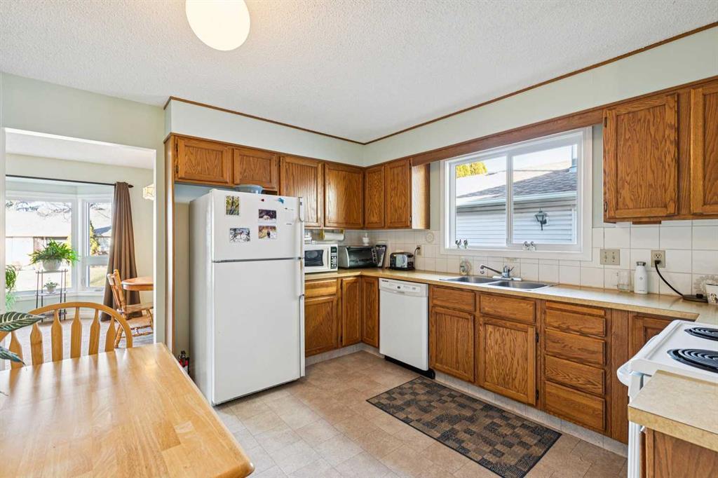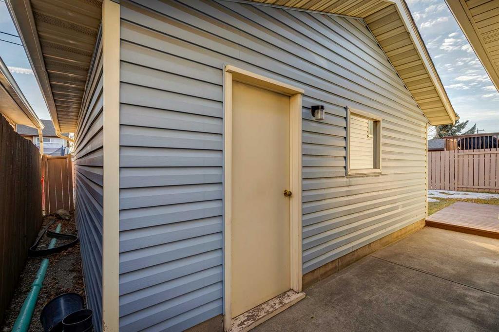 Beautifully maintained 3 + 2 bedroom, 1.5 bath, 1284 sqft bungalow with finished basement & a separate side entrance with an oversized double car garage situated on a great crescent in the heart of Temple close to schools & transit. The main floor has been upgraded over the years with newer paint, flooring & windows. Spacious “L” shaped living room/dining room with a cozy gas fireplace & a sunny bay window, easily accommodating a good-sized family gathering. The kitchen has plenty of storage including a pantry & a convenient seating area. There are 3 spacious bedrooms on the main floor including a king-sized master with double closets + a 2-piece ensuite. The 4-piece main bath has some updating. There is a separate side entrance to the lower level which has been professionally developed & includes 2 bedrooms, a roughed-in bathroom, & a large family room with a built-in wet bar. The backyard has 19’5” x 22’3” detached garage, is fully fenced with a paved back lane, convenient raised garden beds +Saskatoon bushes. Lovingly kept family home available for quick possession. Easy access to new ring road system, shopping+ restaurants.