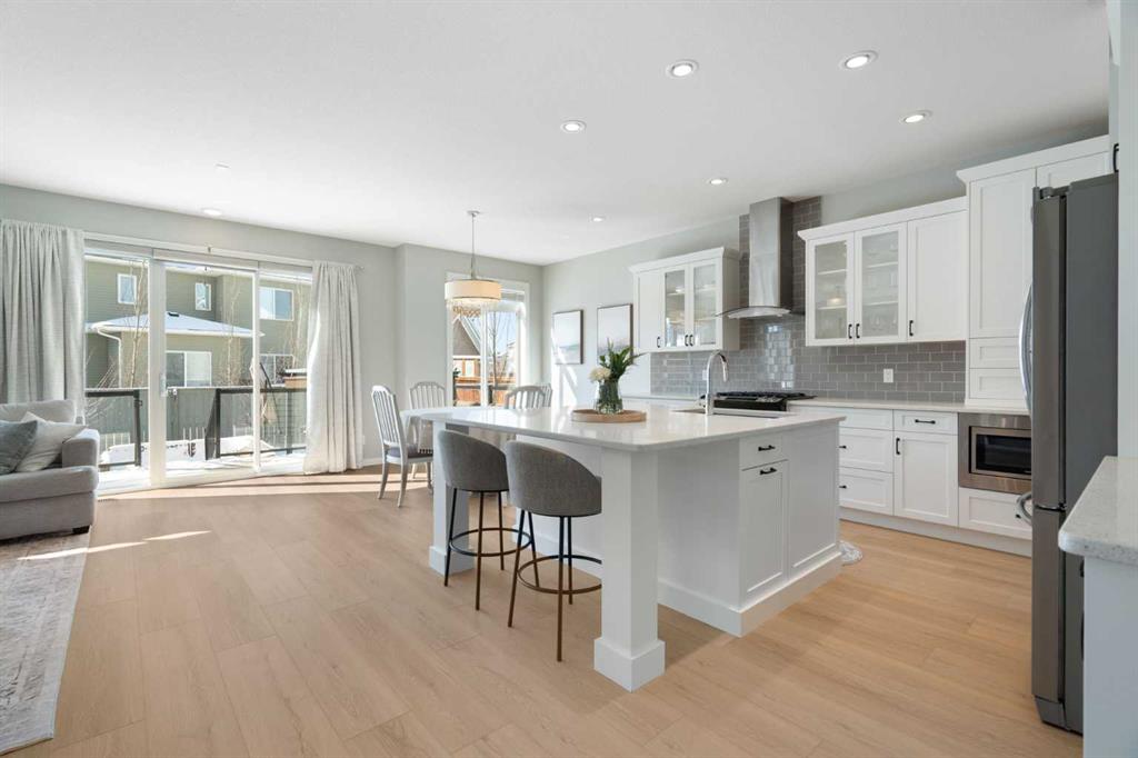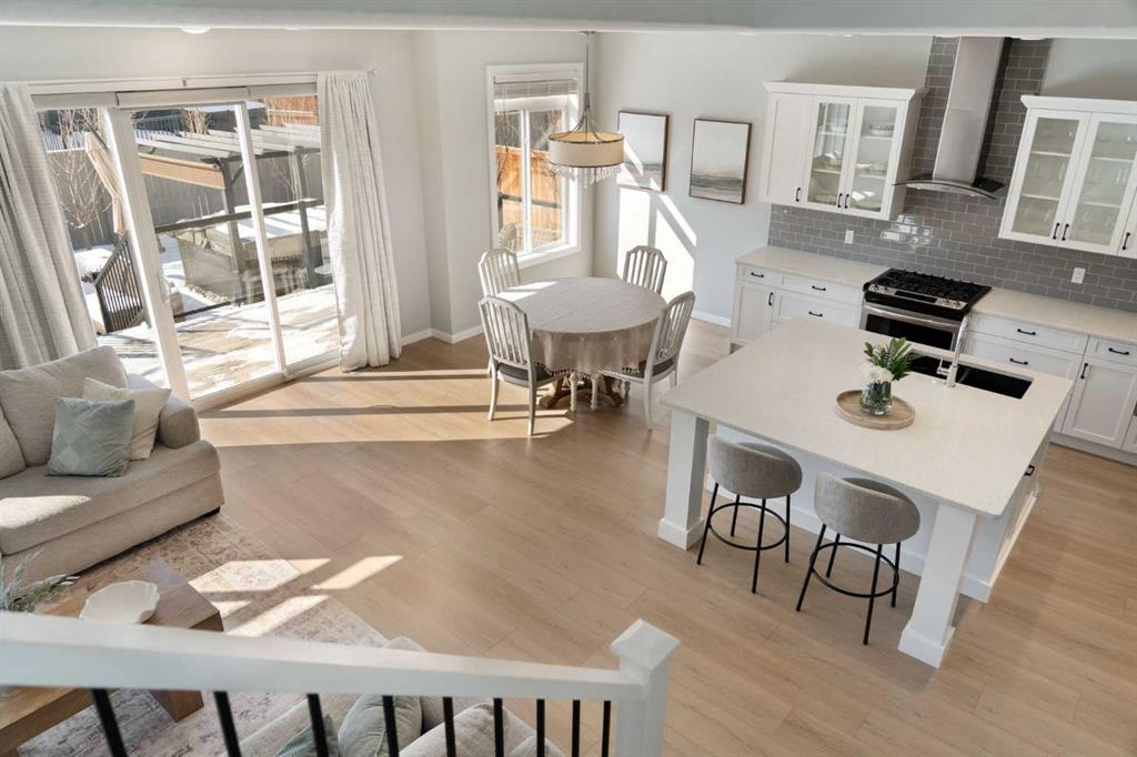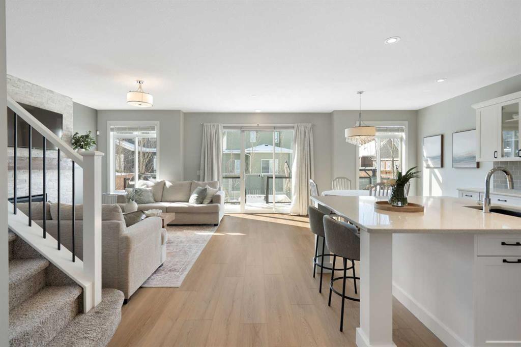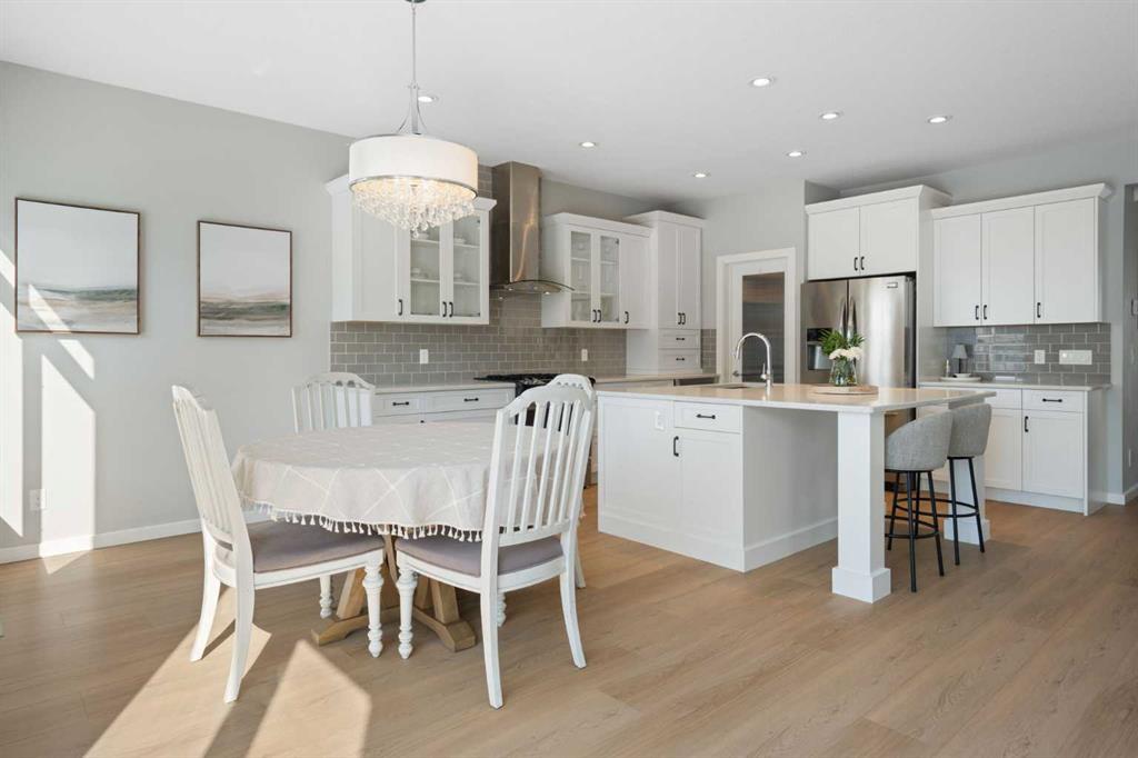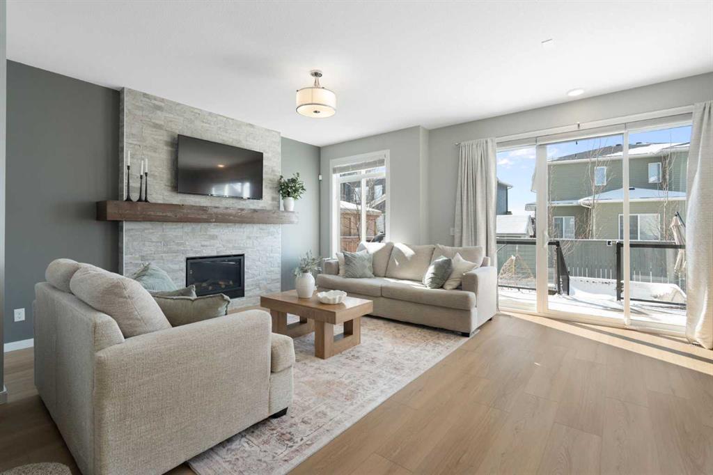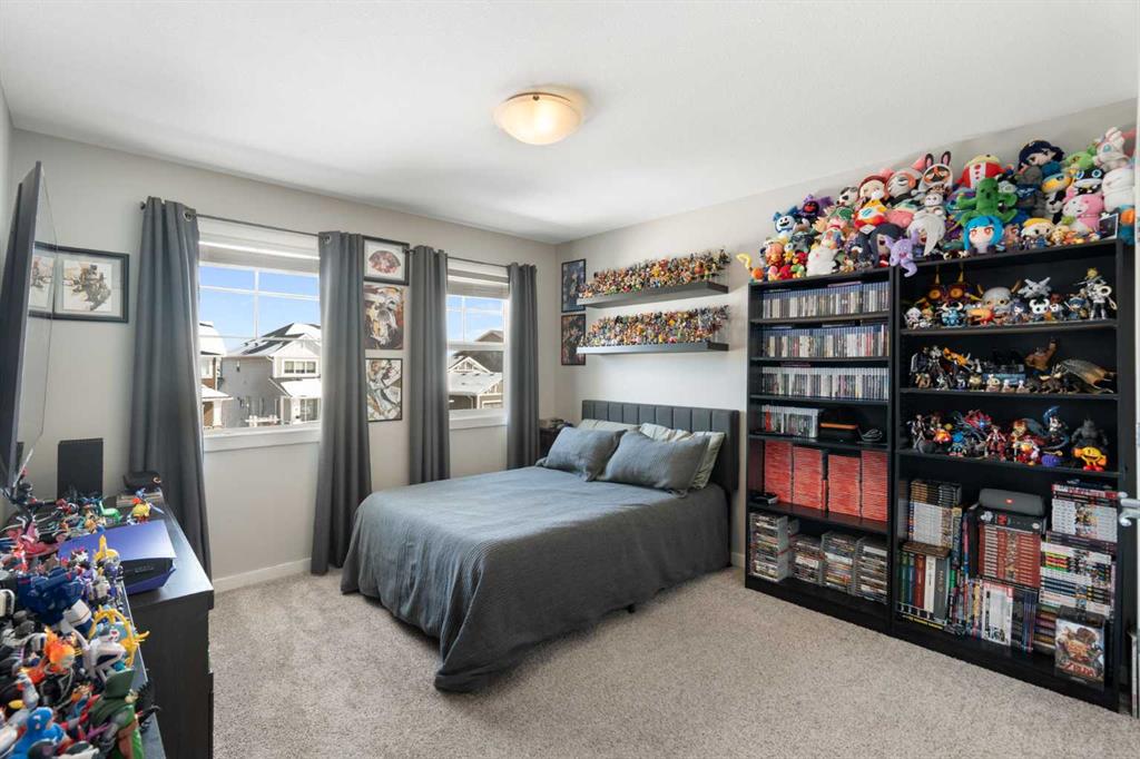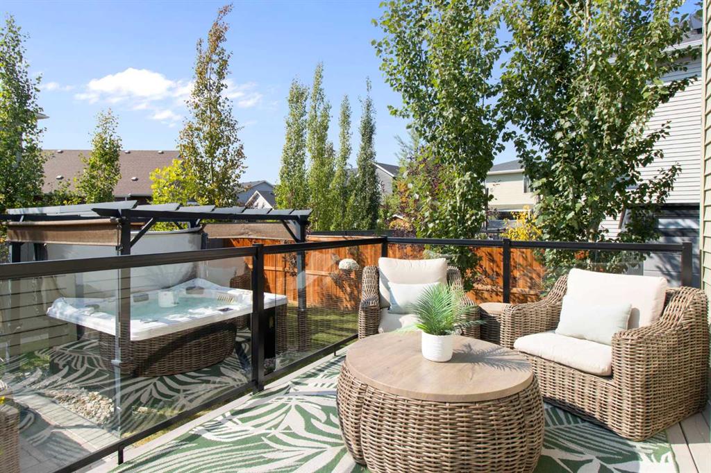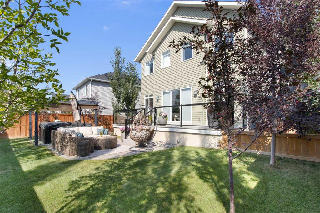 Hello, Gorgeous! Welcome to this beautifully maintained two-storey family home offering over 2,616 sq ft above grade in the desirable community of Bayside. Thoughtfully designed for comfortable everyday living, this home features 4 bedrooms, 2.5 bathrooms, and a spacious bonus room upstairs, creating the ideal layout for growing families. The bright main floor offers a welcoming foyer, a dedicated office with upgraded glass inserts, and an open-concept kitchen, dining, and living area anchored by a cozy fireplace. The kitchen provides ample prep space, a pantry, and a seamless flow into the dining area, perfect for both daily meals and entertaining. Upstairs, the generous primary suite includes a walk-in closet, vaulted ceiling and a relaxing 5-piece ensuite, while three additional bedrooms, a full bathroom, and convenient upper-floor laundry complete the level. The basement is partially developed with a large gym area and plenty of storage, offering great flexibility for future development. Outside, the fully landscaped backyard with many trees creates a private setting to relax or entertain, complete with a hot tub (2018) and pergola. Additional highlights include new flooring, central air conditioning, and Gemstone exterior lighting with remaining warranty. Located on a quiet street in one of Airdrie’s most loved communities, Bayside offers scenic canals, pathways, parks, and easy access to schools, shopping, and amenities. This is a wonderful opportunity to own a spacious, move-up family home in an established neighbourhood.