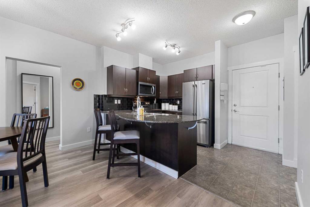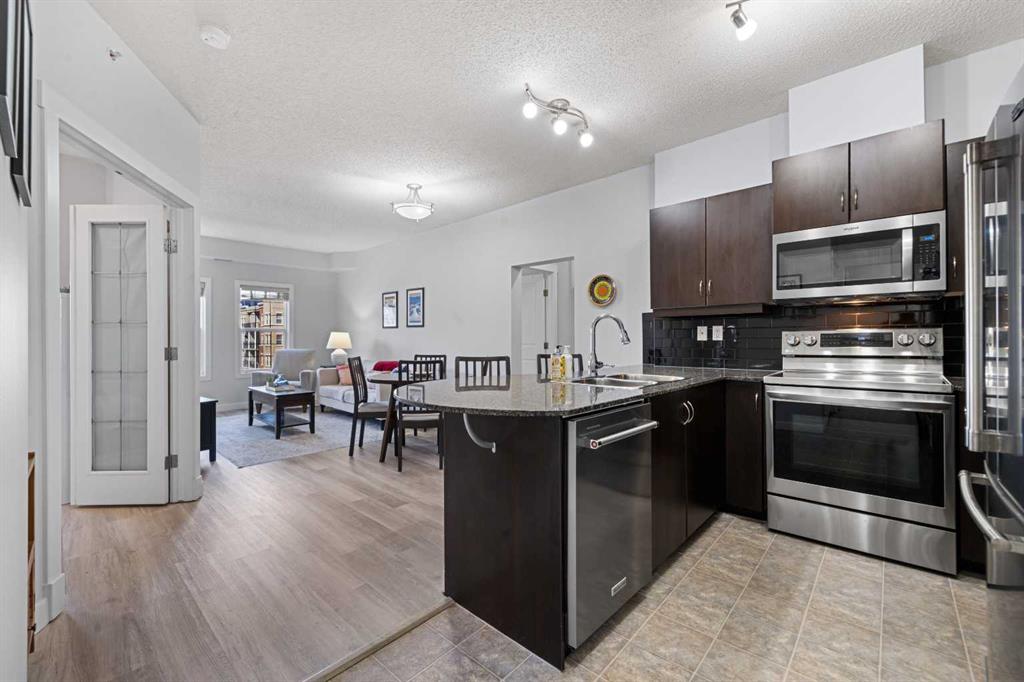 This beautifully maintained 2-bedroom + den unit features an incredibly desirable open-concept layout, ideal for both everyday living and entertaining. The gorgeous kitchen is the heart of the home, complete with granite countertops, an extended breakfast bar, and modern stainless steel appliances. Recent luxury vinyl plank flooring runs throughout, creating a modern and cohesive feel.