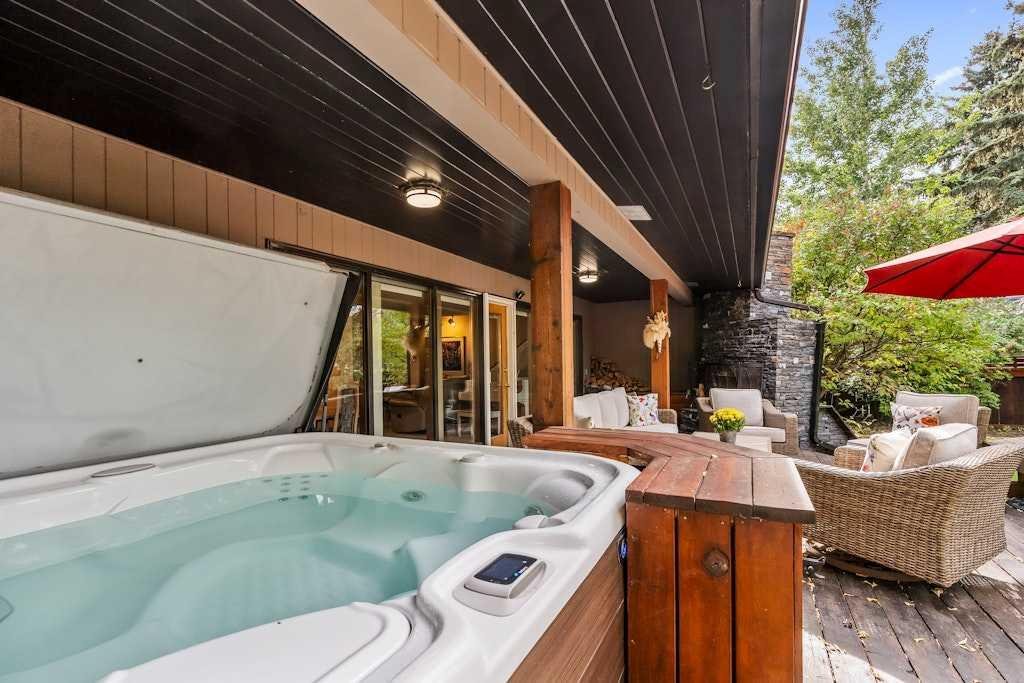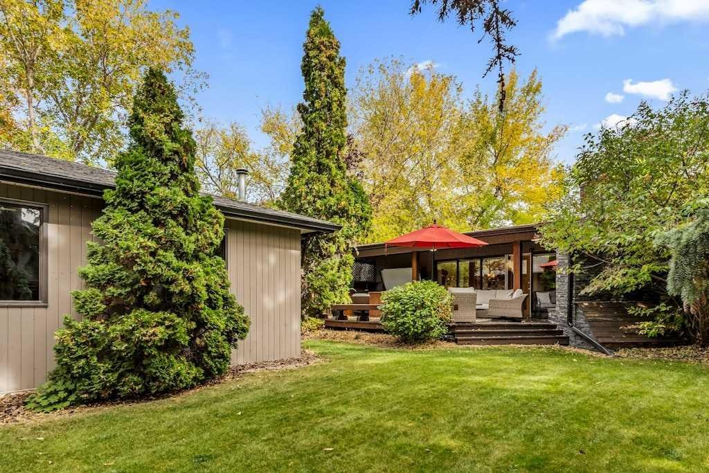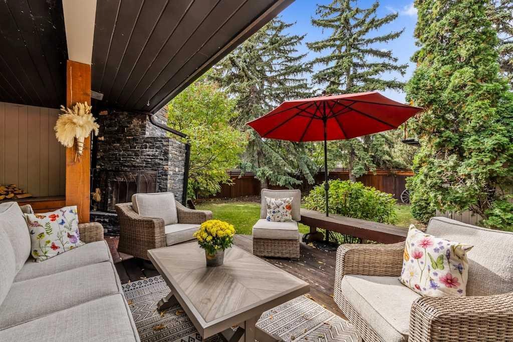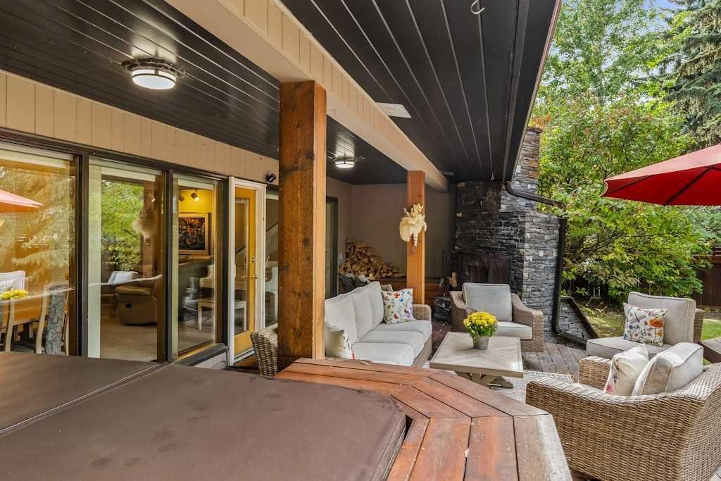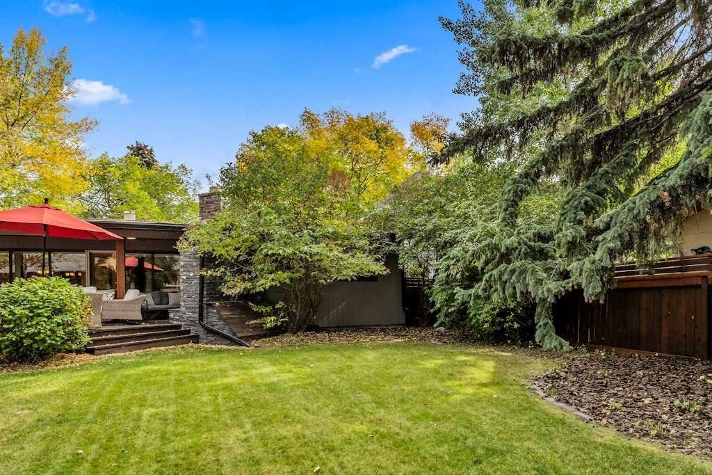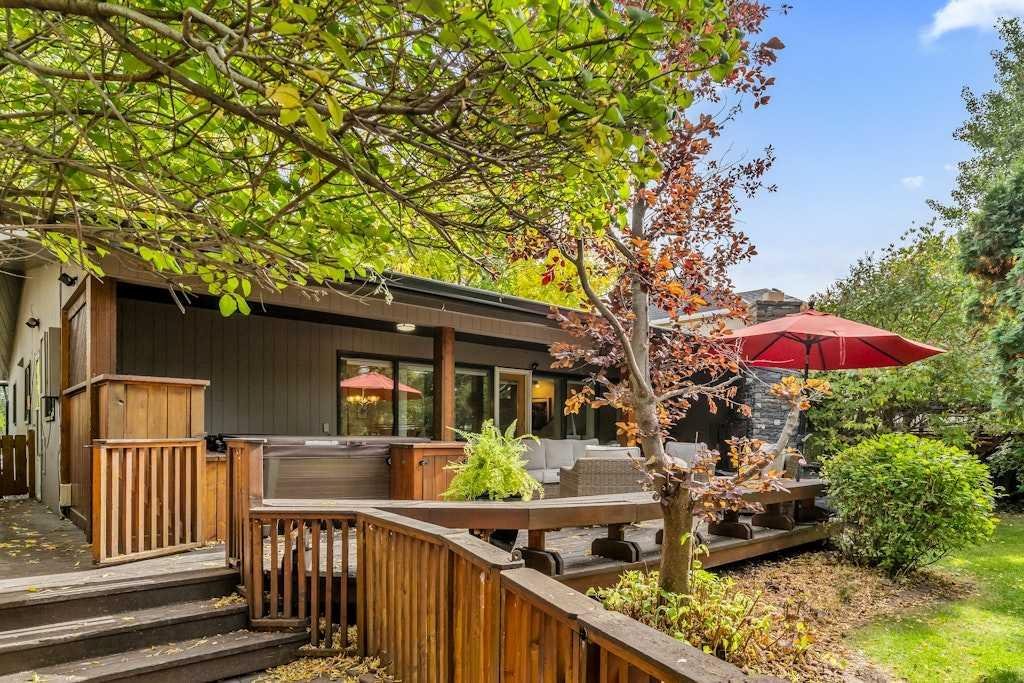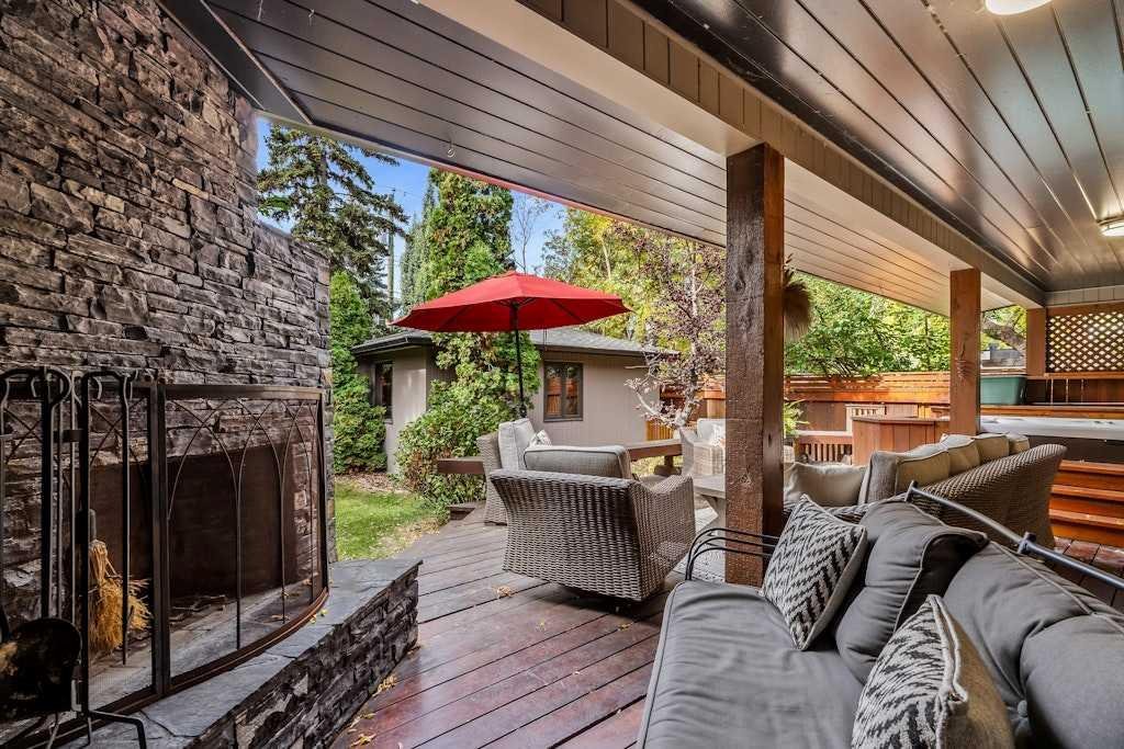 Welcome to this spacious mid-century bungalow offering over 2,100 sq. ft. single level living space with an additional 1928 of space in the lower level, ideally situated on a 62’ x 125’ west-facing backyard in one of Calgary’s most sought-after inner-city communities Elbow Park. This 1950s classic features Rundle rock exterior, a single attached garage, and a detached double garage with convenient alley access. Because of the great square footage, all the rooms are generous in size. Inside the home you’ll find three bedrooms on the main level and two additional bedrooms down, providing plenty of flexibility for family or guests. Both main-level bathrooms have been beautifully renovated, while the large kitchen offers exceptional cupboard space and a convenient side-entry laundry and storage area. The formal living and dining rooms showcase floor-to-ceiling windows overlooking the stunning west backyard, complete with a spacious deck, outdoor fireplace, and hot tub—perfect for entertaining or relaxing. In addition to these rooms there is also a main floor family room with a fireplace and loads of built-ins. The lower level is fully developed with a massive family and recreation area, two additional bedrooms and a 3 piece bathroom providing ample room for future customization. Outdoors, the mature landscaping, perennial gardens, and Gemstone lighting create an inviting private retreat. Just a 20-minute walk to the Glencoe Club and a 10 minutes walk to the Marda Loop, and 5 minutes to River Park, this exceptional home offers a Walk Score of 83 and Bike Score of 84—the perfect blend of character, comfort, and location.