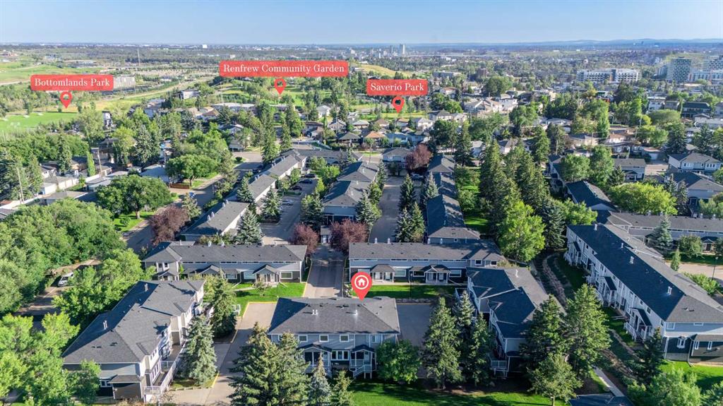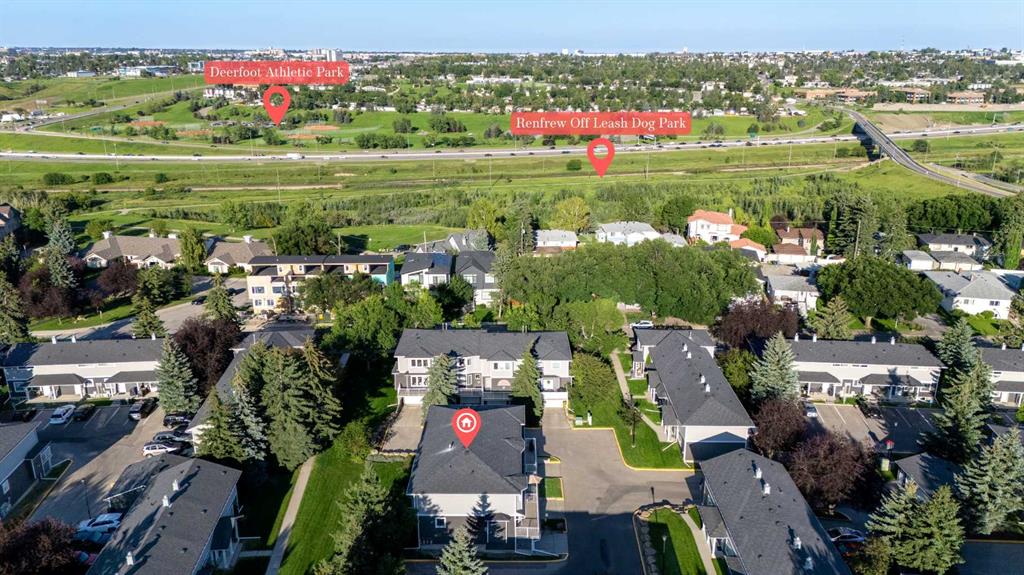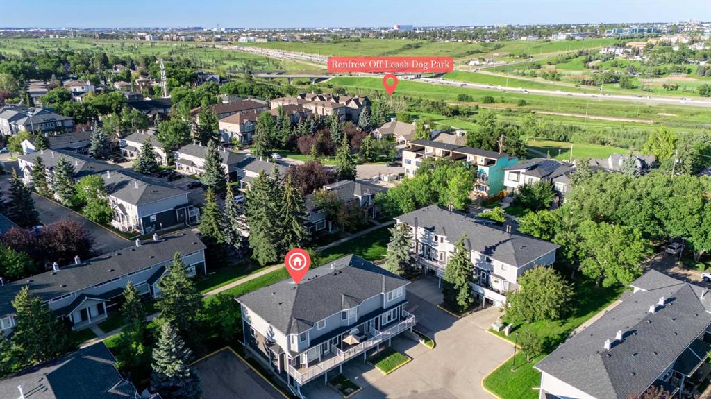 This is home: a south-facing end-unit with almost 1600 sq ft of living space in Regal Park. Backing onto quiet greenspace within the complex, this updated townhouse won’t last long. The gourmet kitchen with heated tile flooring includes a kitchen island that can comfortably sit three, windows that bring in a lot of natural light, and a convenient second entrance. The large open concept living room/dining room combo features hardwood and more sunlight from the south, plus a fireplace to cozy up to and access to your private, large balcony. Finishing the main floor is the laundry area and a two-piece powder room. The upper level hosts the two large bedrooms and an office/den space. The primary bedroom has a walk-in closet and four-piece ensuite – a warm space with a separate shower and soaker tub, and heated flooring. A double tandem garage with a separate utility room make use of every square foot. Well cared for by the owner of 13 years, this gem is in a quiet part of the complex, close to all amenities: dog parks, schools, pools, hockey rinks, tennis courts, transit, bike paths, and quick access to downtown Calgary. Regal Park is one of the most desirable inner city locations. Book your viewing today!