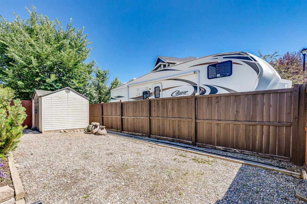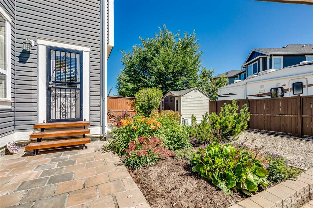 Step outside to enjoy the fully landscaped backyard oasis with a stone patio, built-in garden beds, perennial flower garden, a large storage shed, and a gated RV/trailer parking pad—a rare and valuable feature!