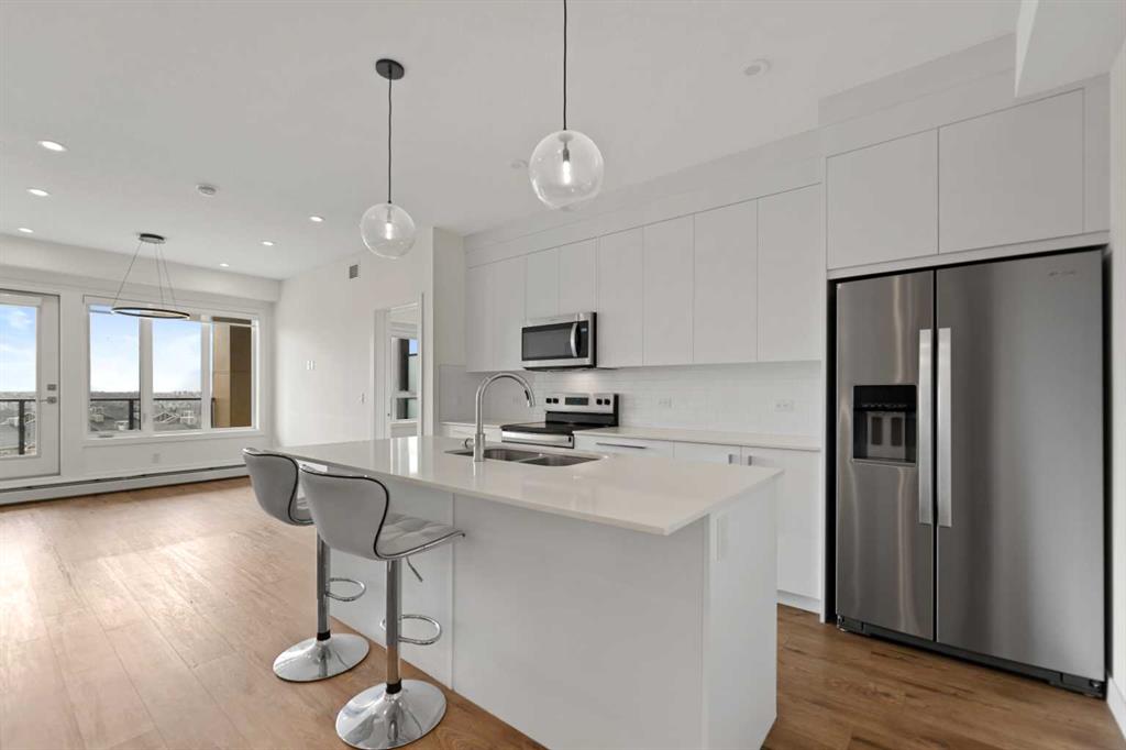 Welcome to Skyview North by TRUMAN! This exceptional Top Floor unit offers a bright and airy 2-Bedroom, 2-Bathroom home with Den in the established community of Skyview Ranch, complete with a titled Underground Parking Stall. Enjoy the refined finishes throughout, including Luxury Vinyl Plank flooring and a designer Lighting package. The custom chef-inspired Kitchen boasts Stainless Steel Appliances, Soft-Close Cabinetry, and elegant Quartz Countertops. The Primary Bedroom features a walk-through closet leading to a four-piece Bathroom, while the spacious Secondary Bedroom provides a versatile area perfect for a guest room with adjoining four-piece Bathroom. Additional conveniences include a Den, an in-suite Washer and Dryer, stylish Window Coverings, and a Patio off the Living Room perfect for relaxation. Skyview North is ideally located just steps away from amenities such as shopping at Sky Point Landing, Green Spaces, and extensive Playgrounds. Enjoy easy access to both Stoney and Deerfoot Trail, making commuting a breeze. Schedule your showing today and discover exceptional living at Skyview North! BEST PRICED CONDO FOR TOP FLOOR. Vacant and easy to be shown. Call now for viewing.
